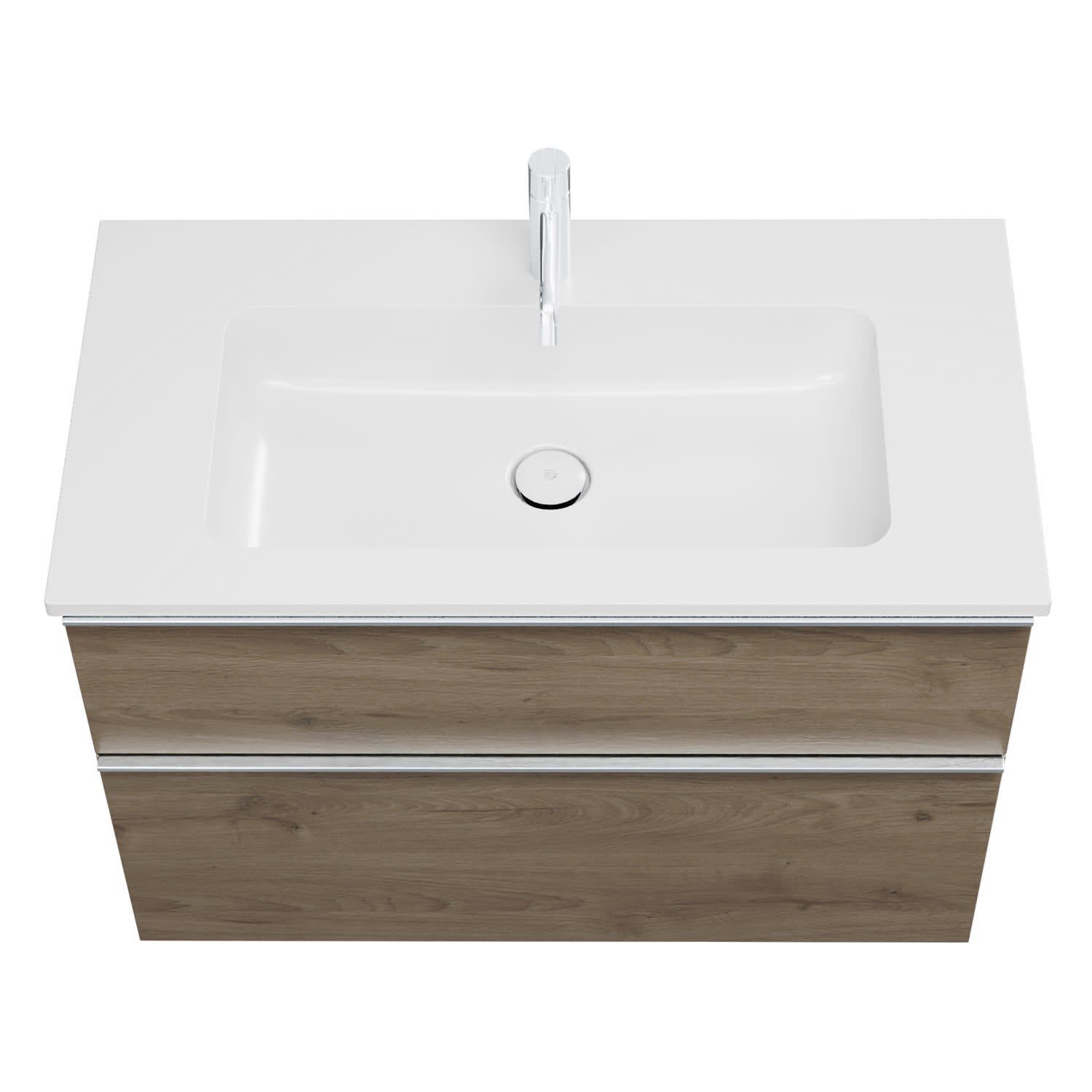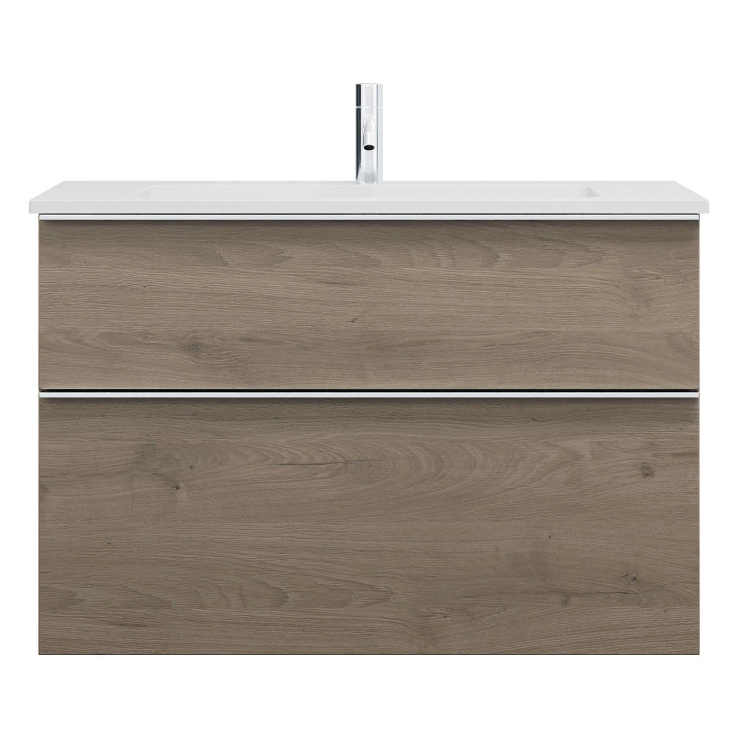 - 1 Schublade oben, 35 cm tief, mit Siphonausschnitt und Inneneinteilung