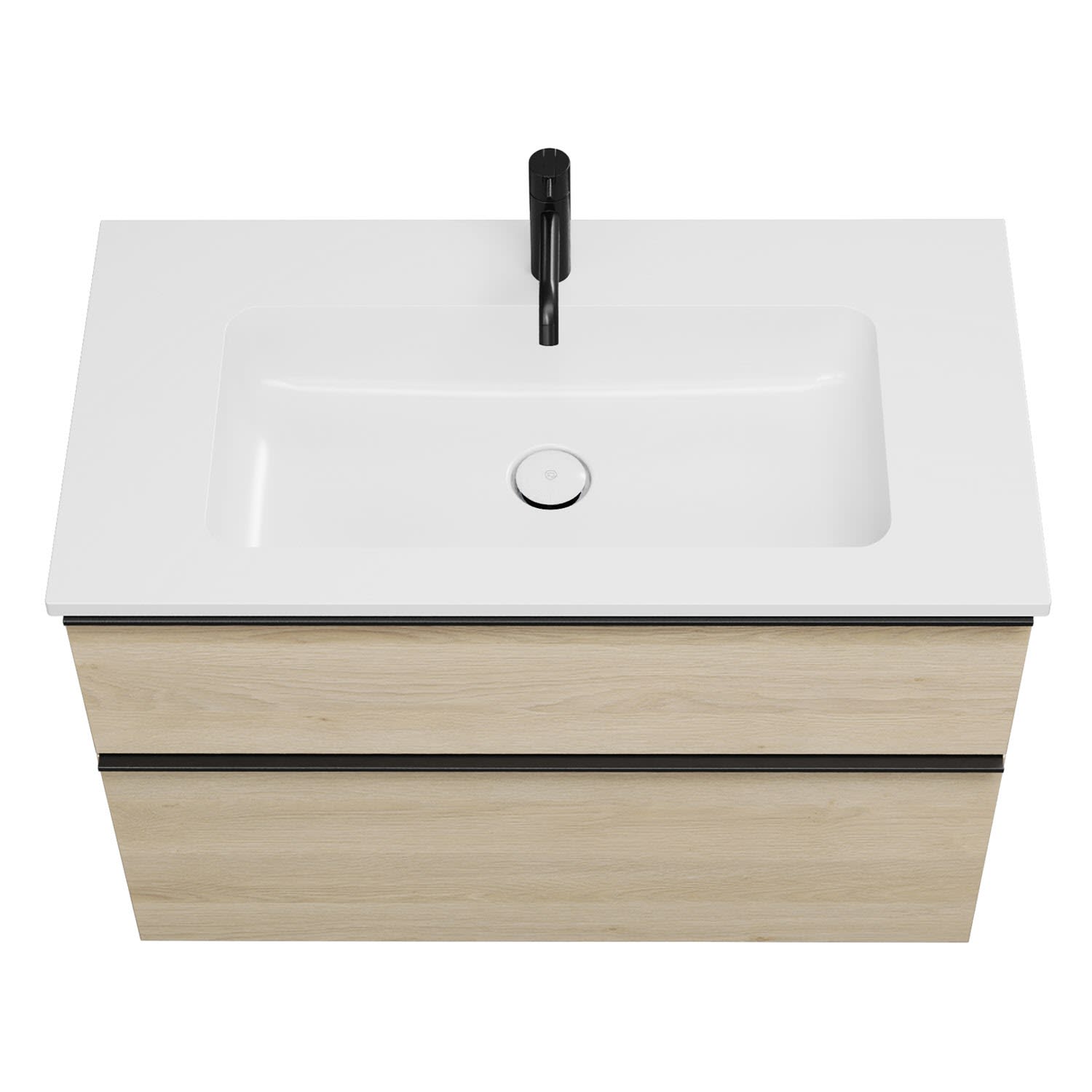 burgbad Eqio Waschtischkombination mit Mineralguss-Waschtisch, 92 cm, mit Griffleiste G0252