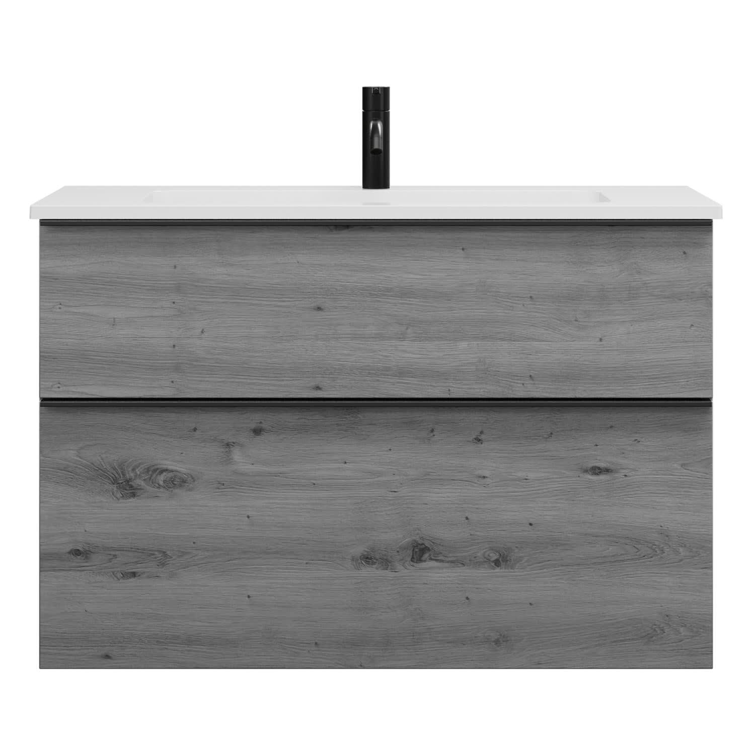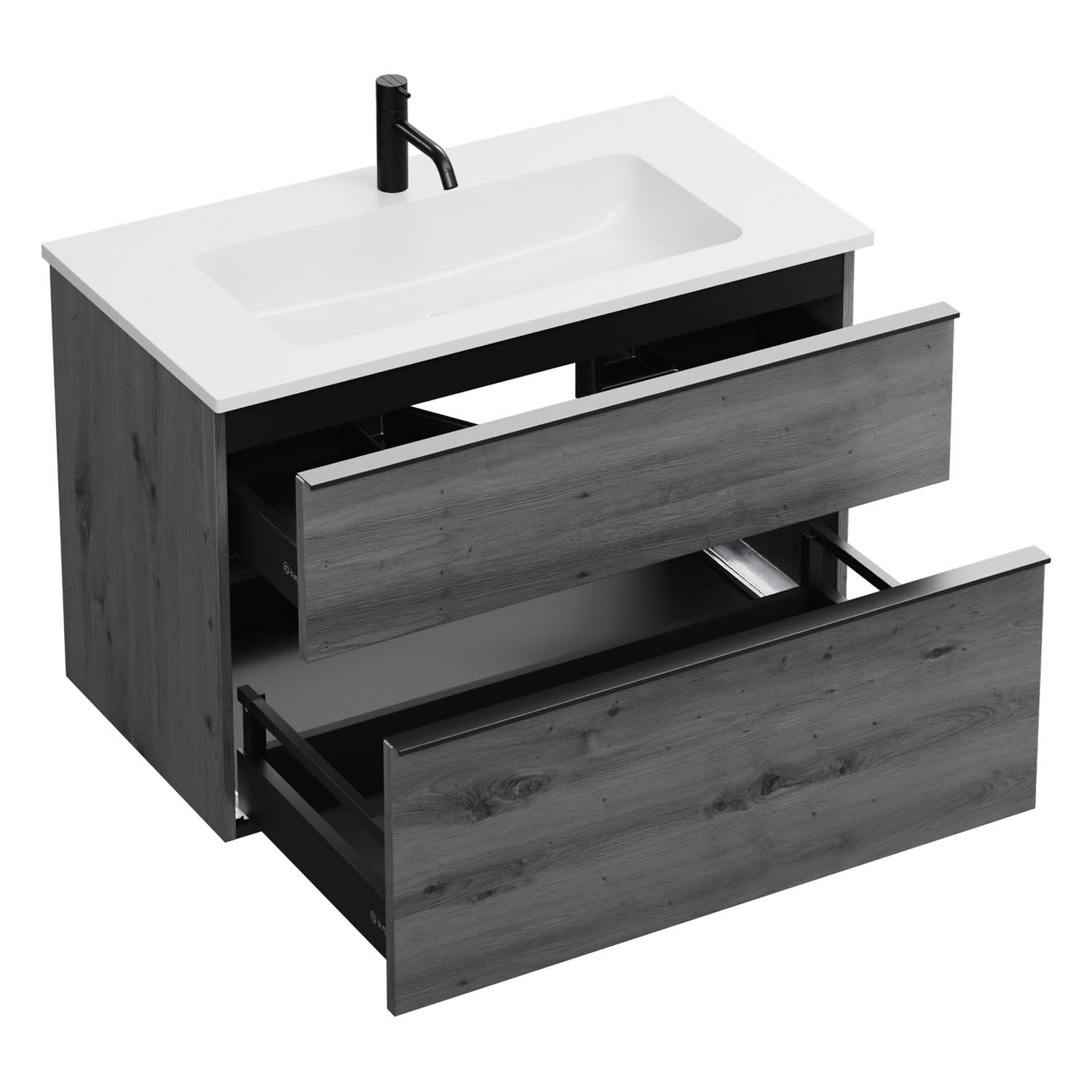 - 1 Schublade oben, 35 cm tief, mit Siphonausschnitt und Inneneinteilung