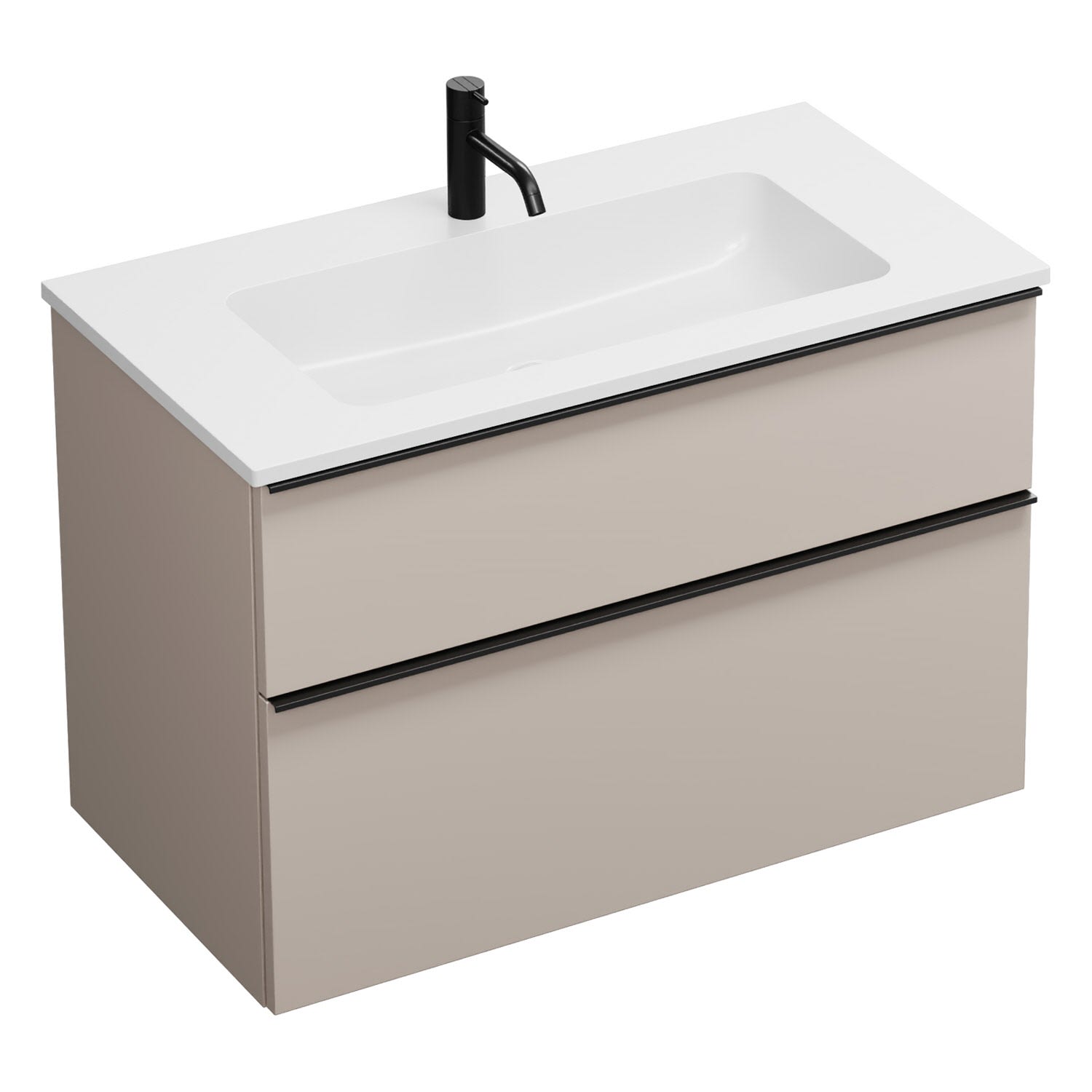 burgbad Eqio Waschtischkombination mit Mineralguss-Waschtisch, 92 cm, mit Griffleiste G0252
