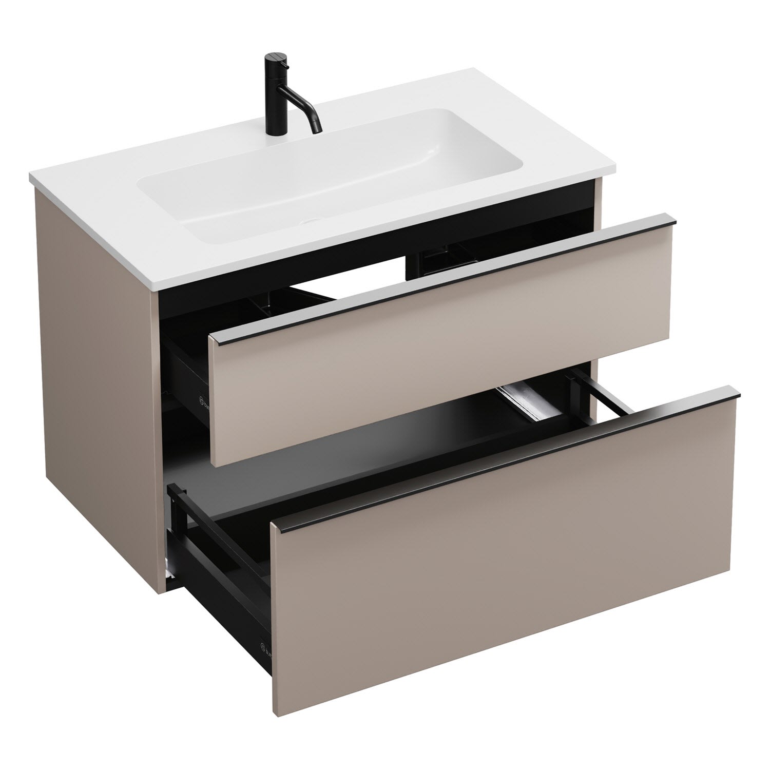 - 1 Schublade oben, 35 cm tief, mit Siphonausschnitt und Inneneinteilung