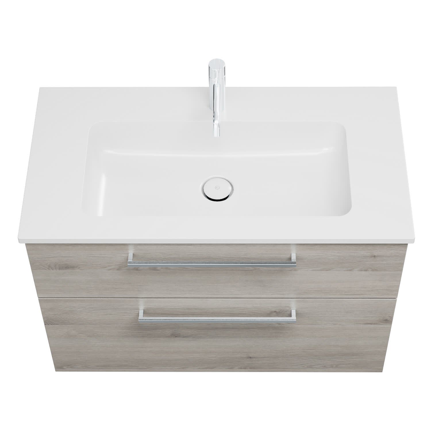burgbad Eqio Waschtischkombination mit Mineralguss-Waschtisch, 92 cm, mit Stangengriff P95