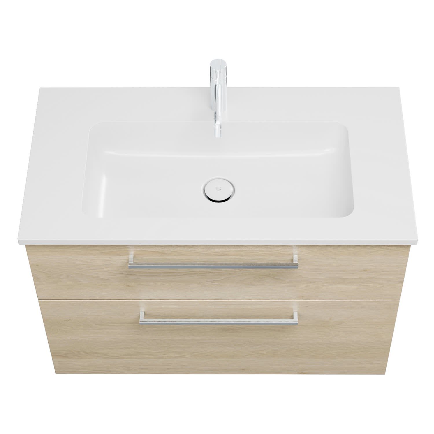 burgbad Eqio Waschtischkombination mit Mineralguss-Waschtisch, 92 cm, mit Stangengriff P95