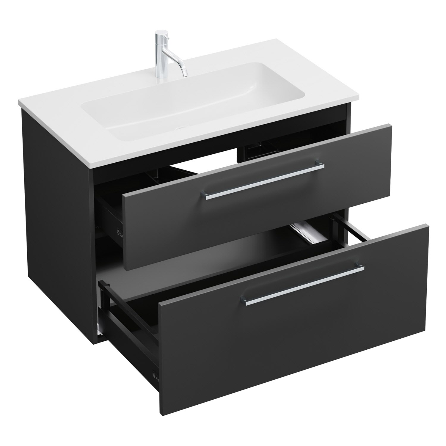burgbad Eqio Waschtischkombination mit Mineralguss-Waschtisch, 92 cm, mit Stangengriff P95