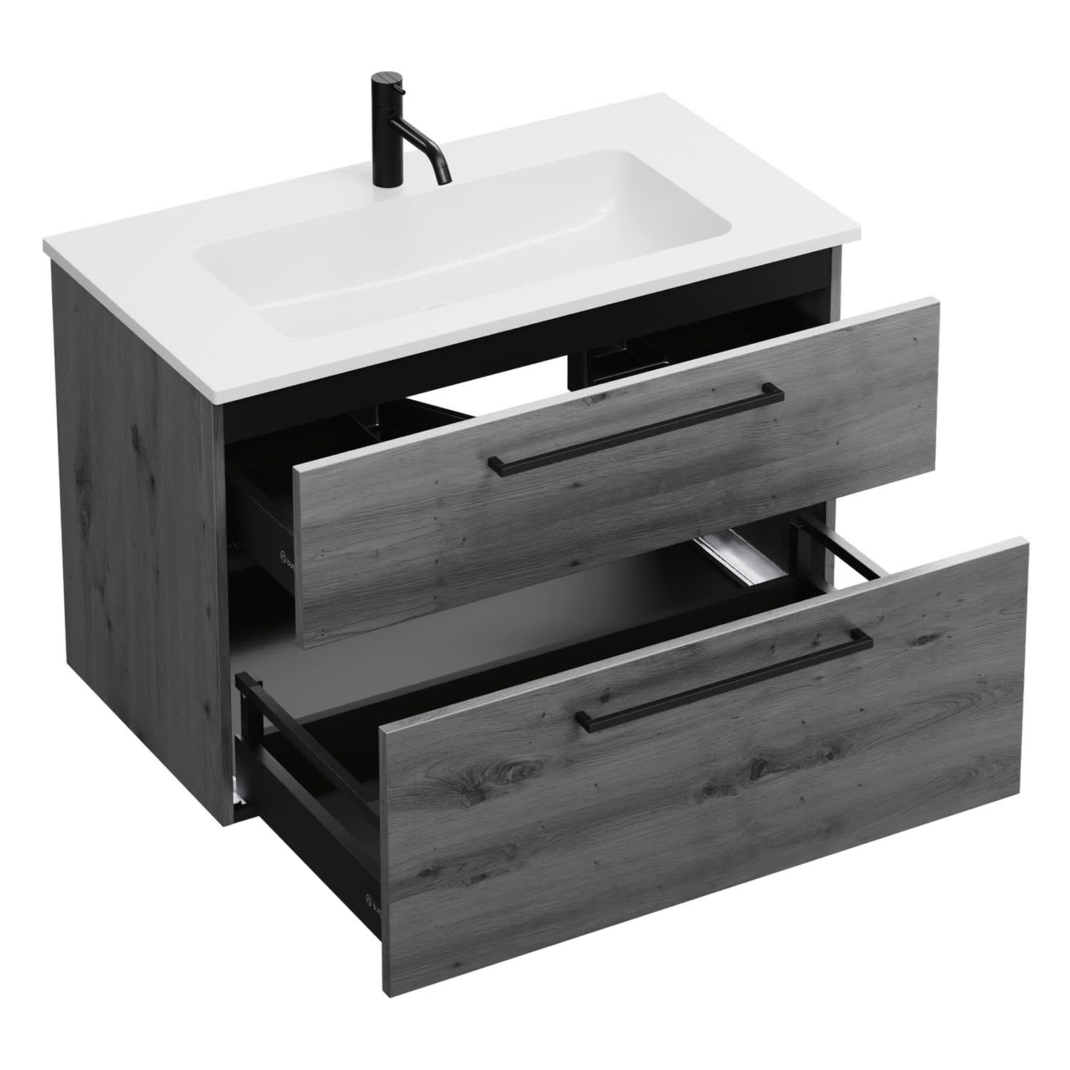 burgbad Eqio Waschtischkombination mit Mineralguss-Waschtisch, 92 cm, mit Stangengriff G0234
