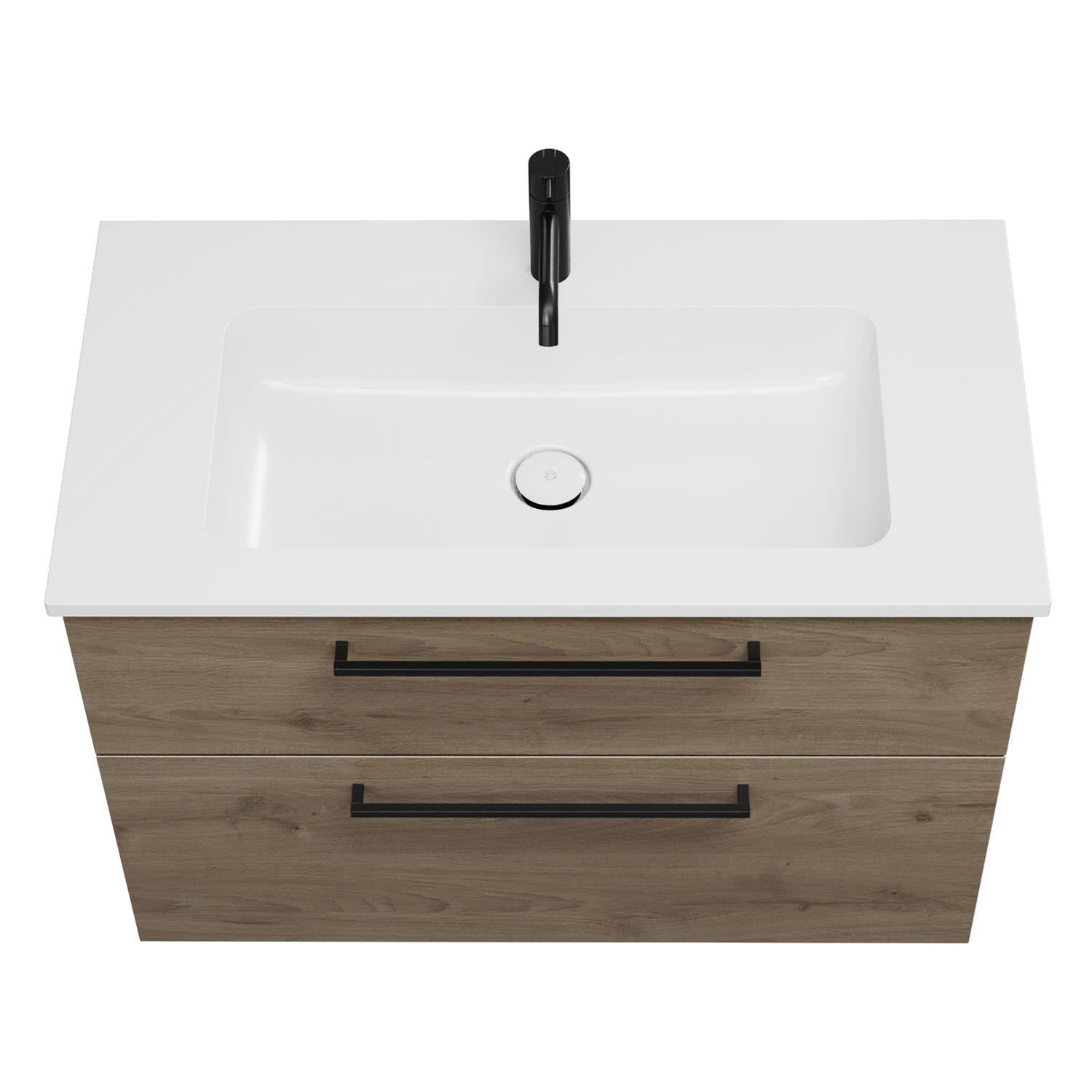 burgbad Eqio Waschtischkombination mit Mineralguss-Waschtisch, 92 cm, mit Stangengriff G0234