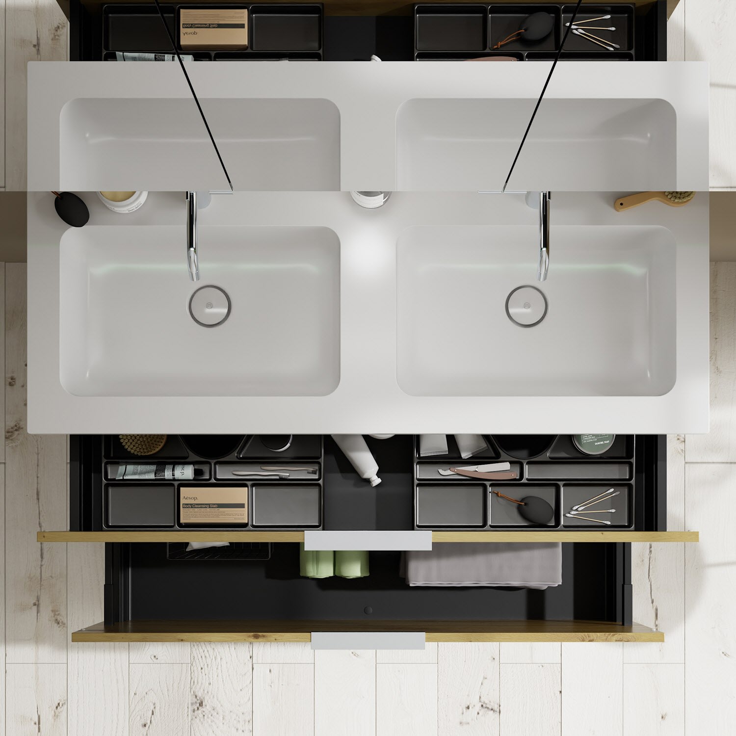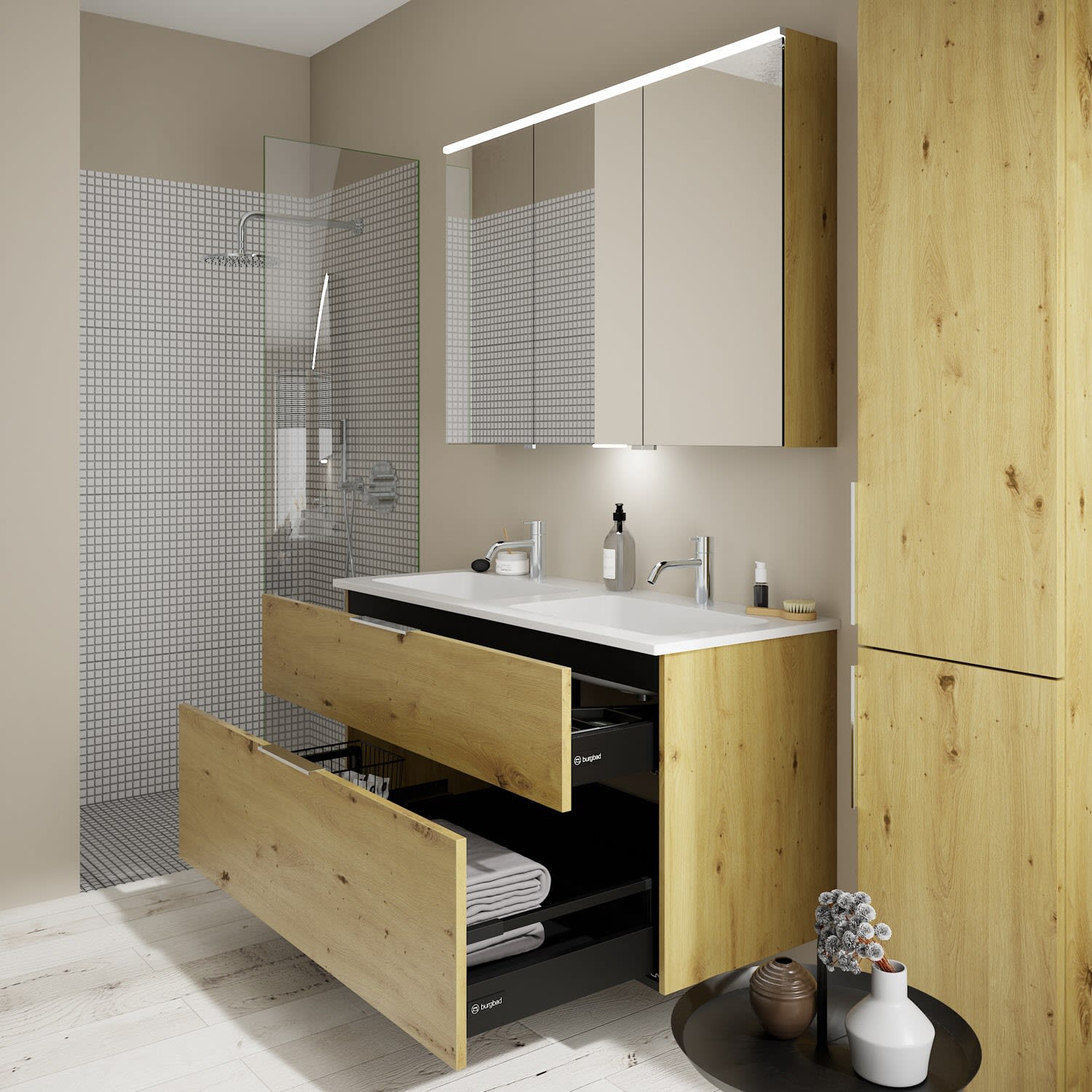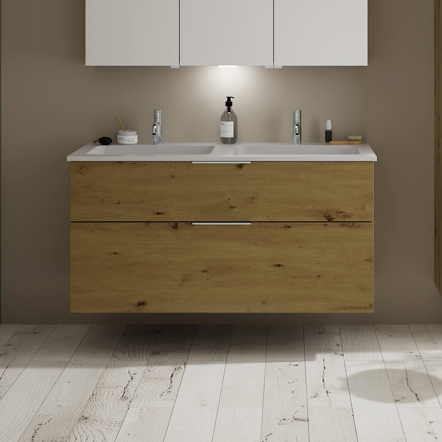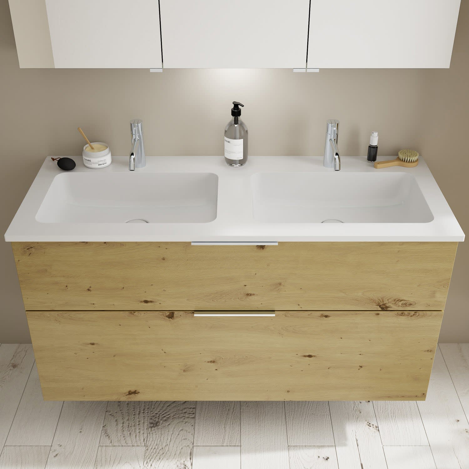 burgbad Eqio Waschtischkombination mit Mineralguss-Doppelwaschtisch, 122 cm, mit Griff G0146