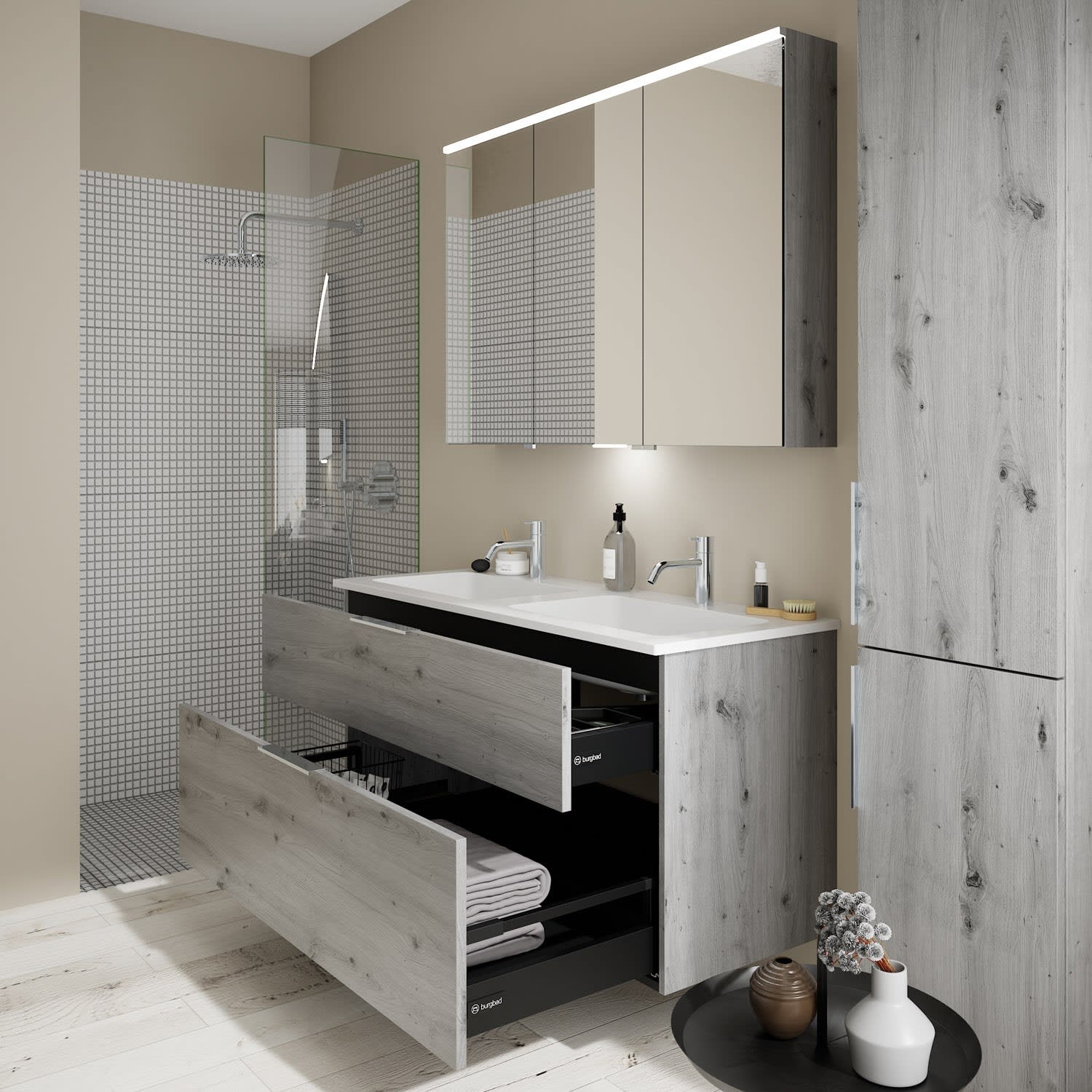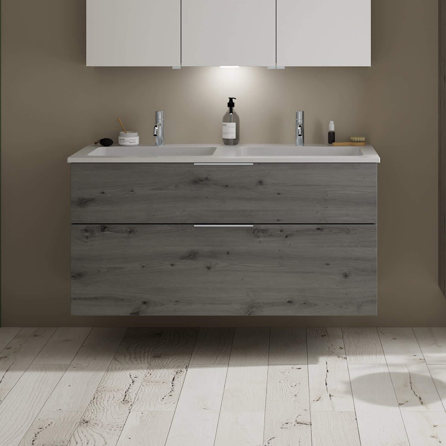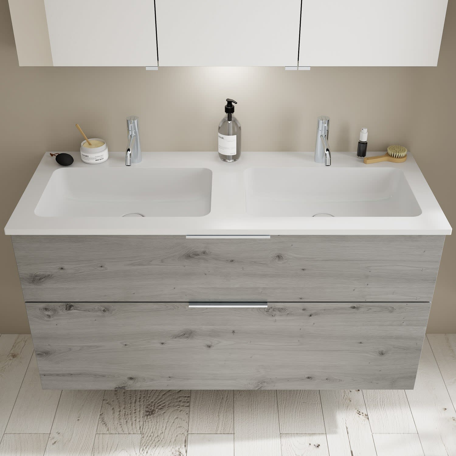 burgbad Eqio Waschtischkombination mit Mineralguss-Doppelwaschtisch, 122 cm, mit Griff G0146