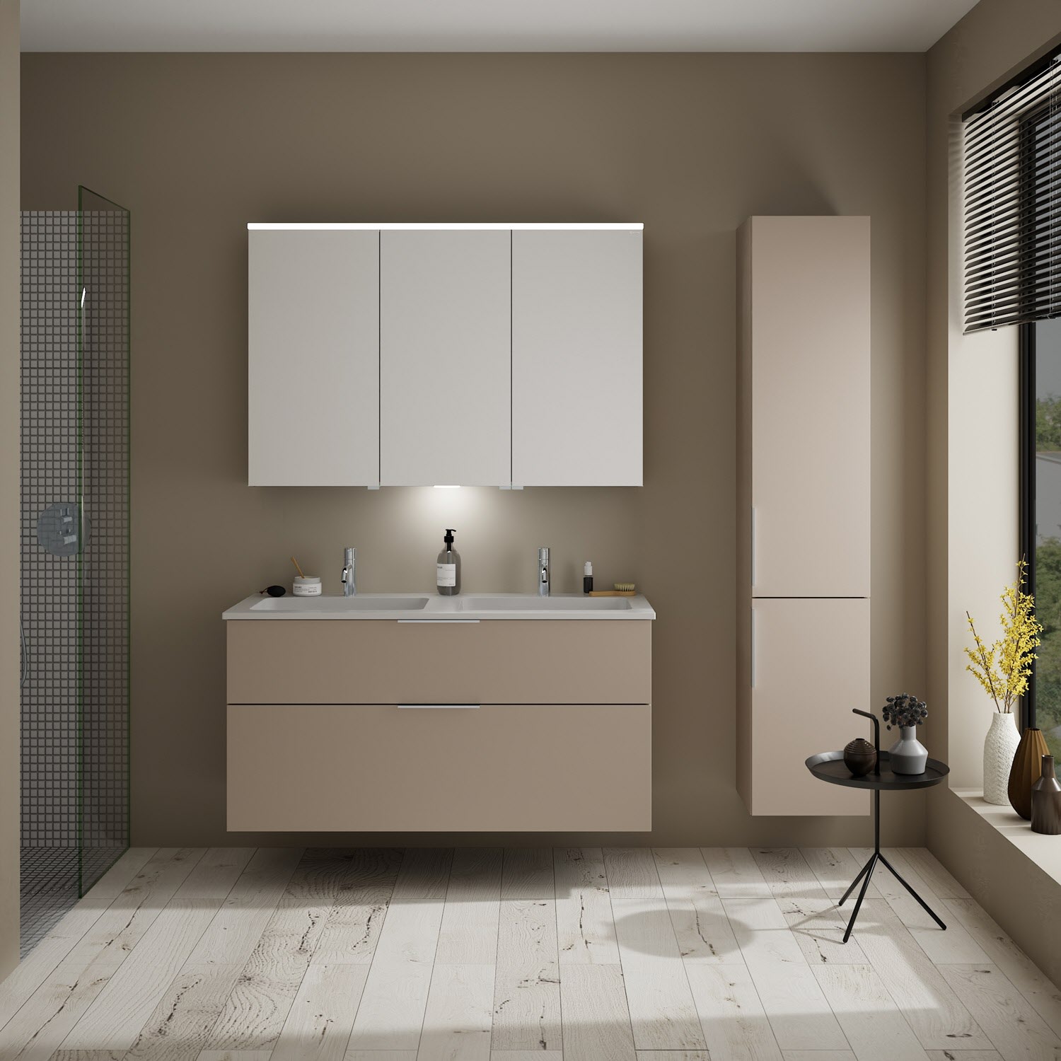 burgbad Eqio Waschtischkombination mit Mineralguss-Doppelwaschtisch, 122 cm, mit Griff G0146