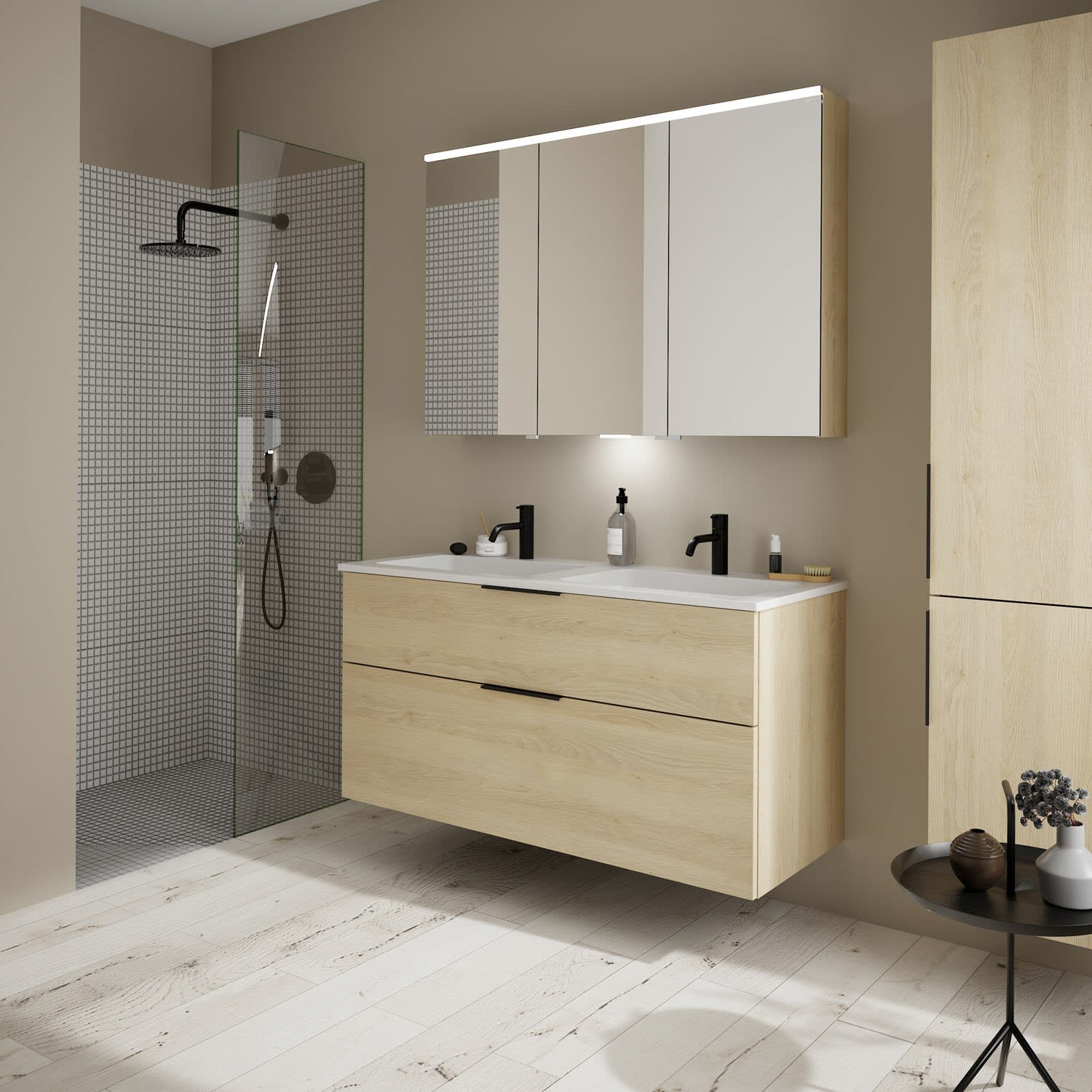 burgbad Eqio Waschtischkombination mit Mineralguss-Doppelwaschtisch, 122 cm, mit Griff G0200