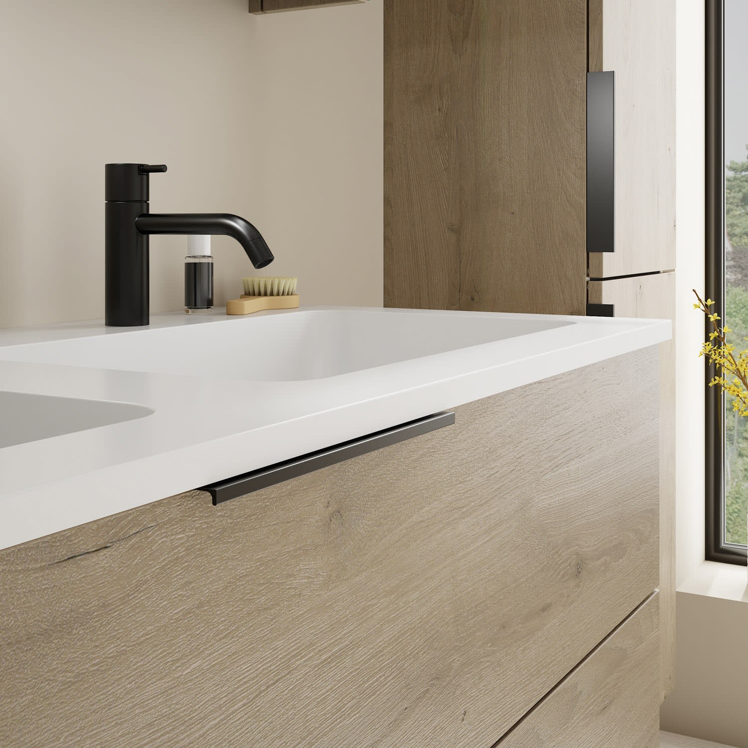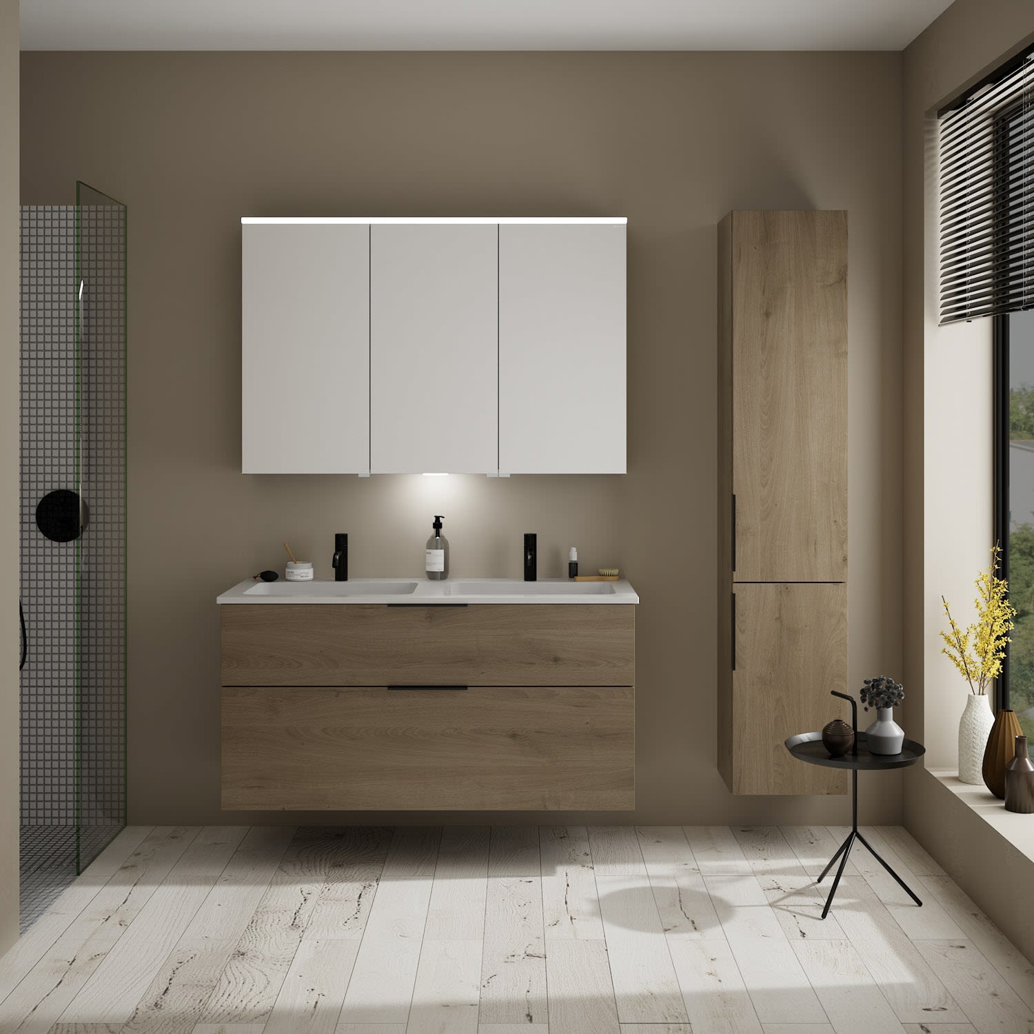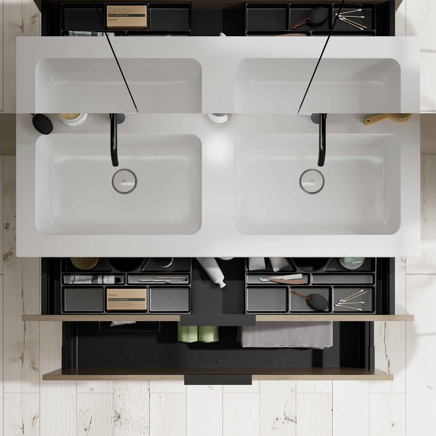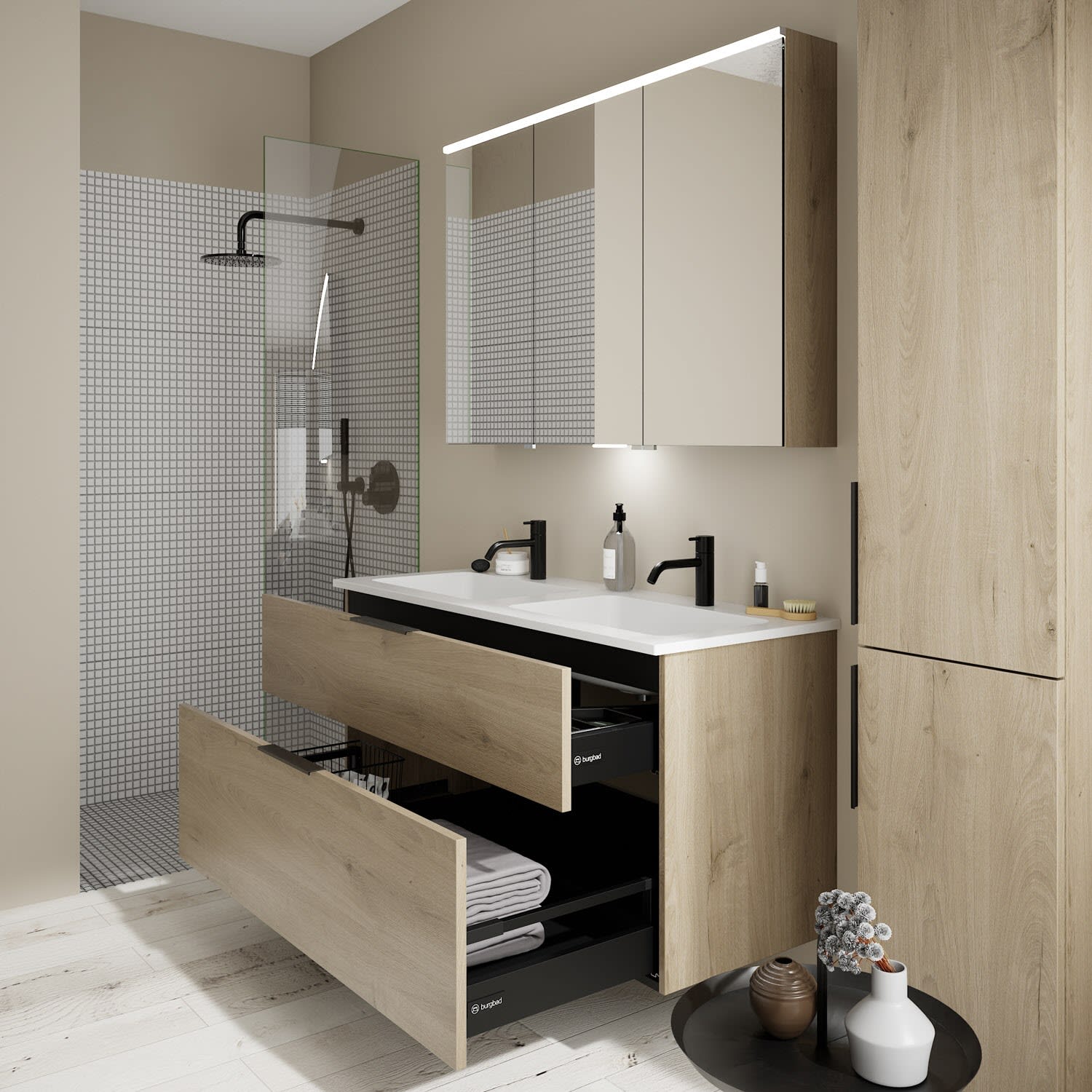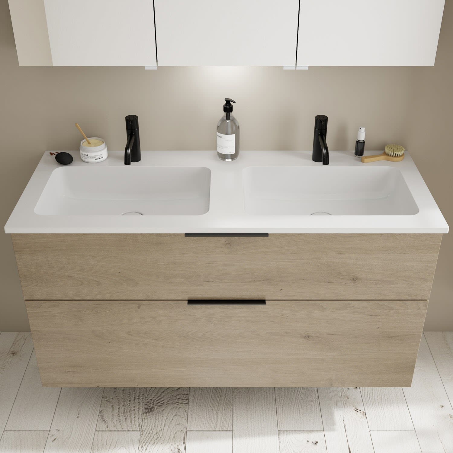 burgbad Eqio Waschtischkombination mit Mineralguss-Doppelwaschtisch, 122 cm, mit Griff G0200