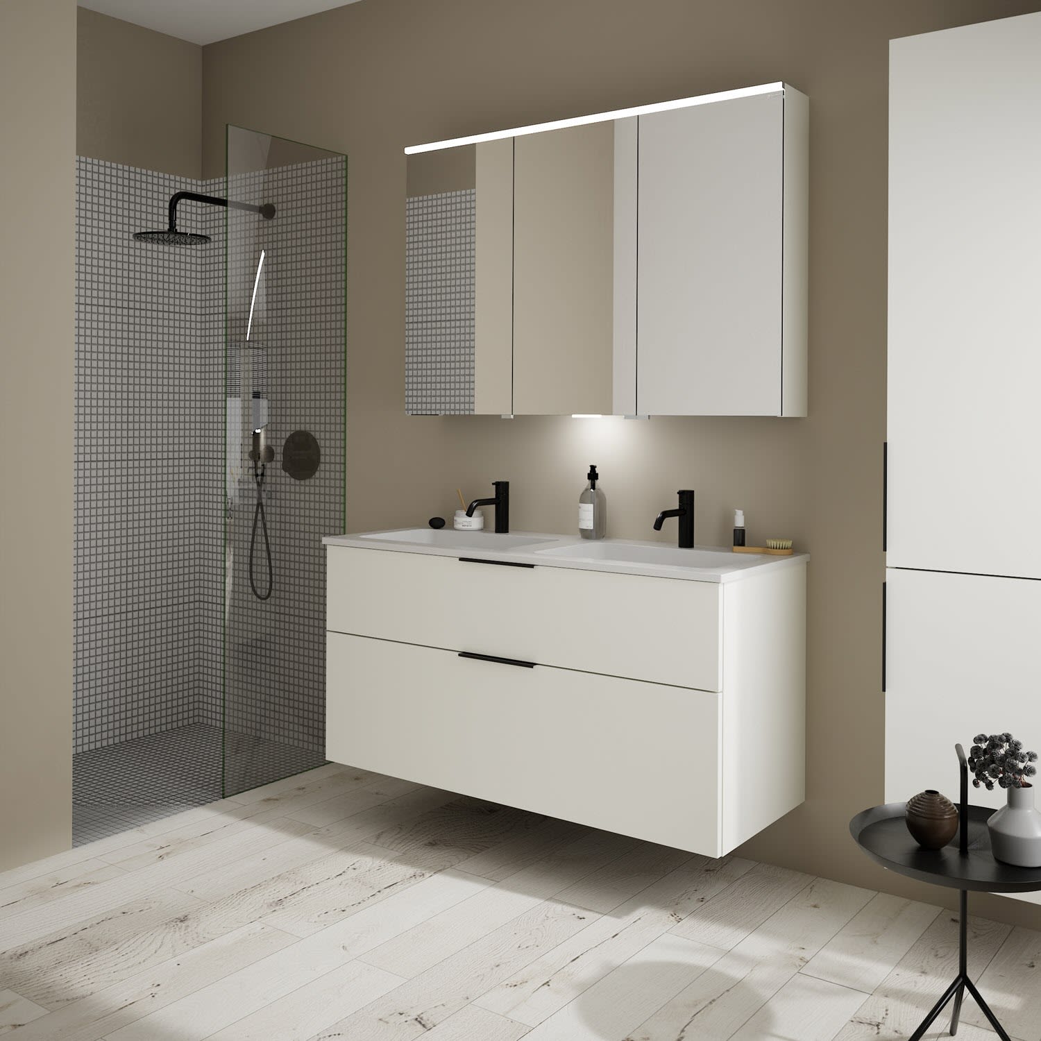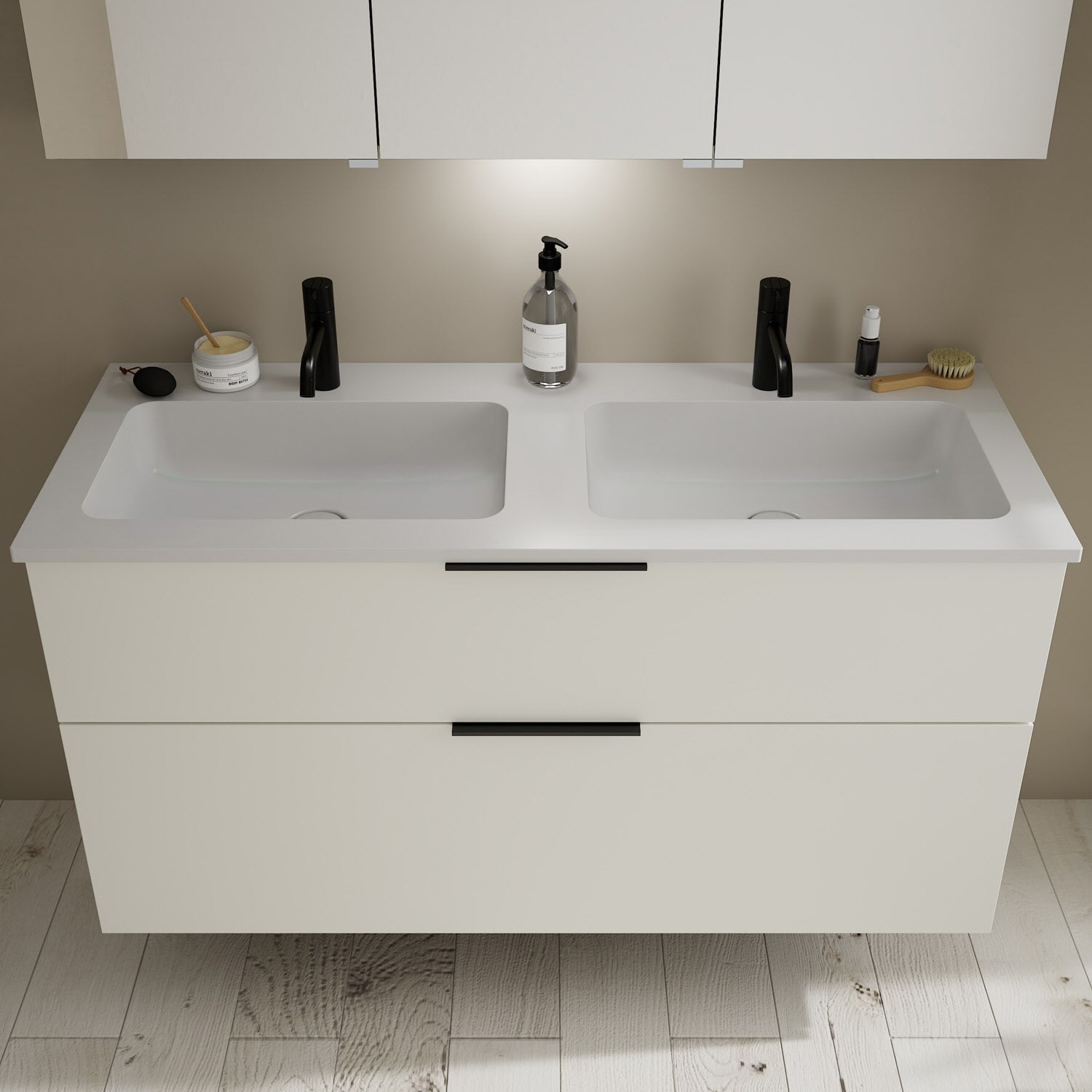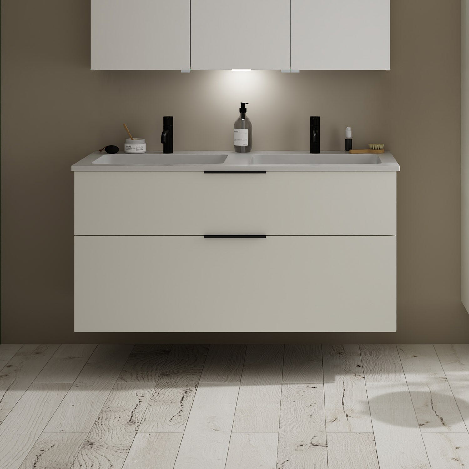 burgbad Eqio Waschtischkombination mit Mineralguss-Doppelwaschtisch, 122 cm, mit Griff G0200