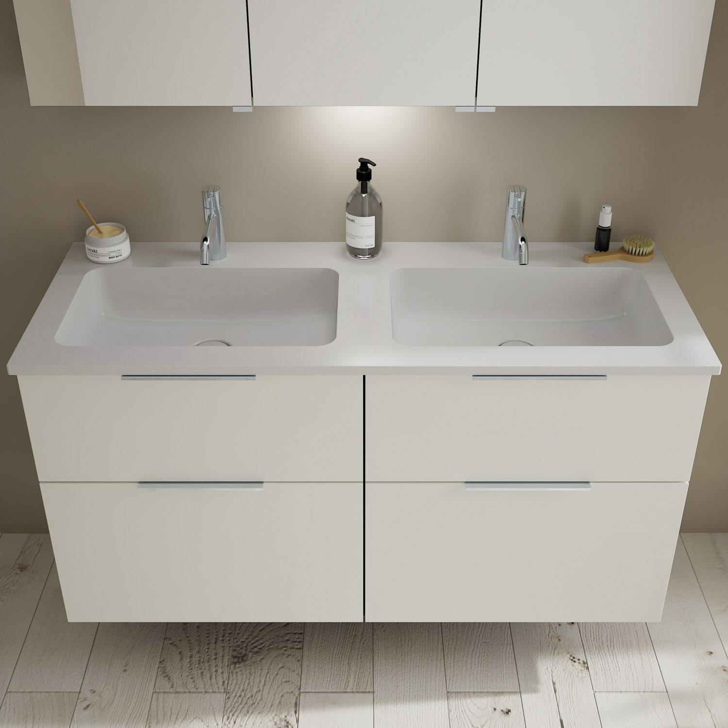 burgbad Eqio Waschtischkombination mit Mineralguss-Doppelwaschtisch, 122 cm, mit Griff G0146