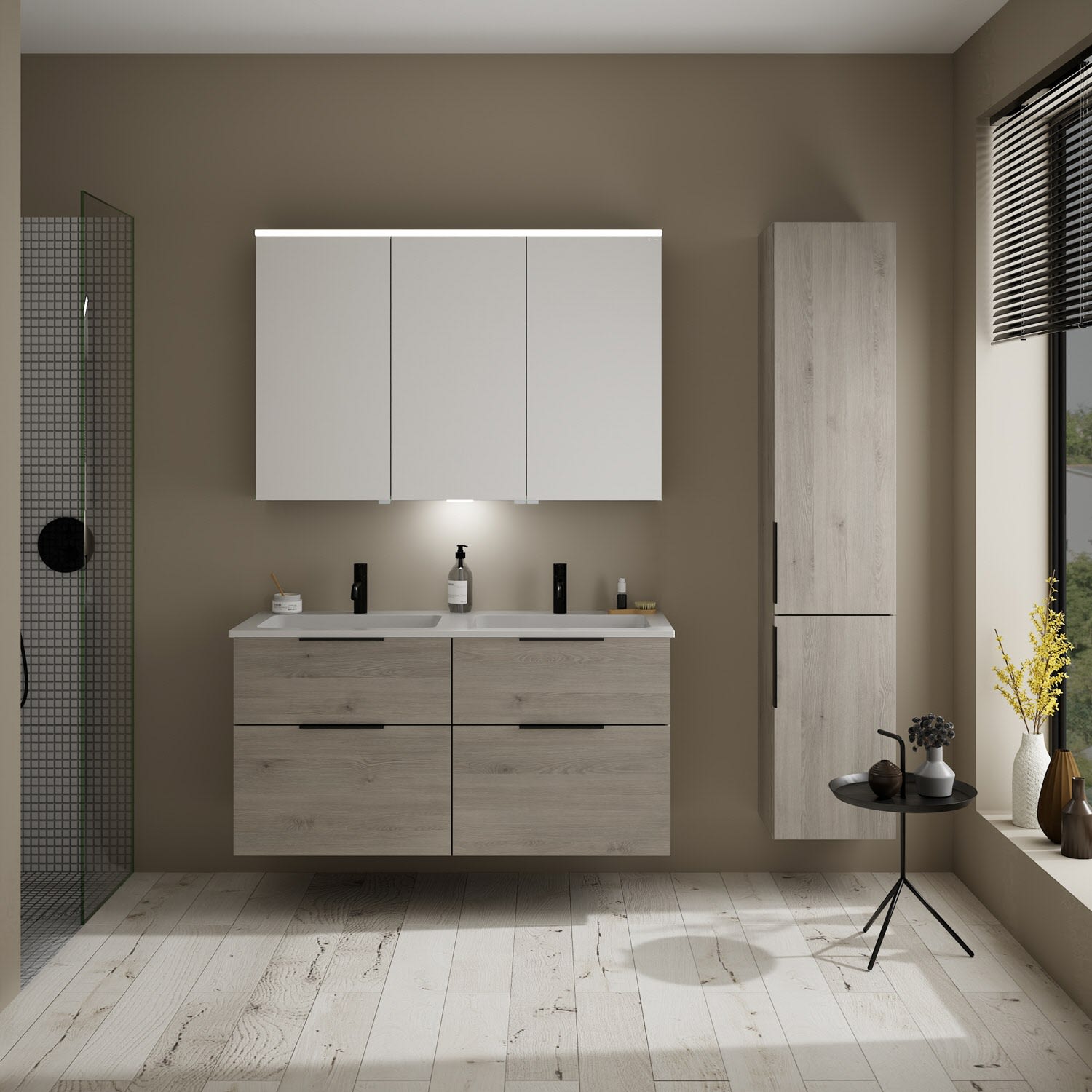 burgbad Eqio Waschtischkombination mit Mineralguss-Doppelwaschtisch, 122 cm, mit Griff G0200