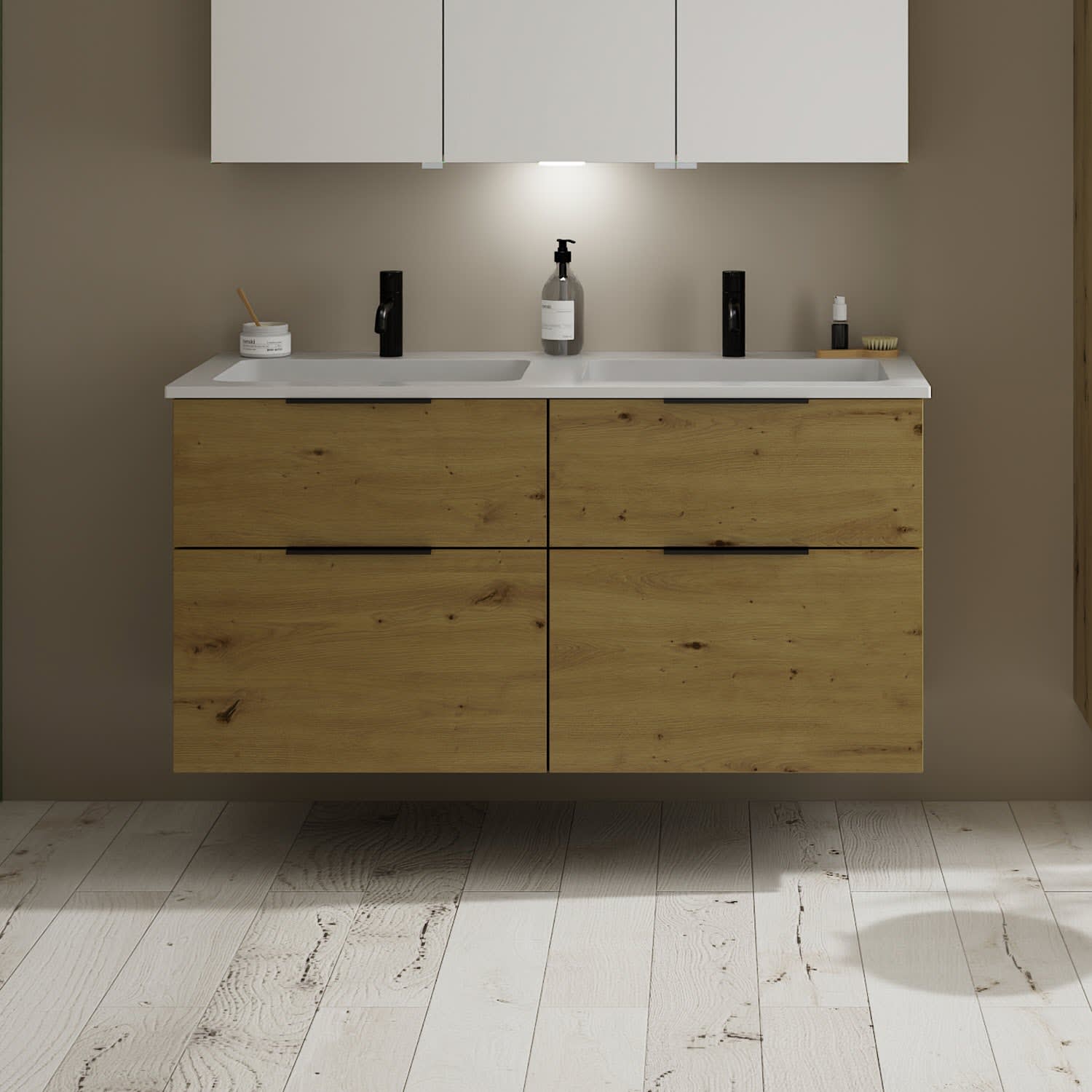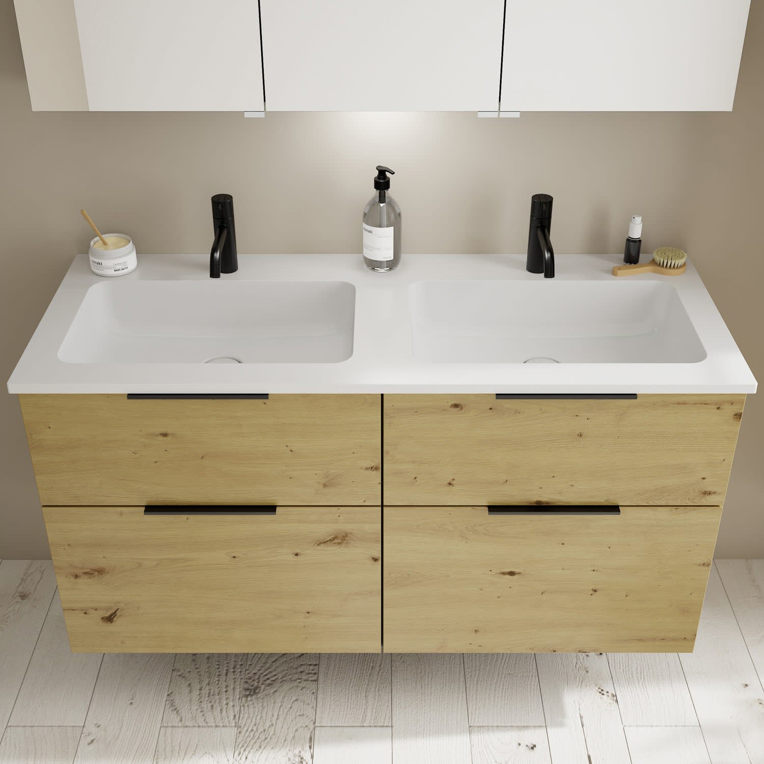 burgbad Eqio Waschtischkombination mit Mineralguss-Doppelwaschtisch, 122 cm, mit Griff G0200