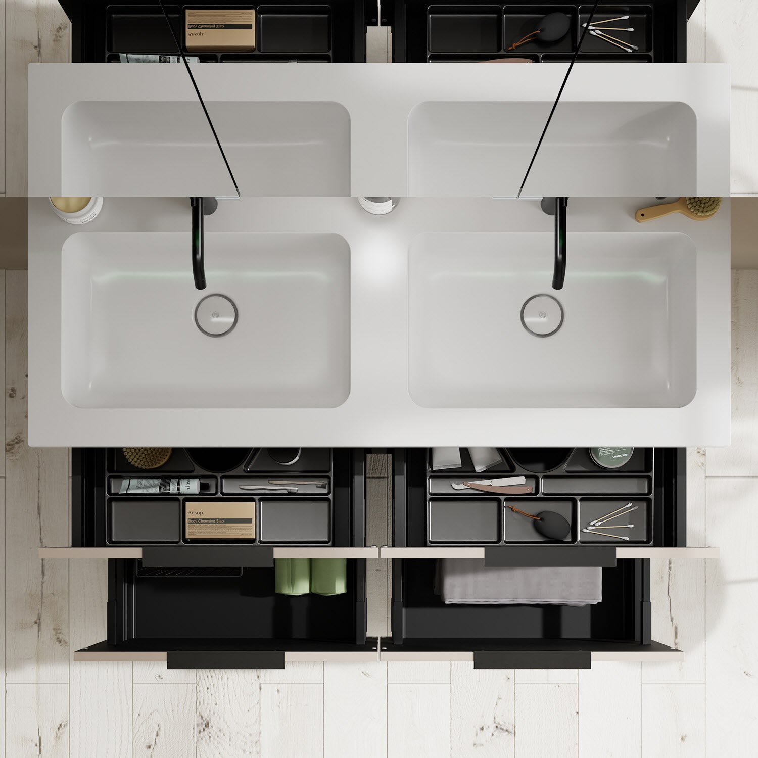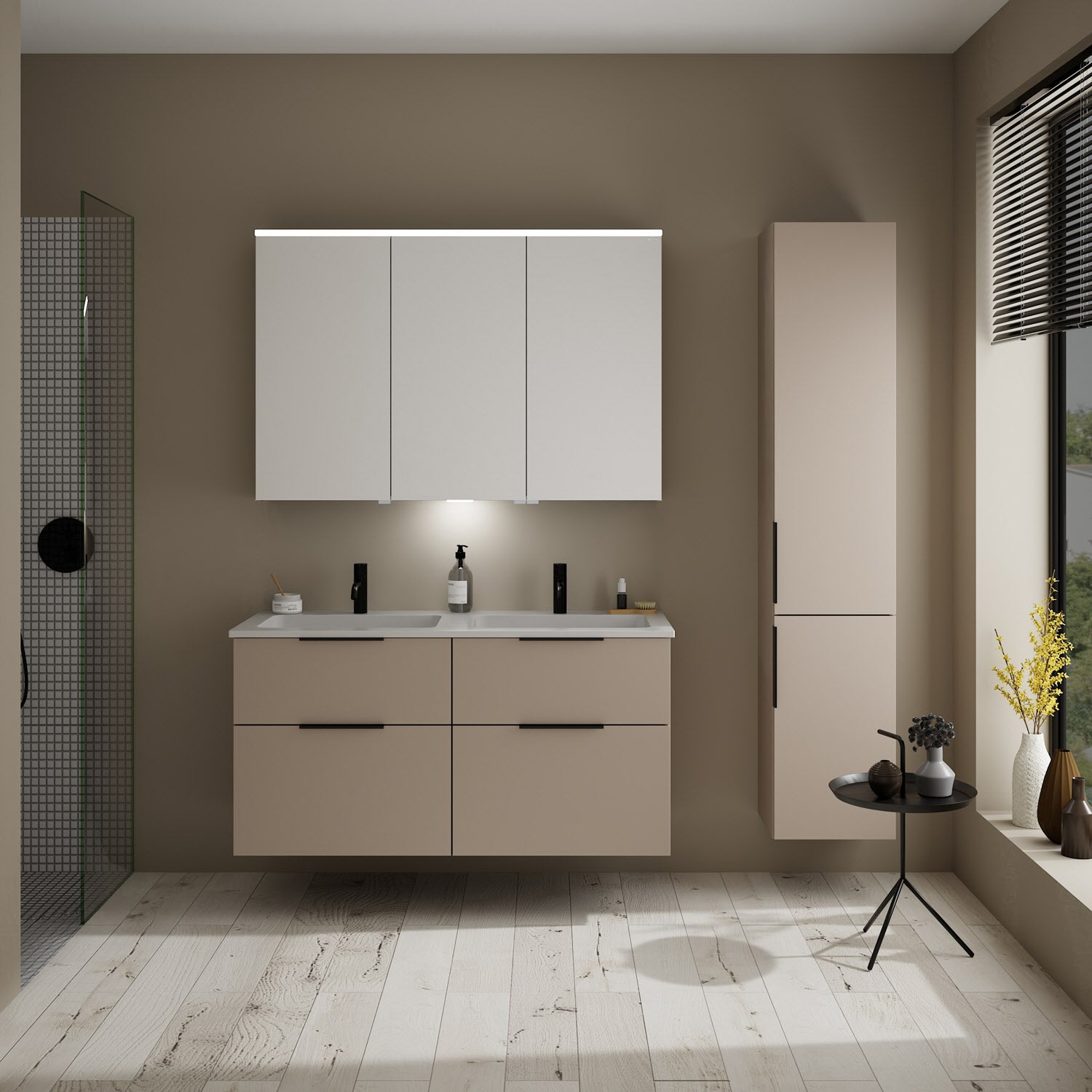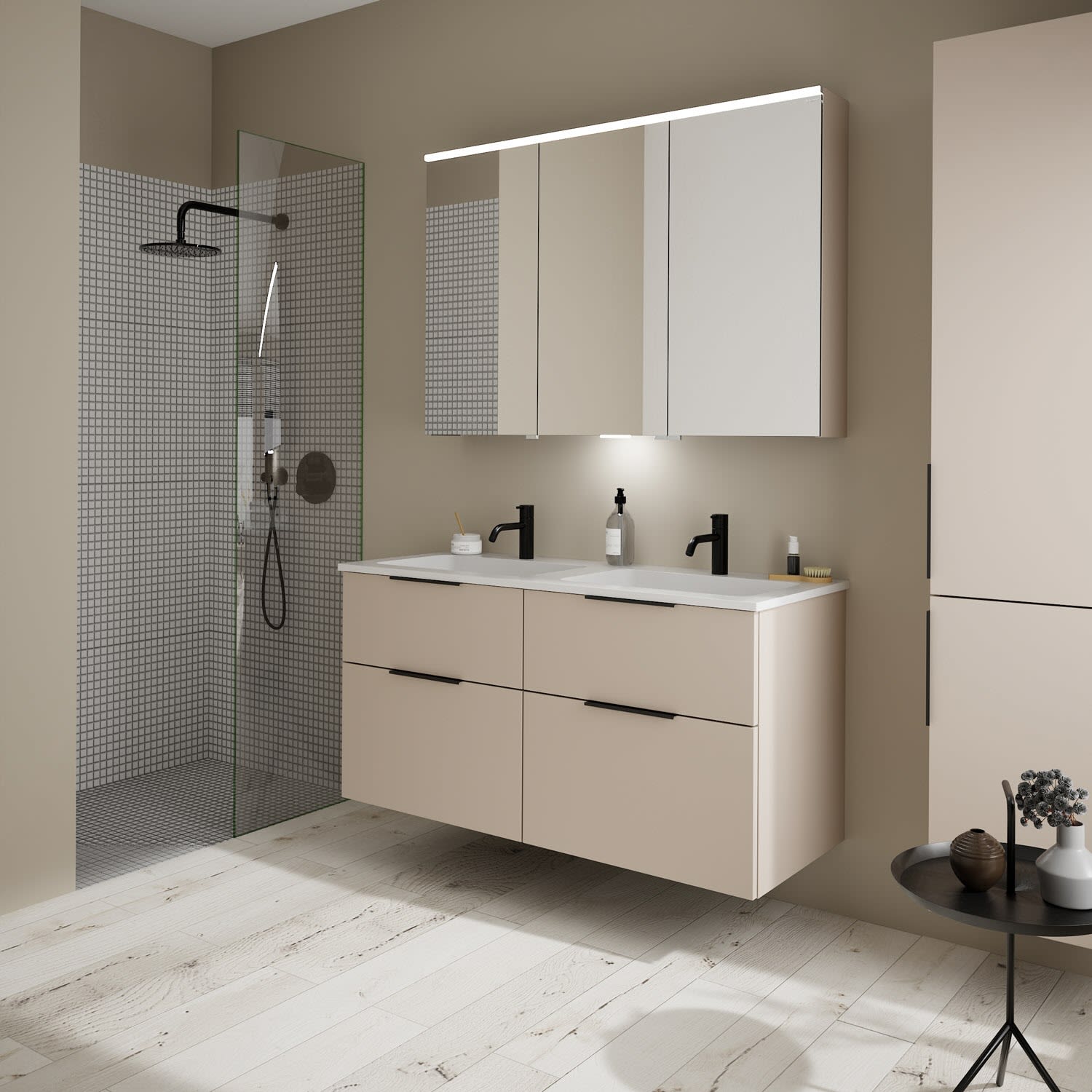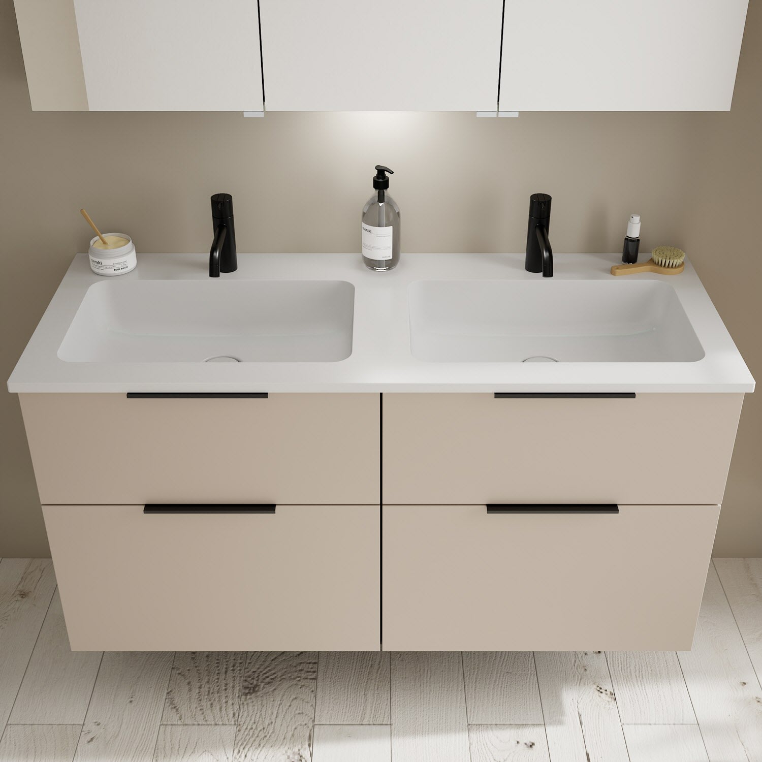 burgbad Eqio Waschtischkombination mit Mineralguss-Doppelwaschtisch, 122 cm, mit Griff G0200