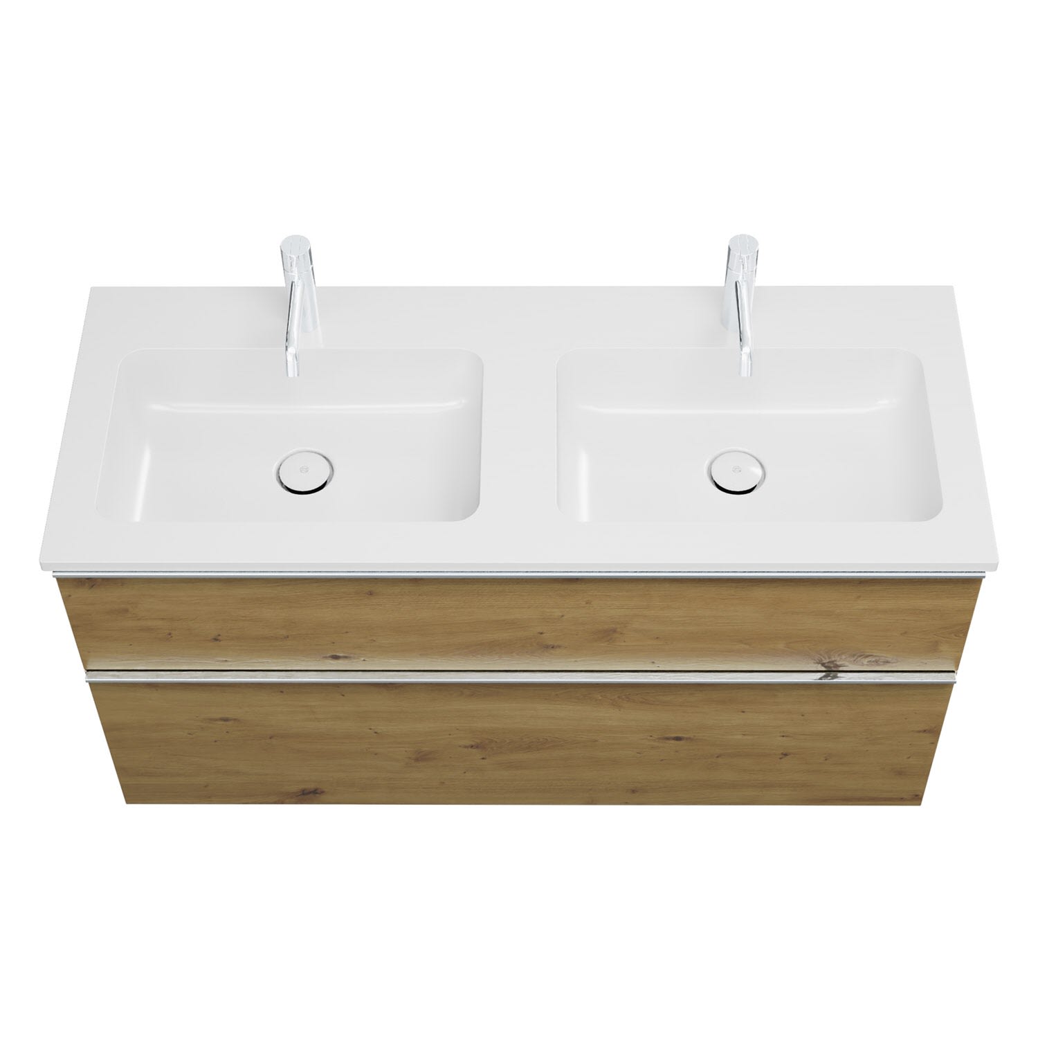burgbad Eqio Waschtischkombination mit Mineralguss-Doppelwaschtisch, 122 cm, mit Griffleiste G0251