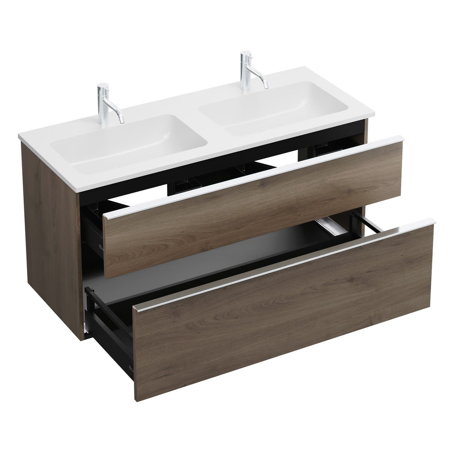 burgbad Eqio Waschtischkombination mit Mineralguss-Doppelwaschtisch, 122 cm, mit Griffleiste G0251