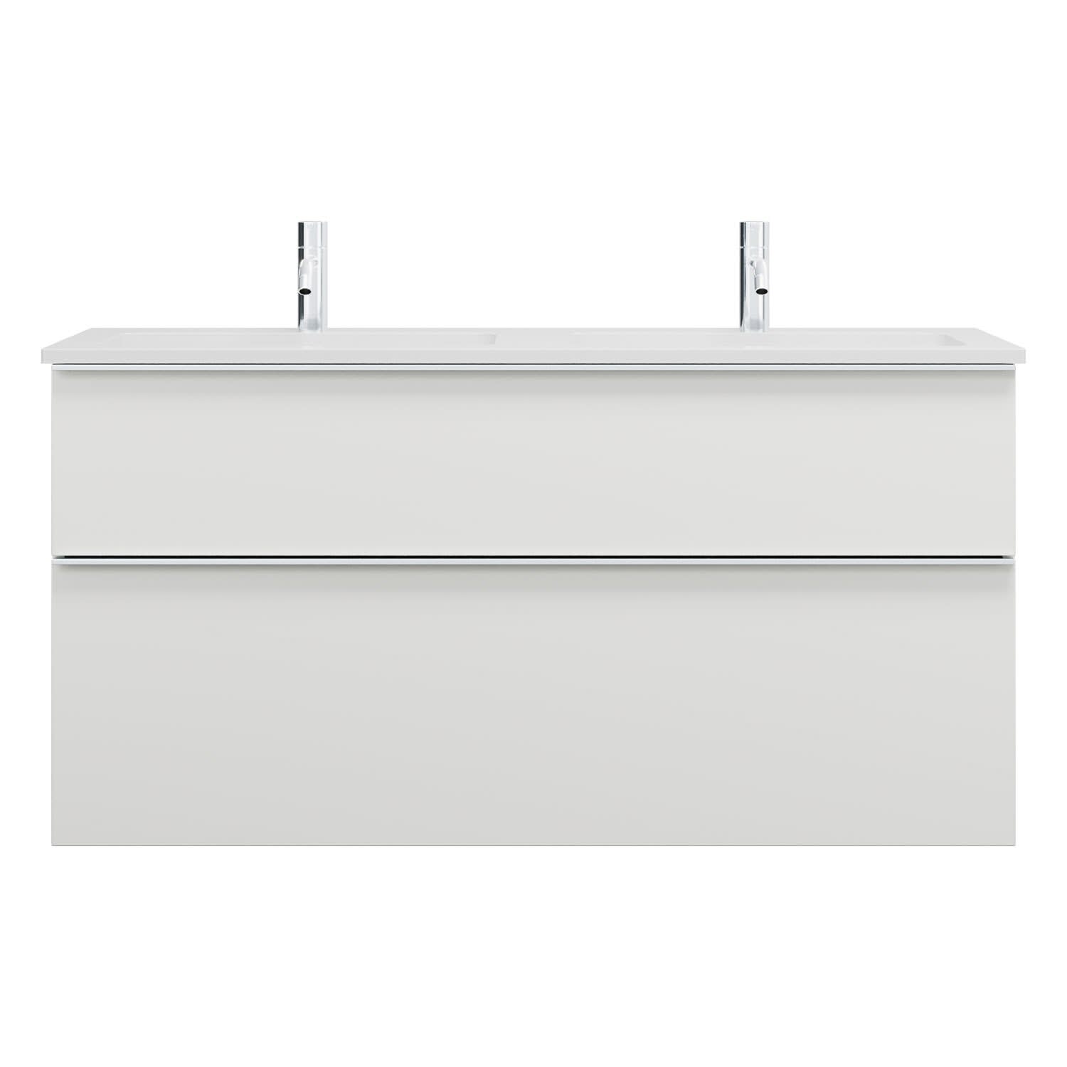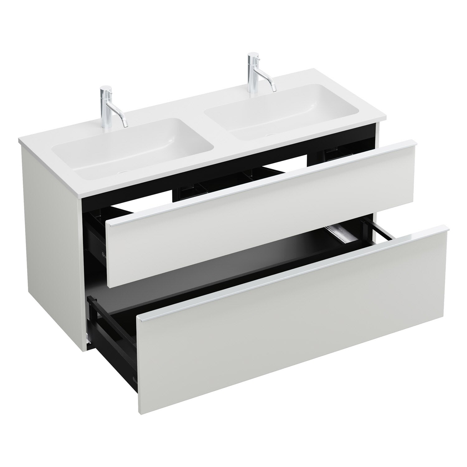 burgbad Eqio Waschtischkombination mit Mineralguss-Doppelwaschtisch, 122 cm, mit Griffleiste G0251