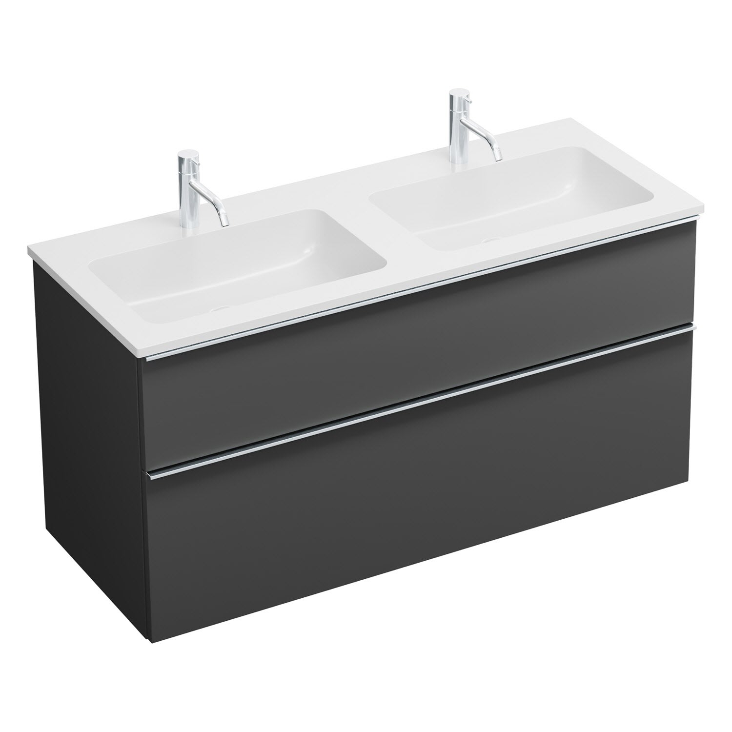 burgbad Eqio Waschtischkombination mit Mineralguss-Doppelwaschtisch, 122 cm, mit Griffleiste G0251