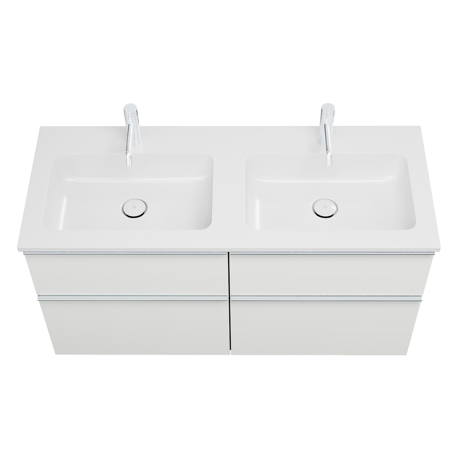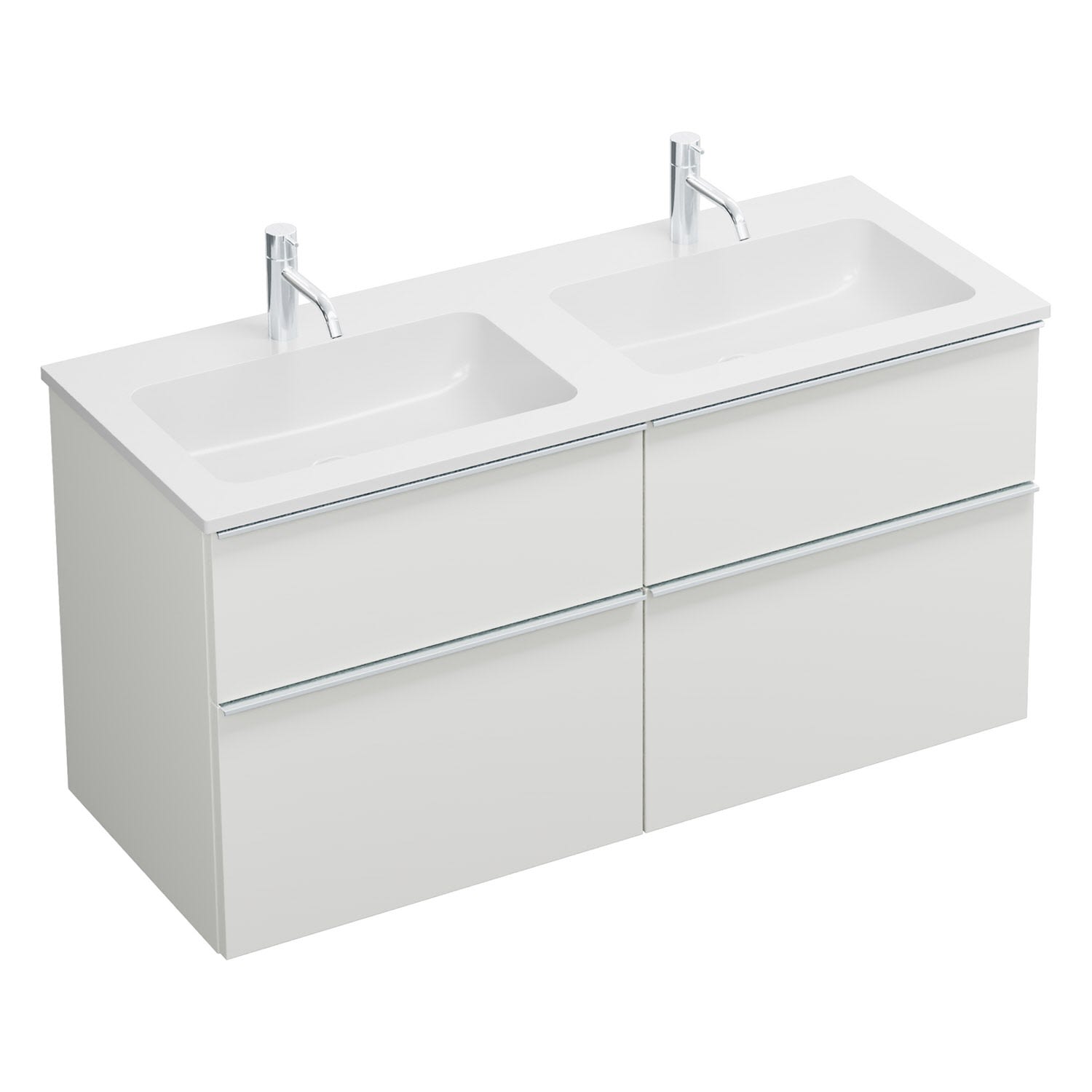 burgbad Eqio Waschtischkombination mit Mineralguss-Doppelwaschtisch, 122 cm, mit Griffleiste G0251