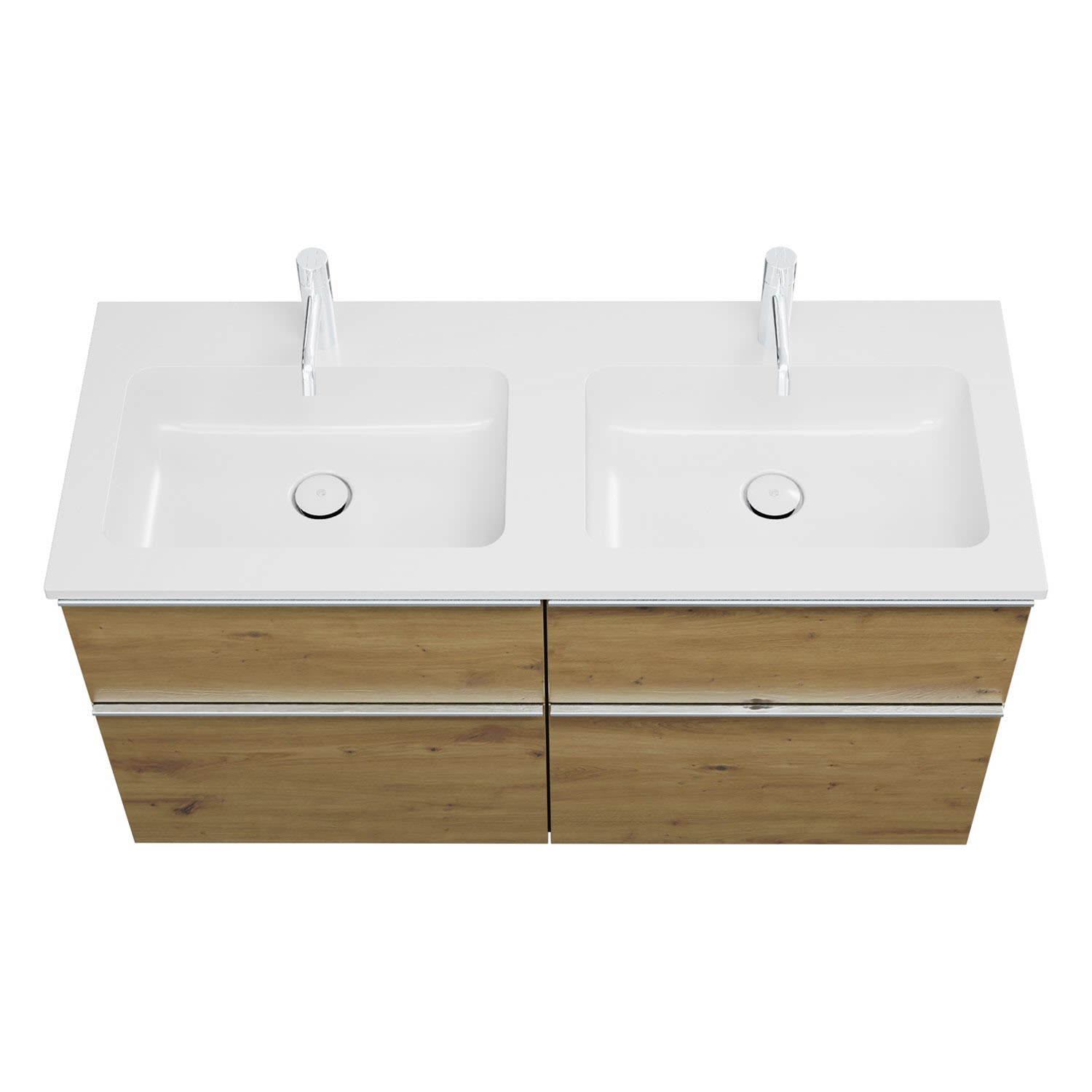 burgbad Eqio Waschtischkombination mit Mineralguss-Doppelwaschtisch, 122 cm, mit Griffleiste G0251