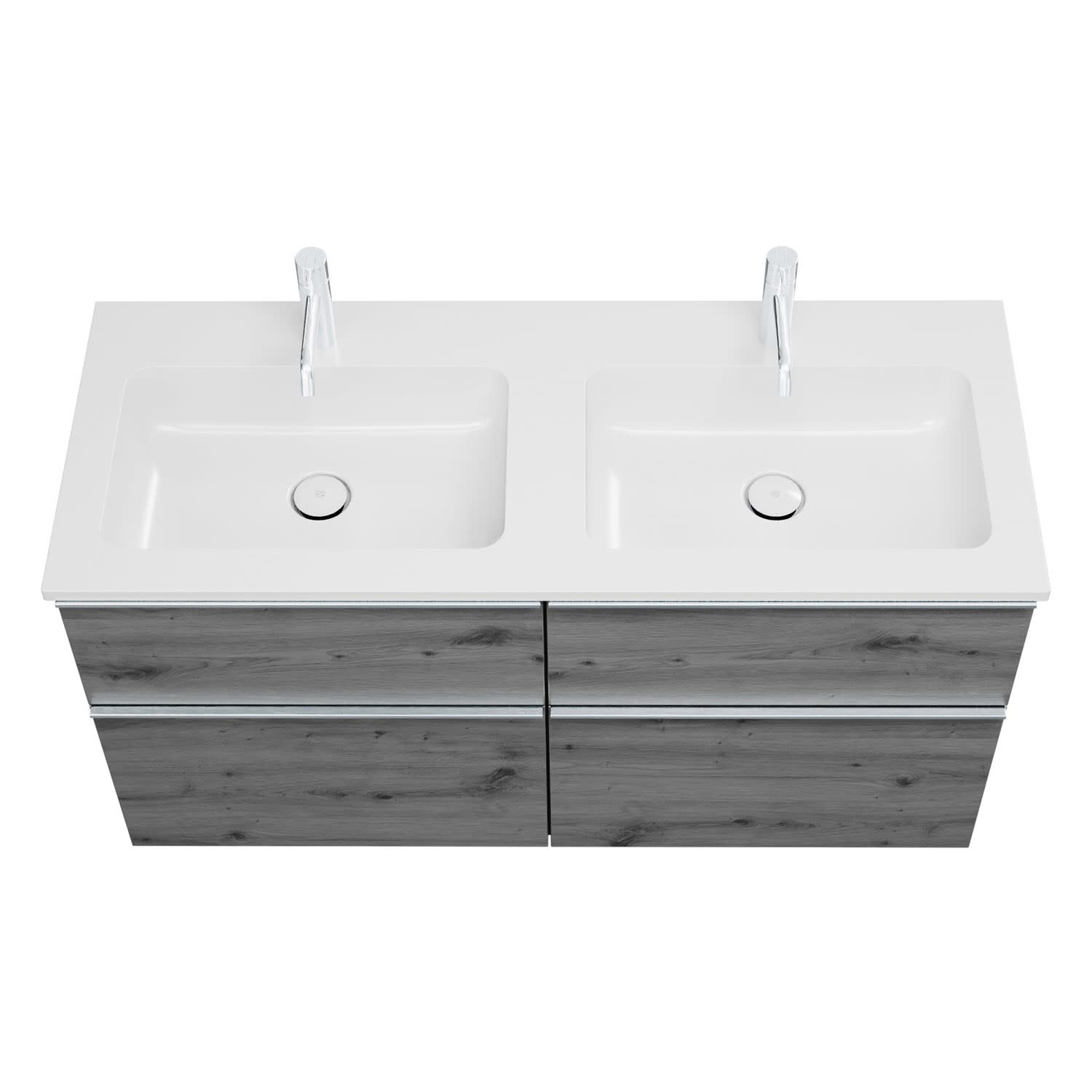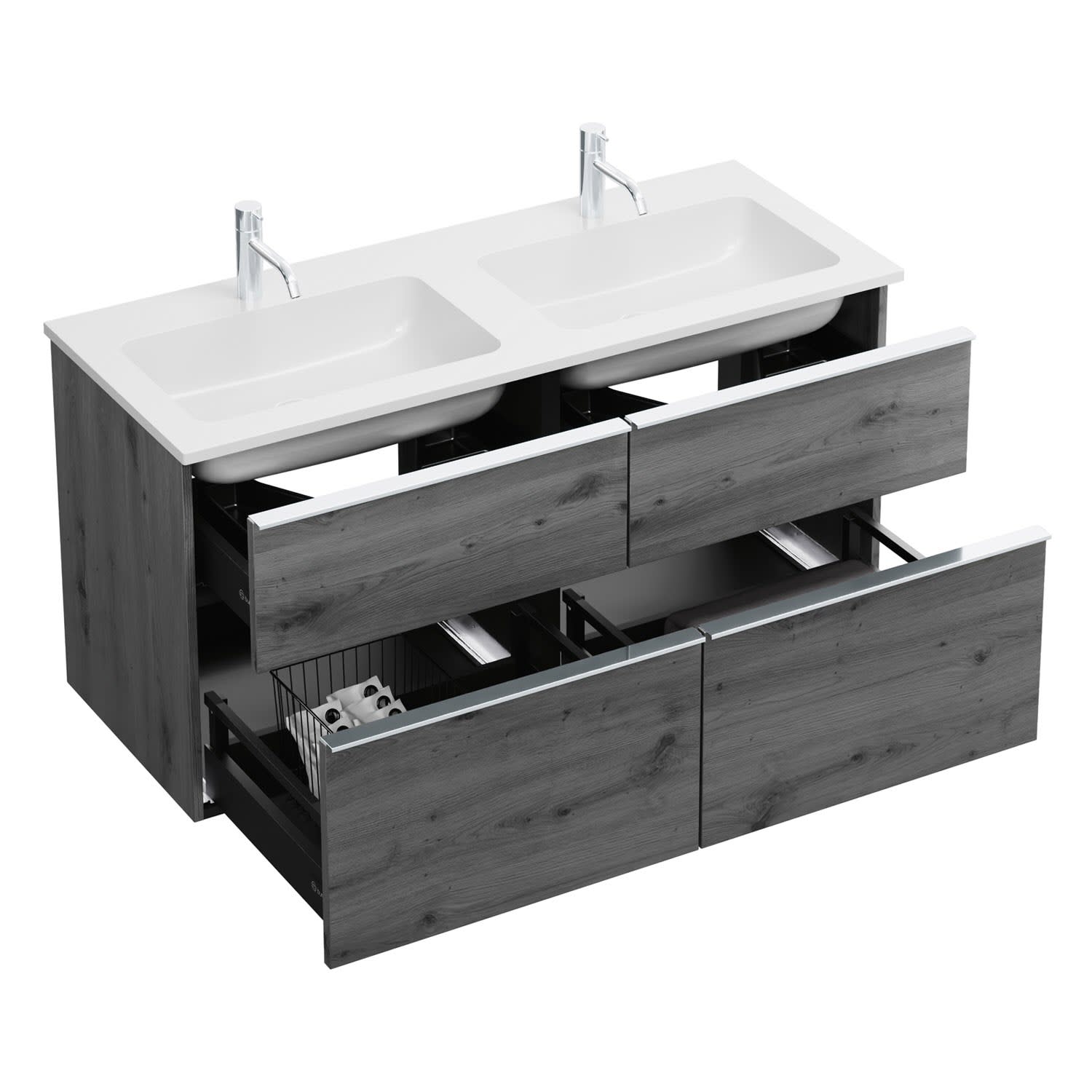 burgbad Eqio Waschtischkombination mit Mineralguss-Doppelwaschtisch, 122 cm, mit Griffleiste G0251