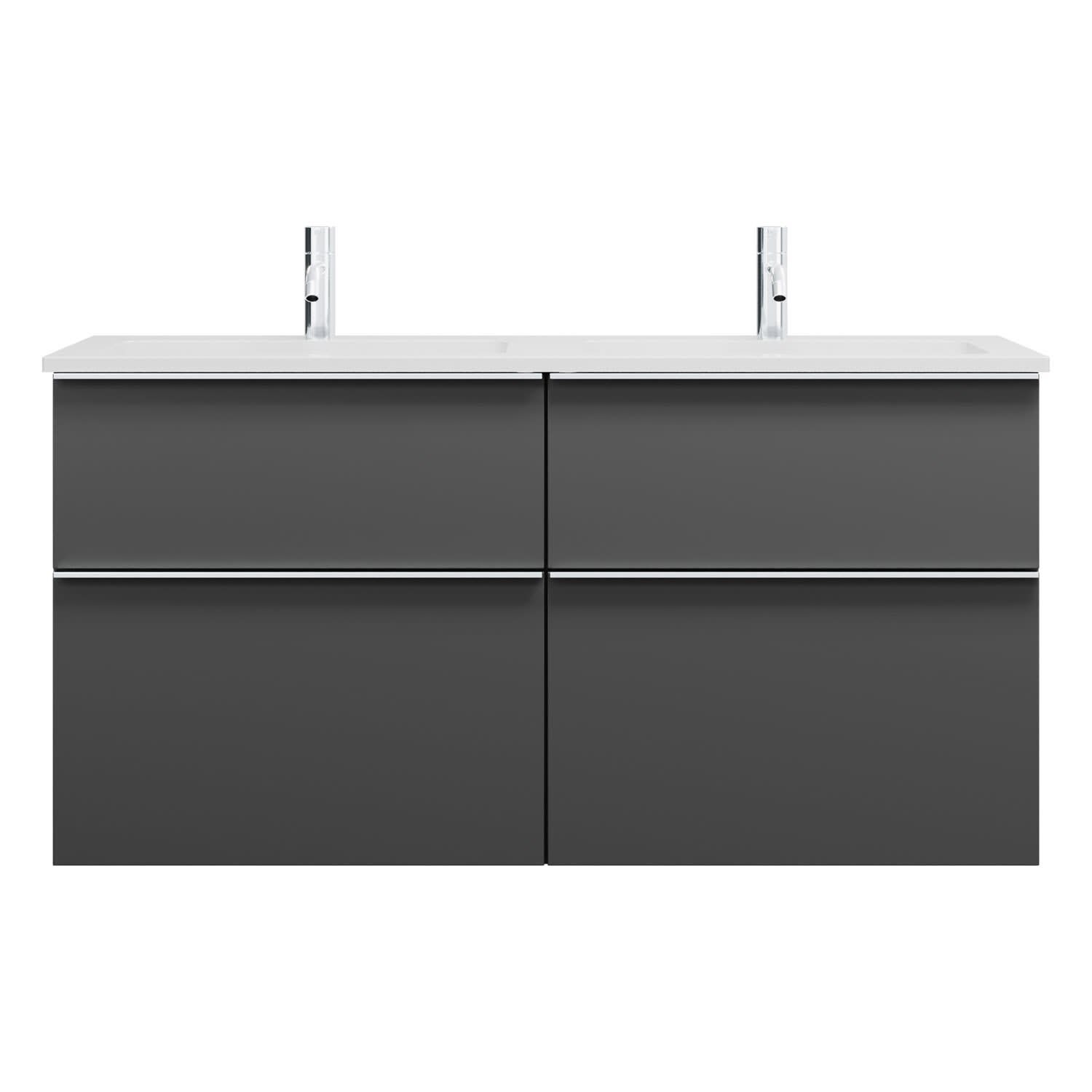 burgbad Eqio Waschtischkombination mit Mineralguss-Doppelwaschtisch, 122 cm, mit Griffleiste G0251