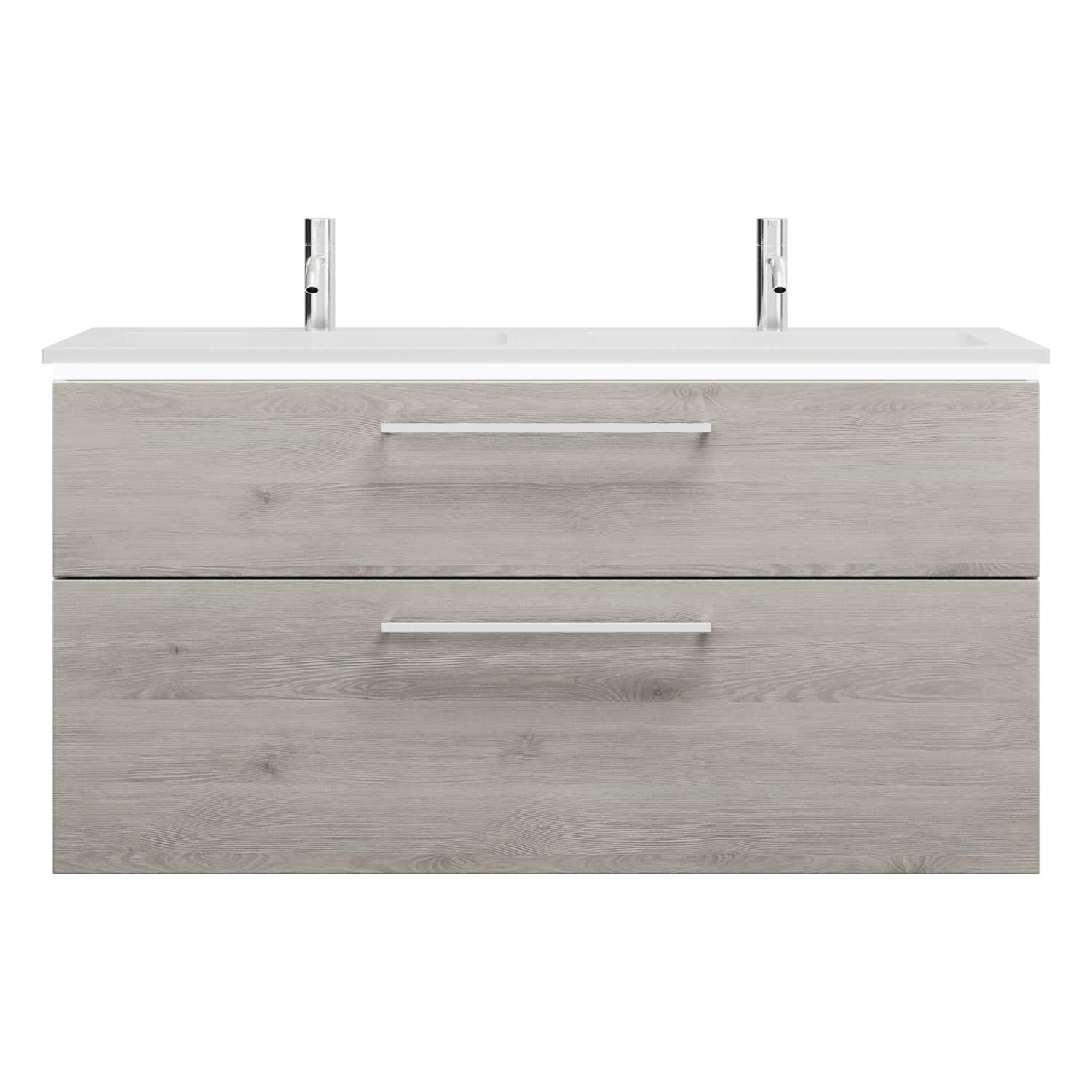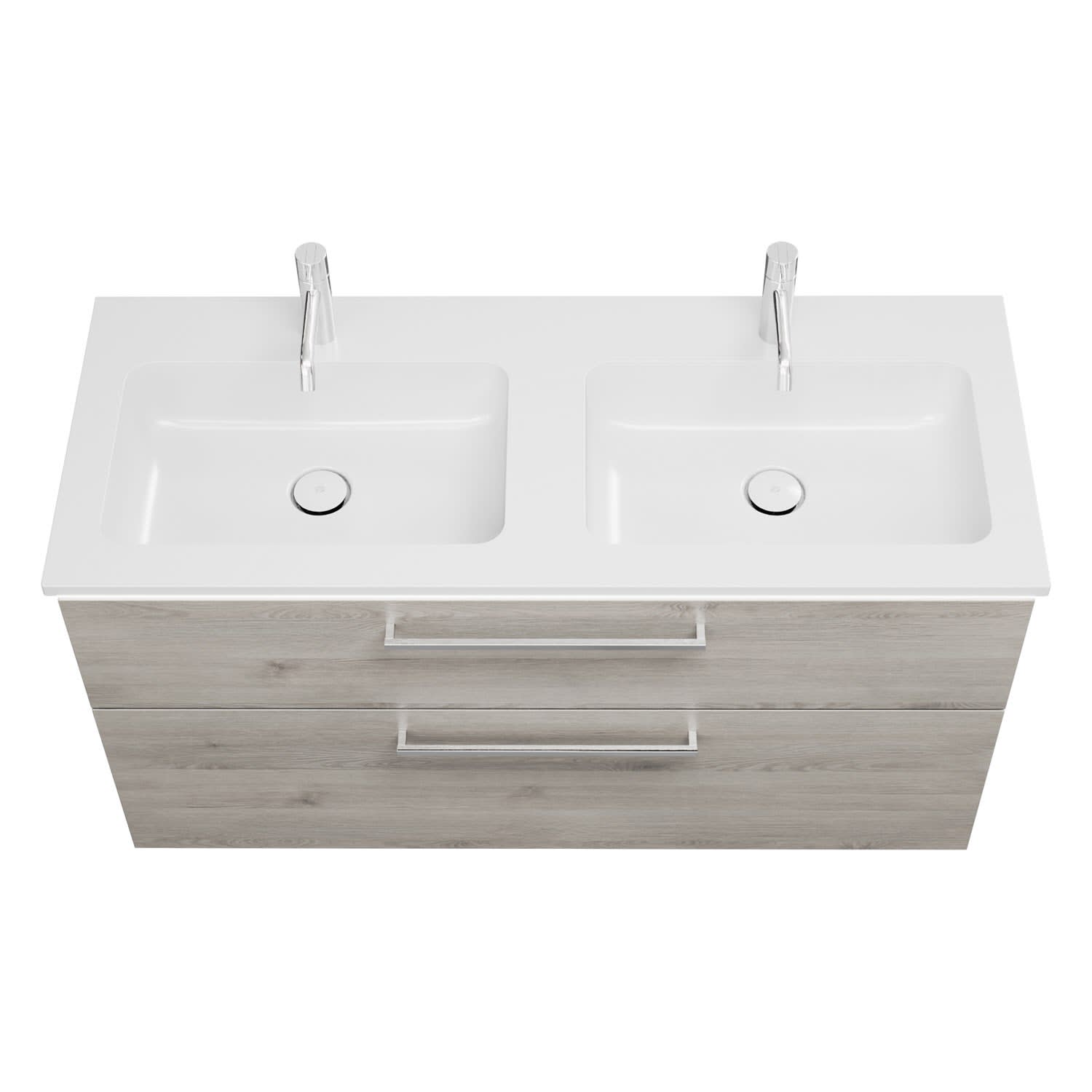 burgbad Eqio Waschtischkombination mit Mineralguss-Doppelwaschtisch und LED-Beleuchtung, 122 cm, mit Stangengriff P95
