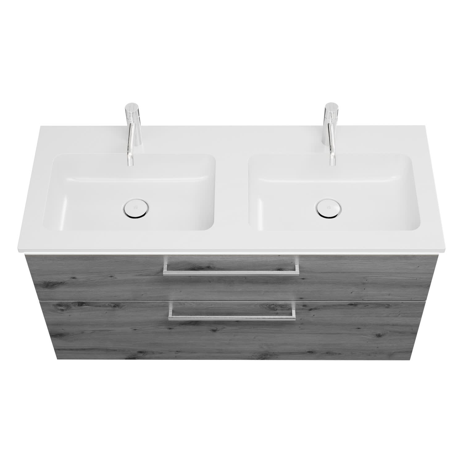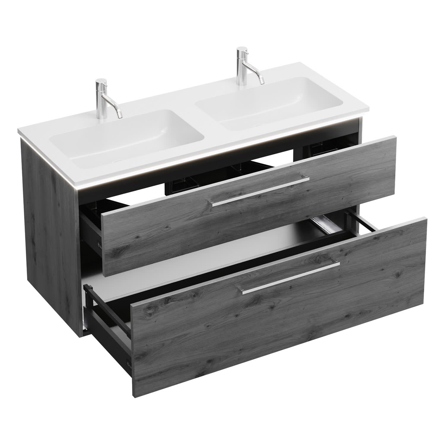 burgbad Eqio Waschtischkombination mit Mineralguss-Doppelwaschtisch und LED-Beleuchtung, 122 cm, mit Stangengriff P95
