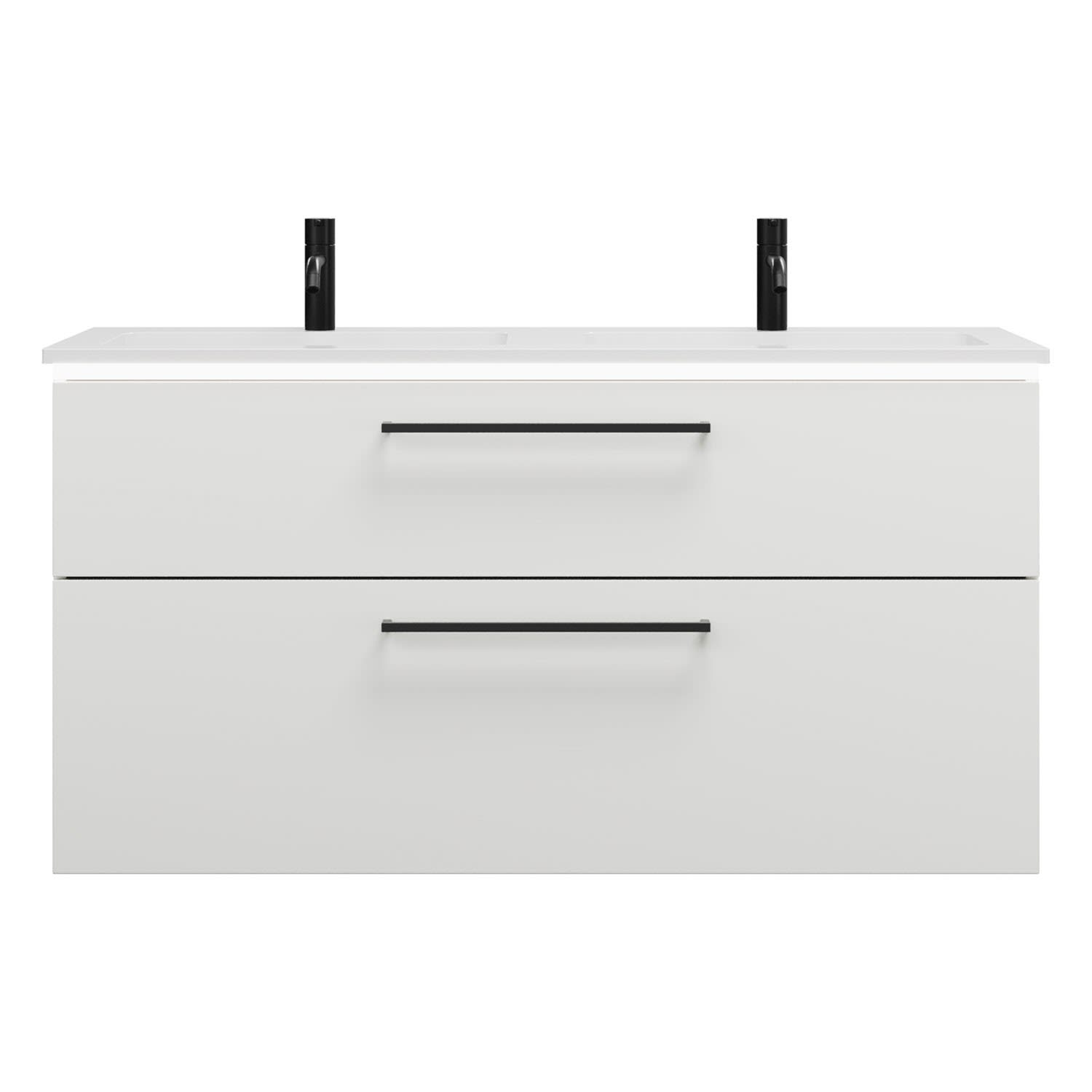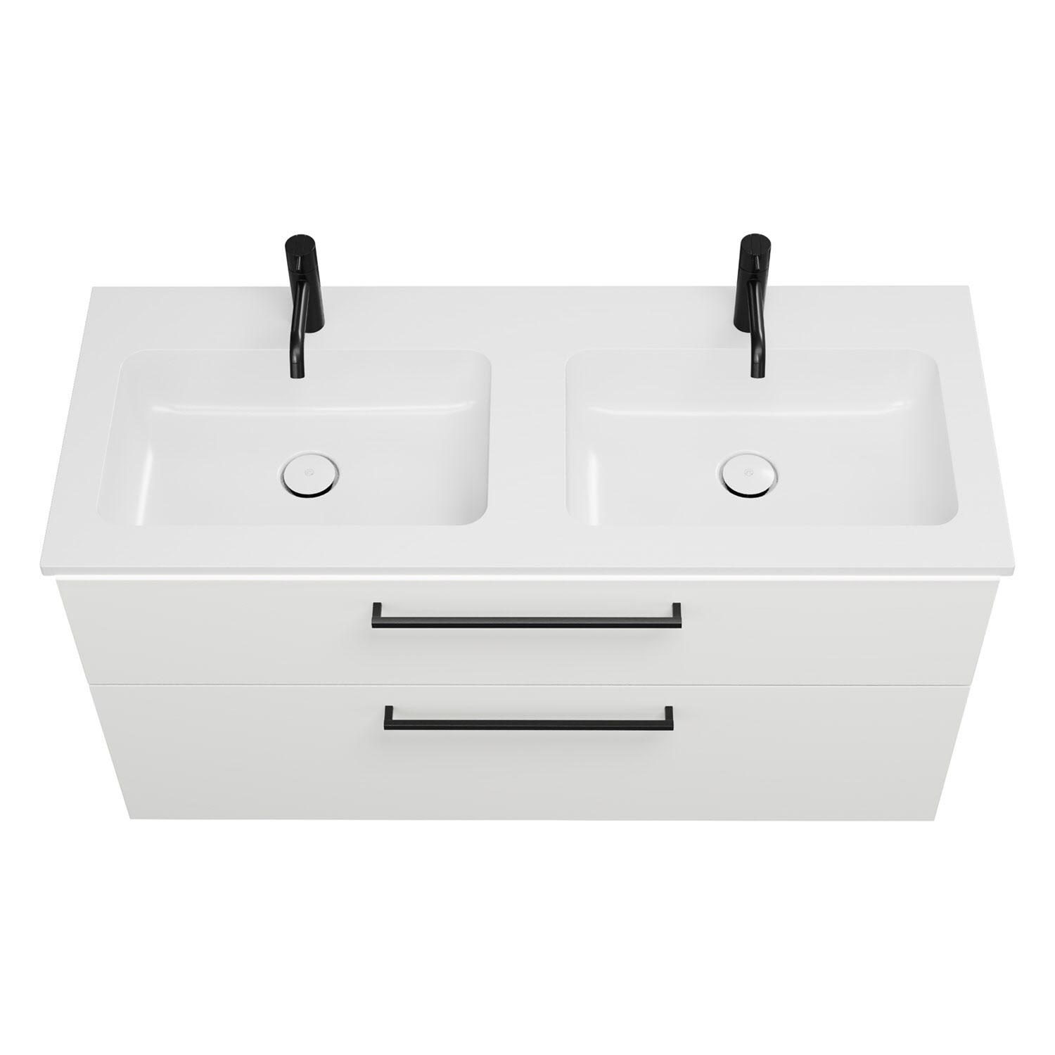 burgbad Eqio Waschtischkombination mit Mineralguss-Doppelwaschtisch und LED-Beleuchtung, 122 cm, mit Stangengriff G0234