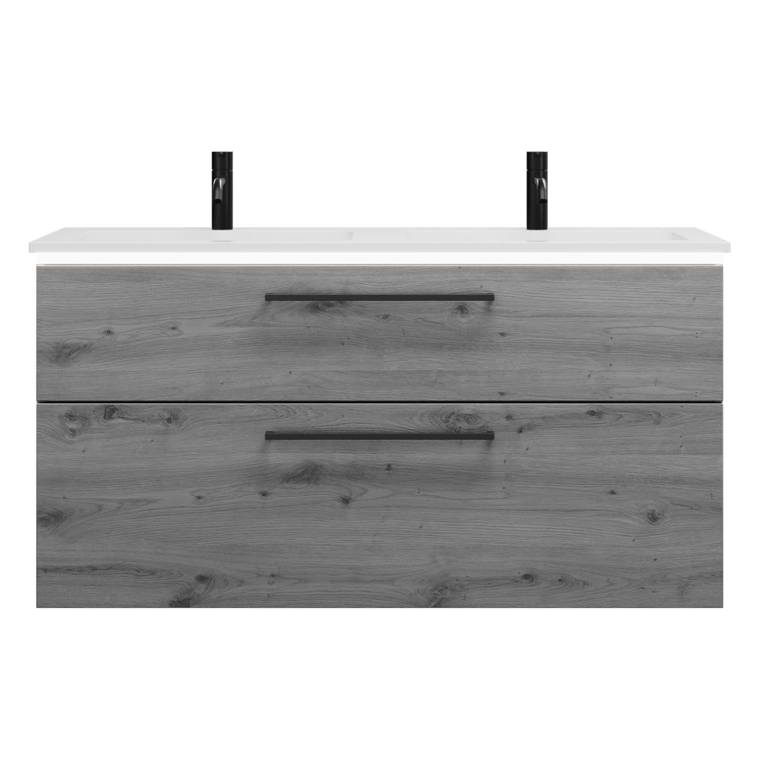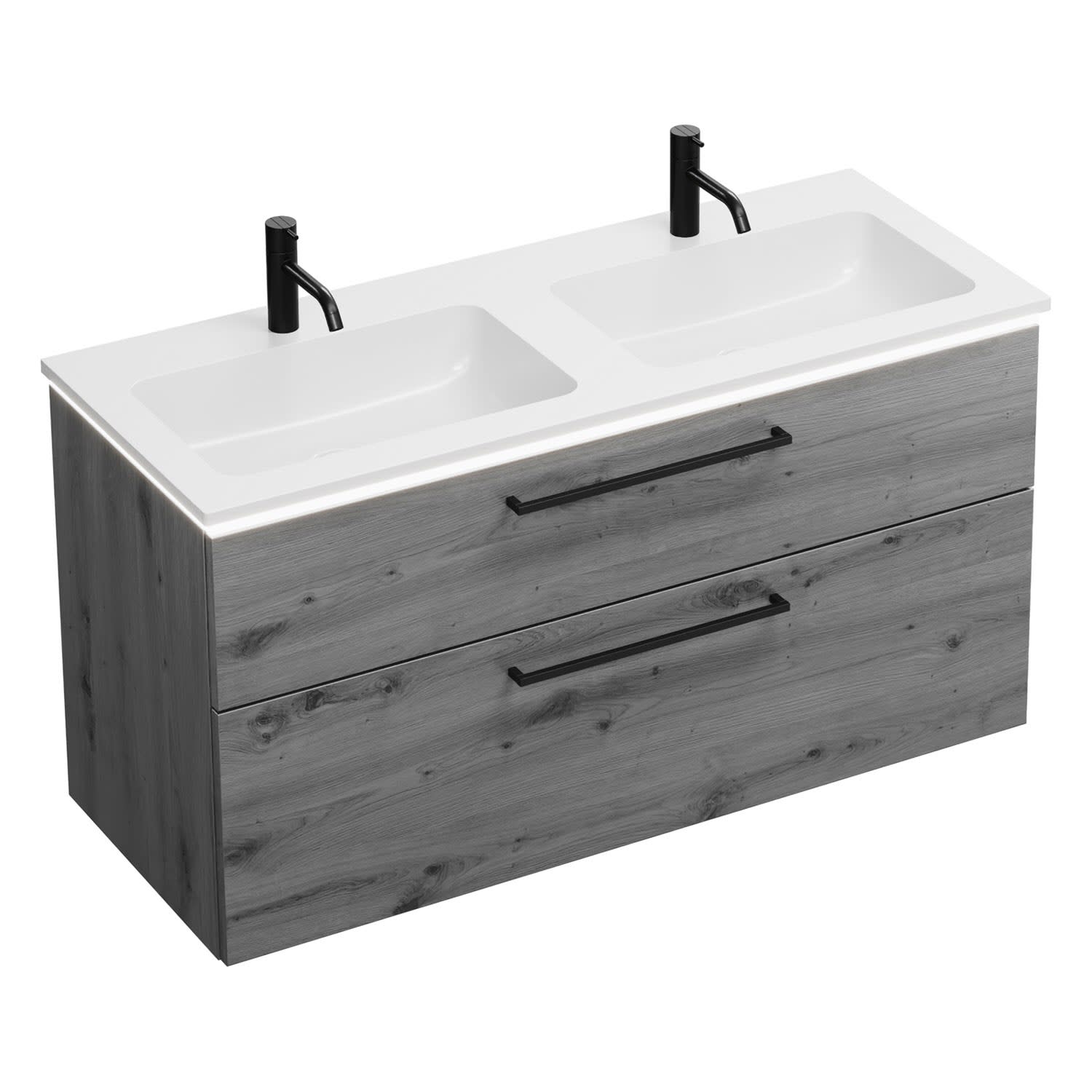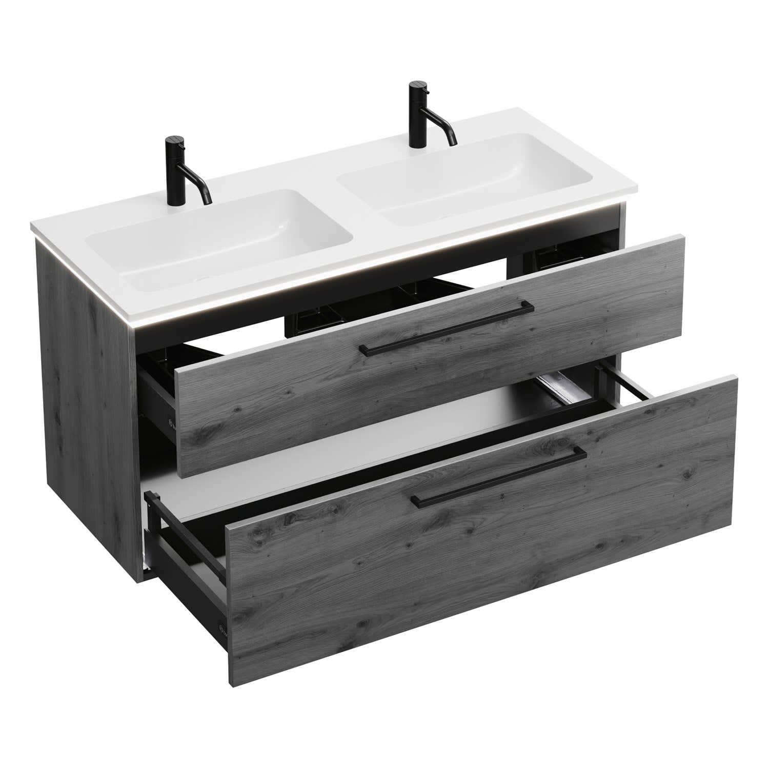 burgbad Eqio Waschtischkombination mit Mineralguss-Doppelwaschtisch und LED-Beleuchtung, 122 cm, mit Stangengriff G0234