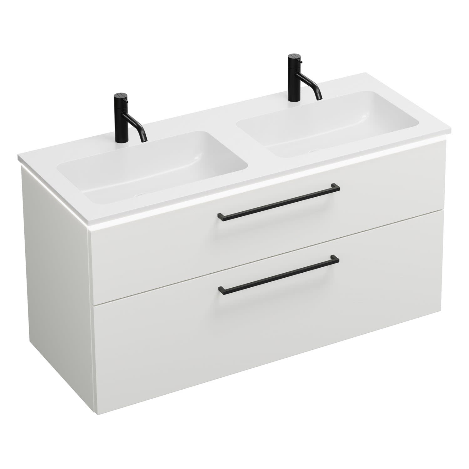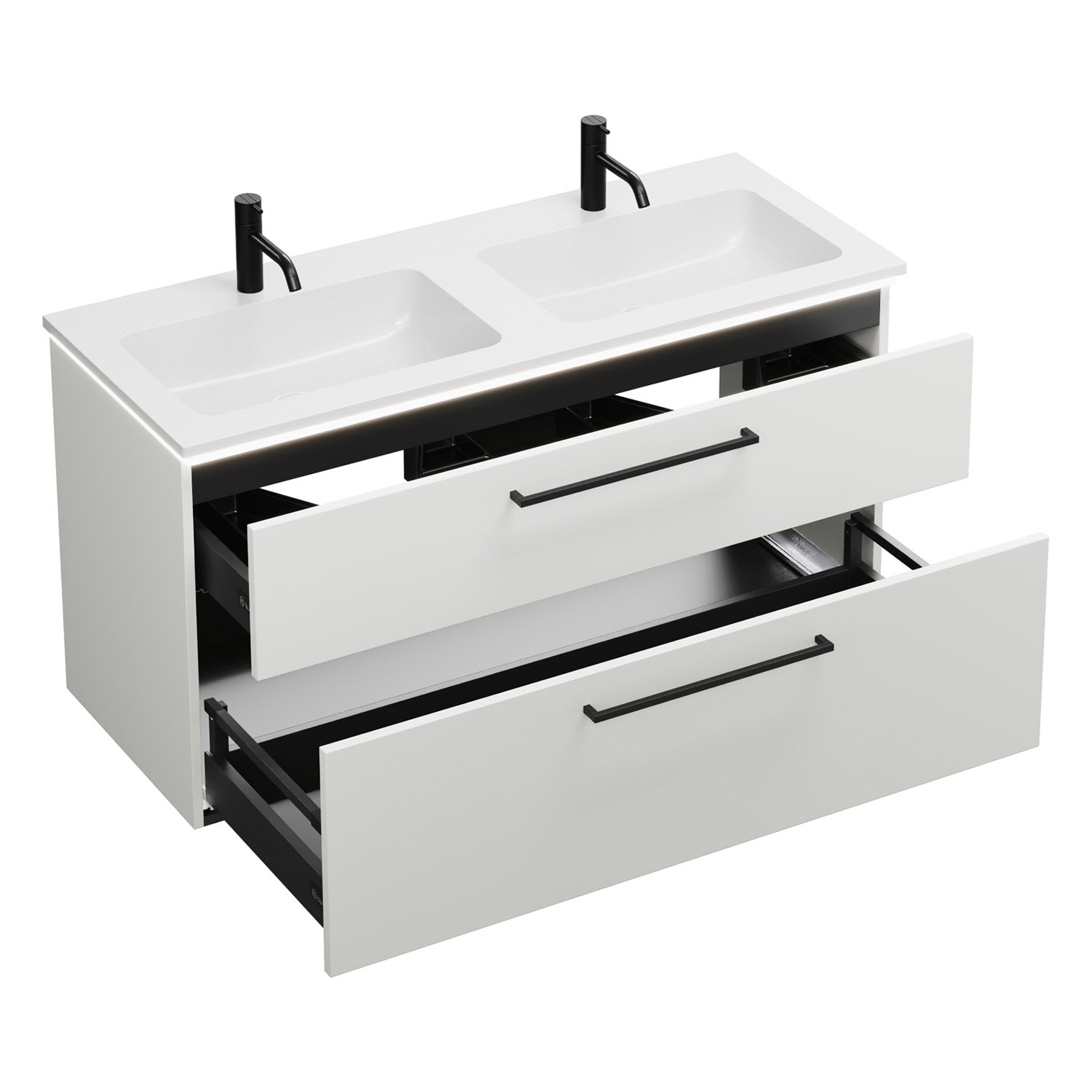 burgbad Eqio Waschtischkombination mit Mineralguss-Doppelwaschtisch und LED-Beleuchtung, 122 cm, mit Stangengriff G0234