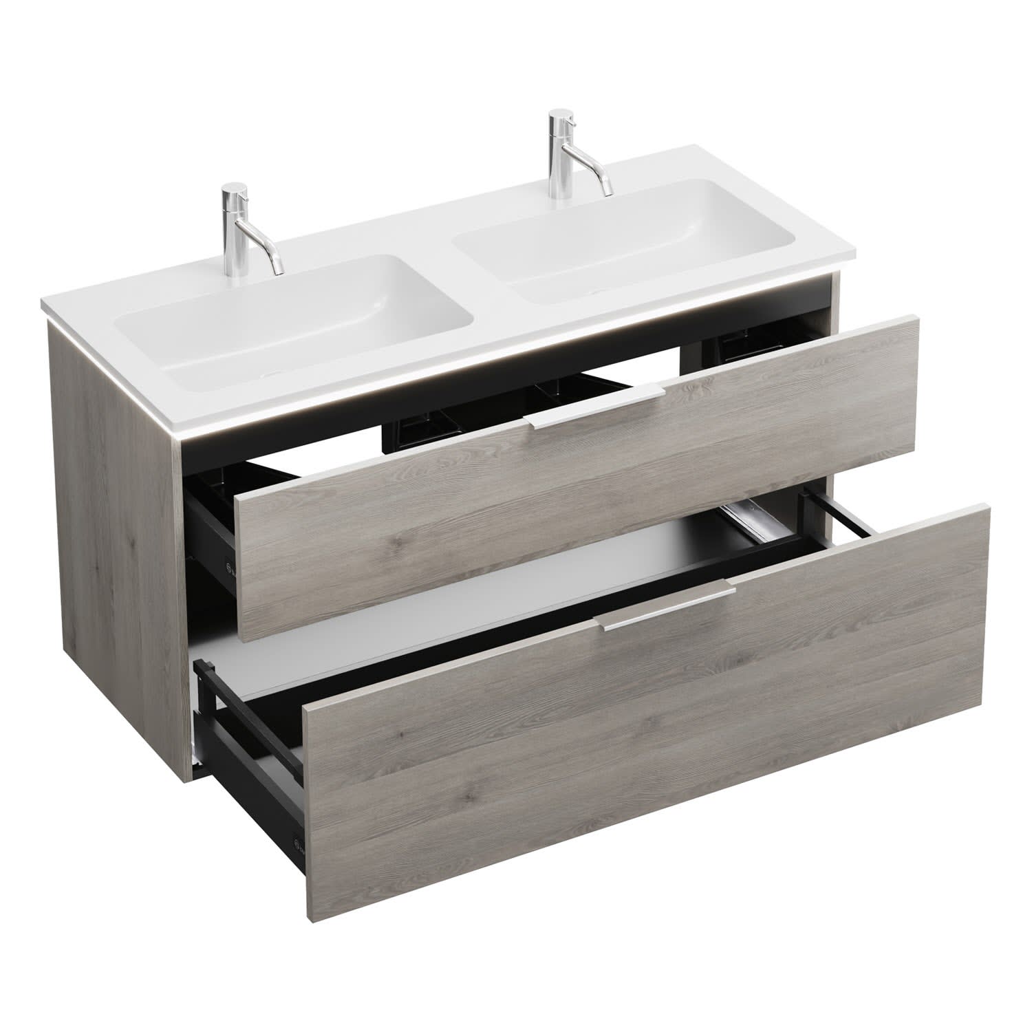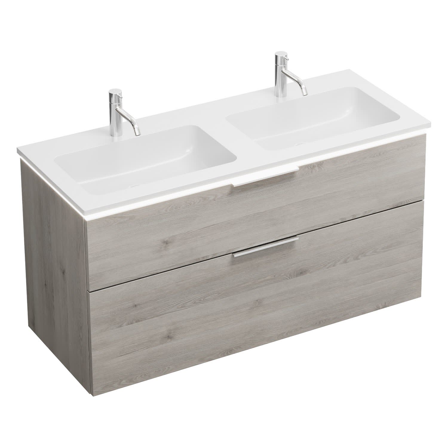 burgbad Eqio Waschtischkombination mit Mineralguss-Doppelwaschtisch und LED-Beleuchtung, 122 cm, mit Griff G0146