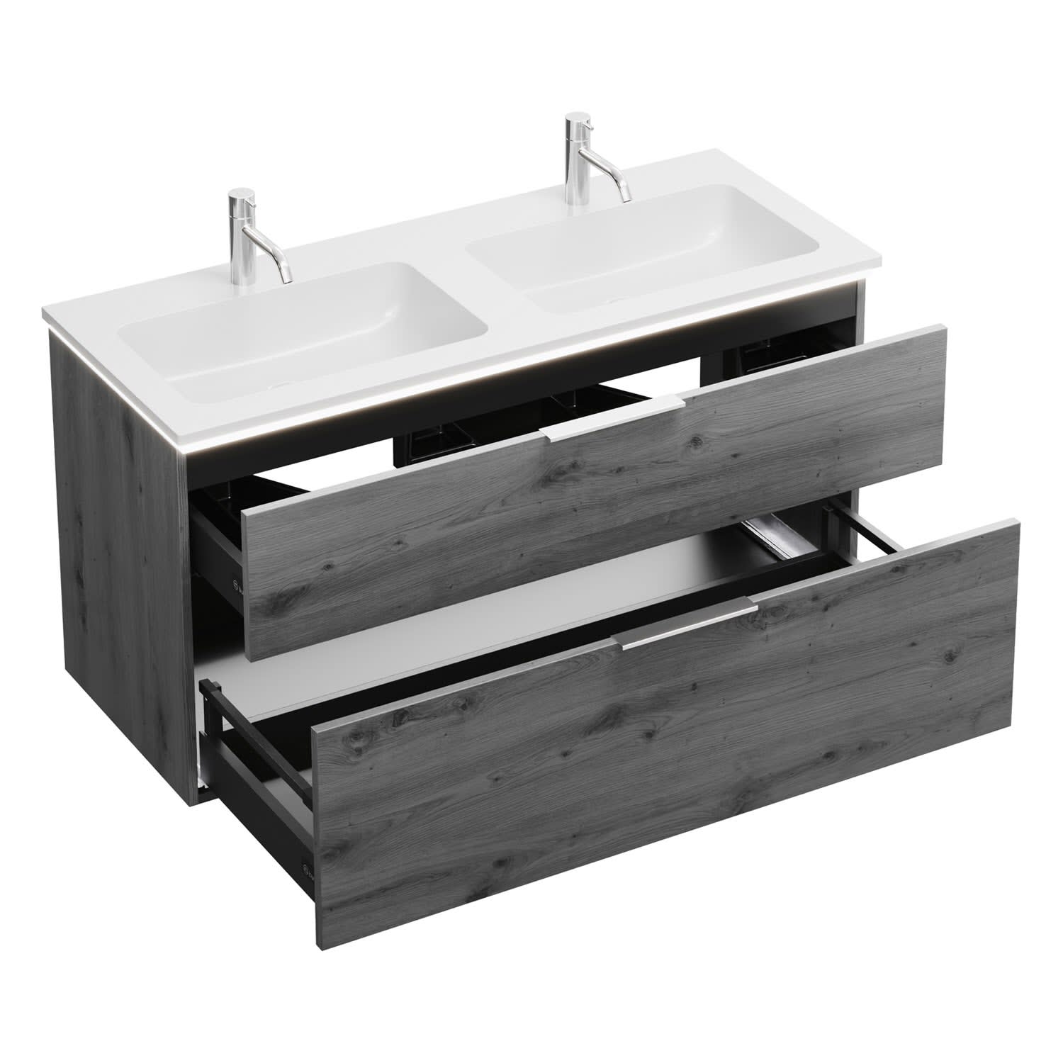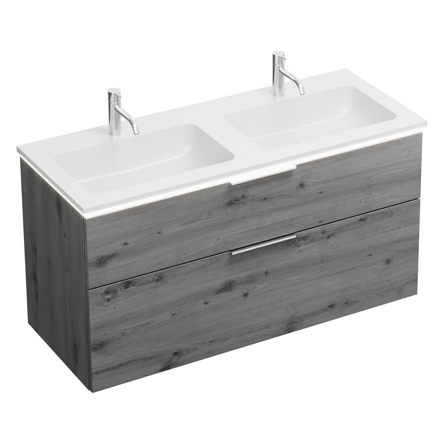 burgbad Eqio Waschtischkombination mit Mineralguss-Doppelwaschtisch und LED-Beleuchtung, 122 cm, mit Griff G0146
