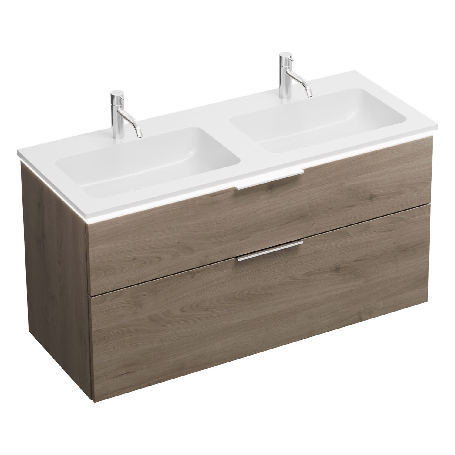 burgbad Eqio Waschtischkombination mit Mineralguss-Doppelwaschtisch und LED-Beleuchtung, 122 cm, mit Griff G0146