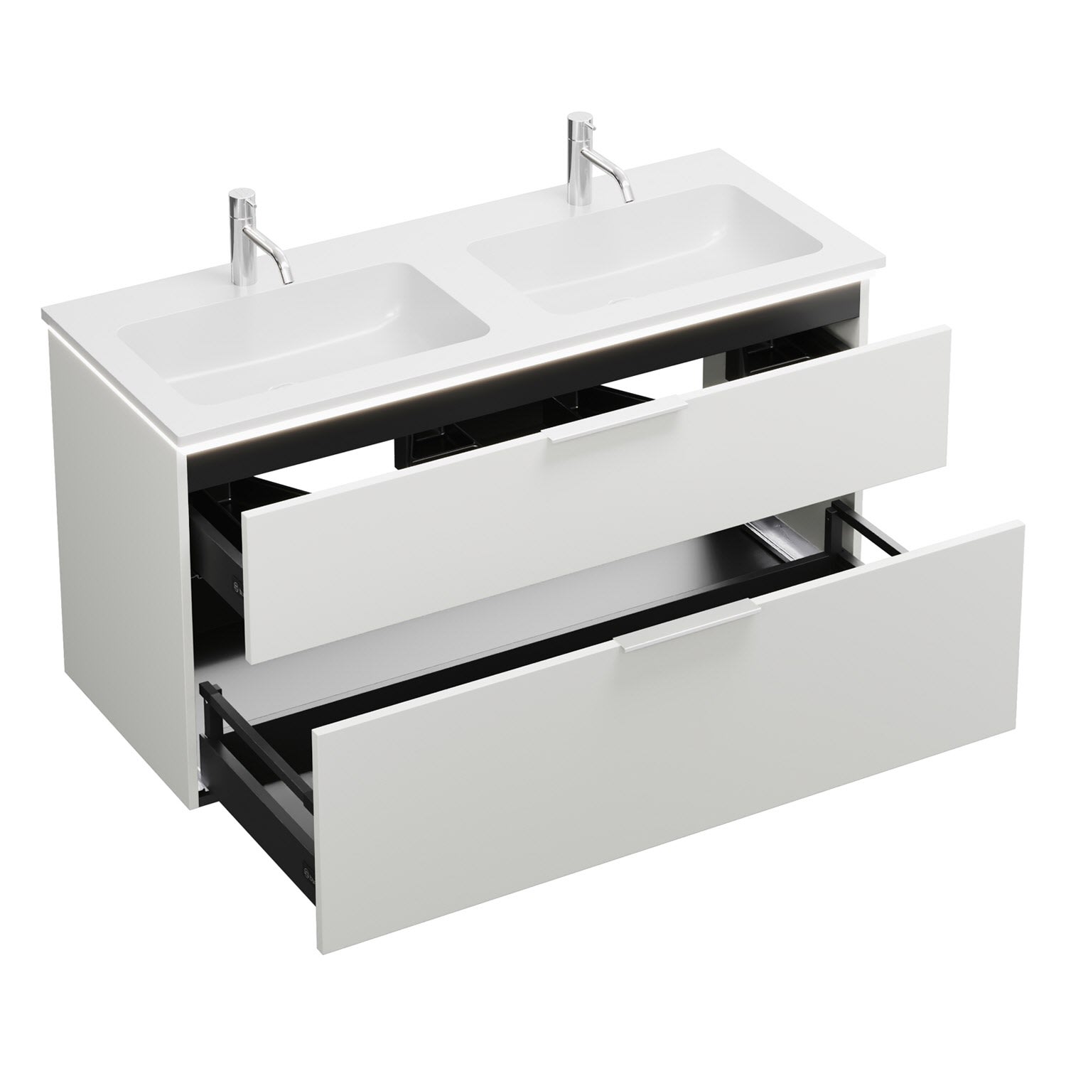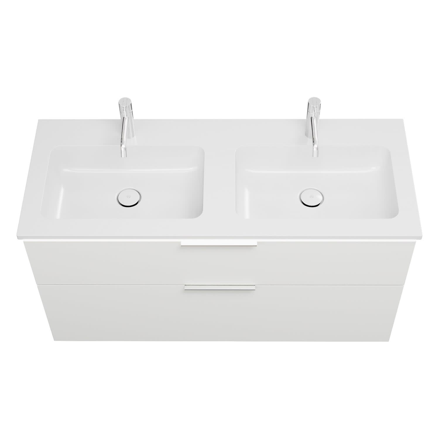 burgbad Eqio Waschtischkombination mit Mineralguss-Doppelwaschtisch und LED-Beleuchtung, 122 cm, mit Griff G0146