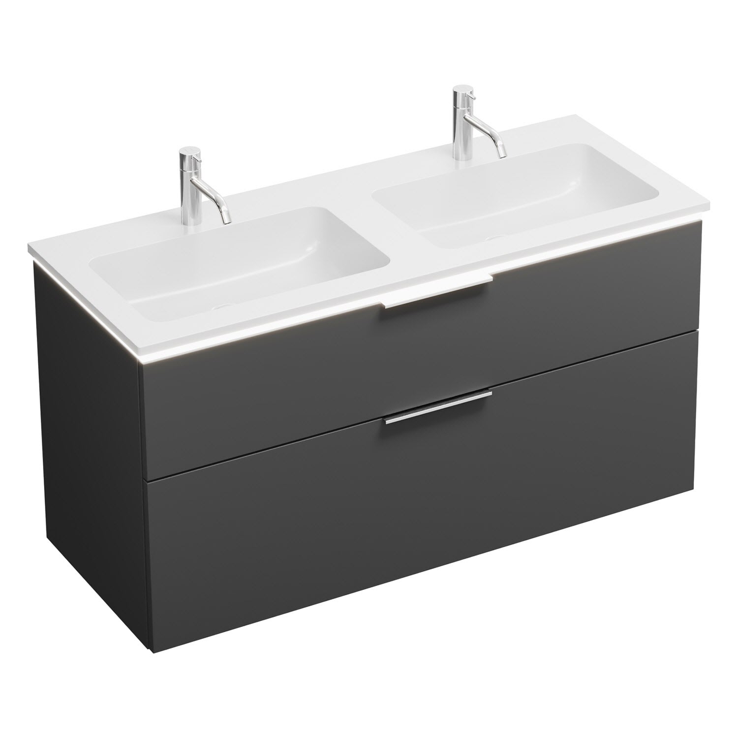 burgbad Eqio Waschtischkombination mit Mineralguss-Doppelwaschtisch und LED-Beleuchtung, 122 cm, mit Griff G0146