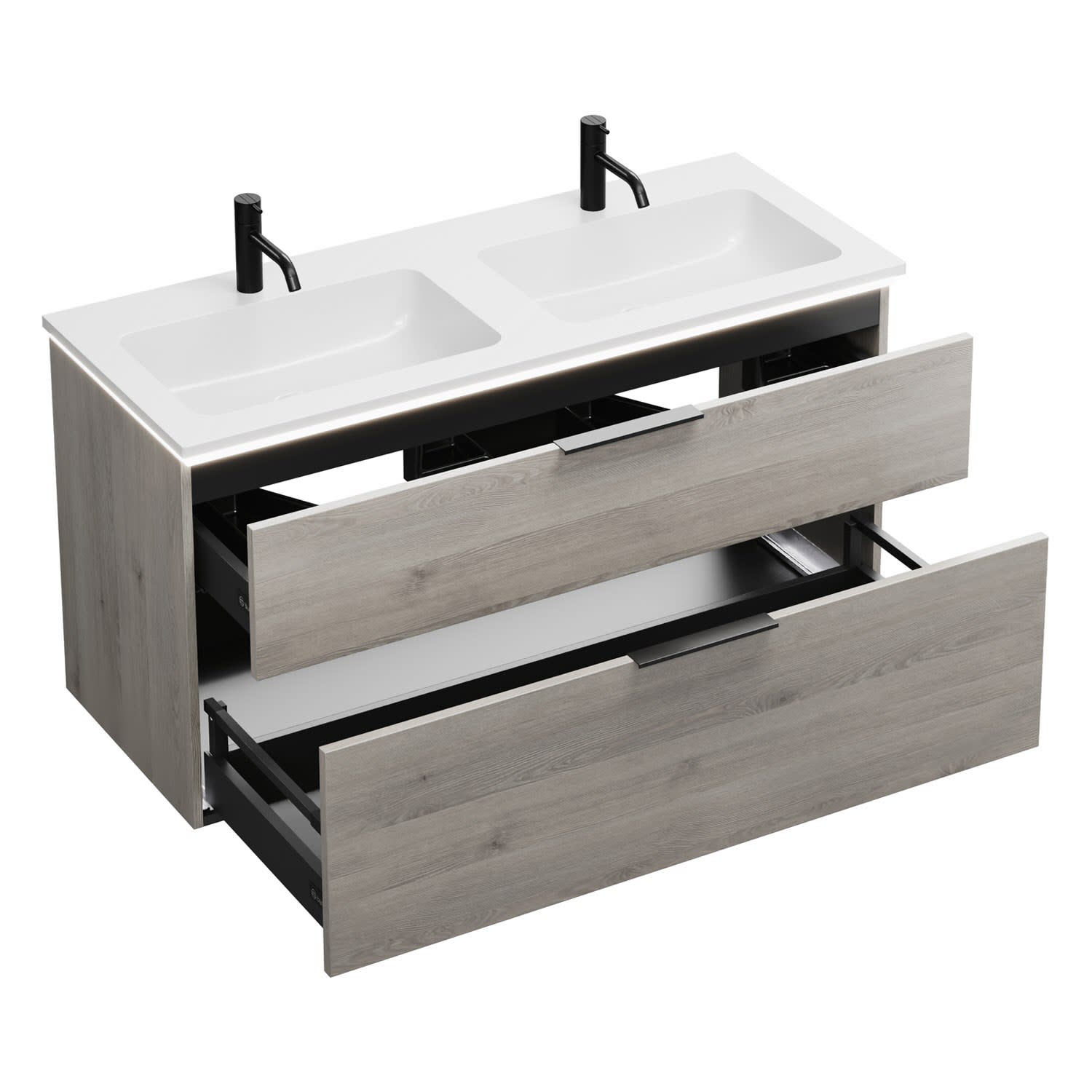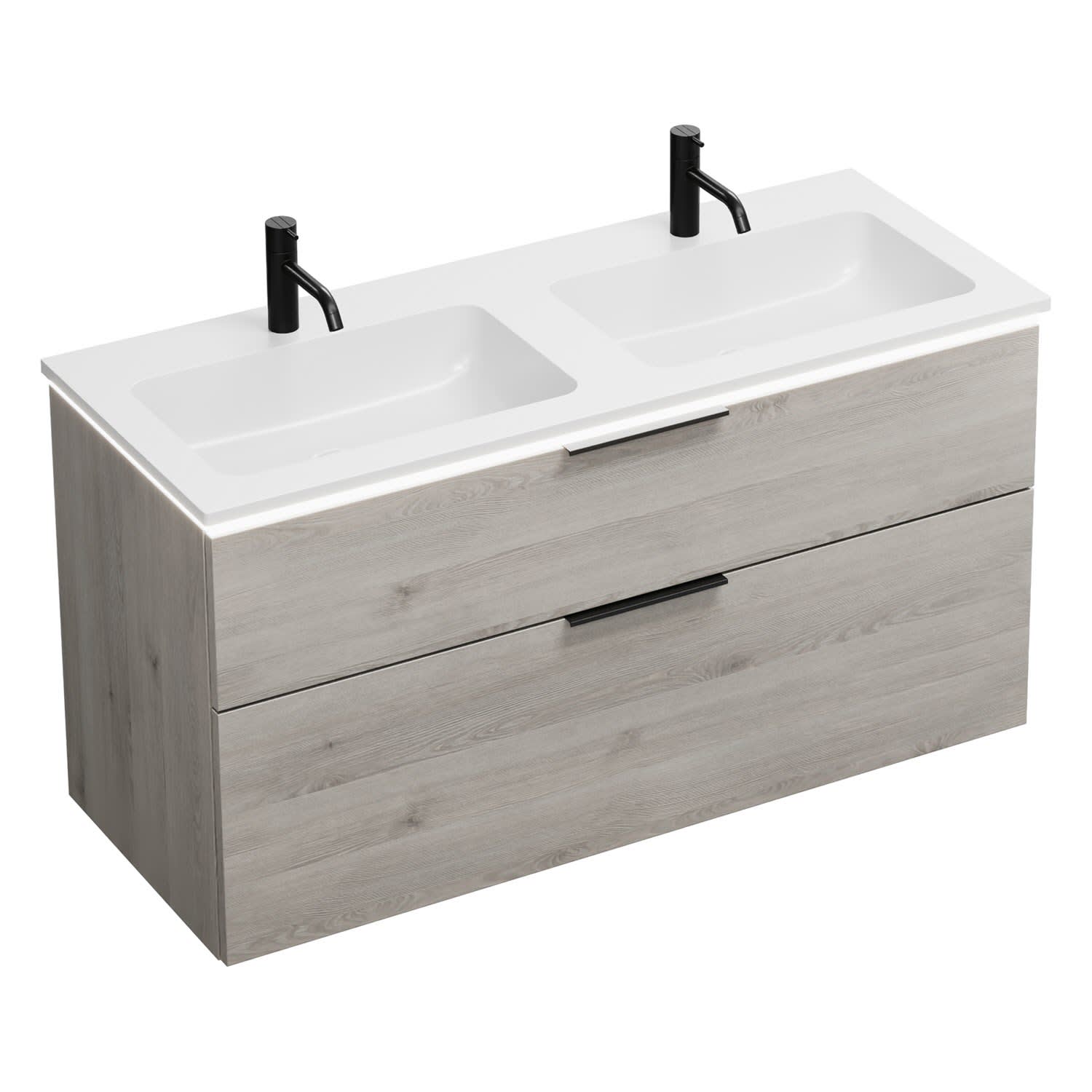 burgbad Eqio Waschtischkombination mit Mineralguss-Doppelwaschtisch und LED-Beleuchtung, 122 cm, mit Griff G0200