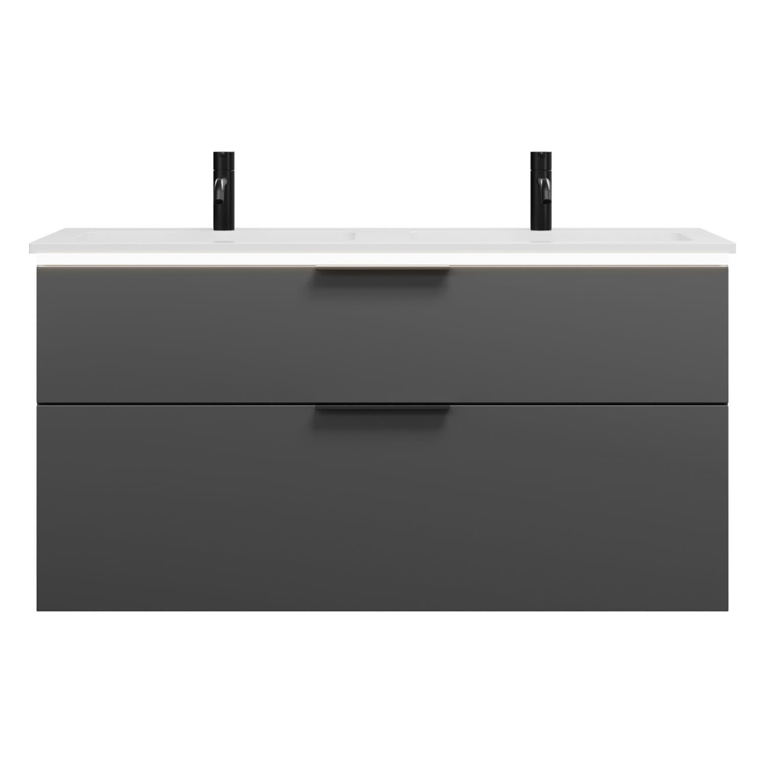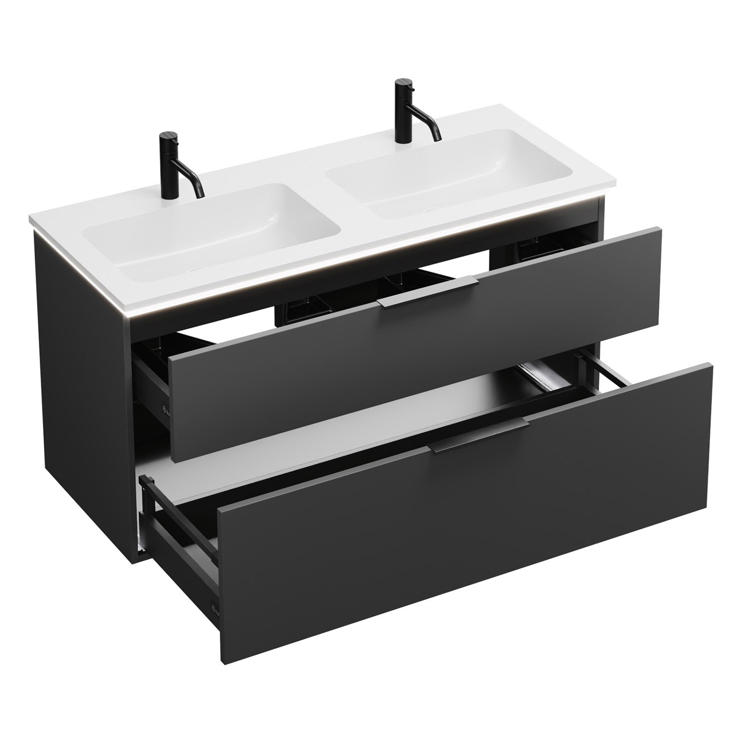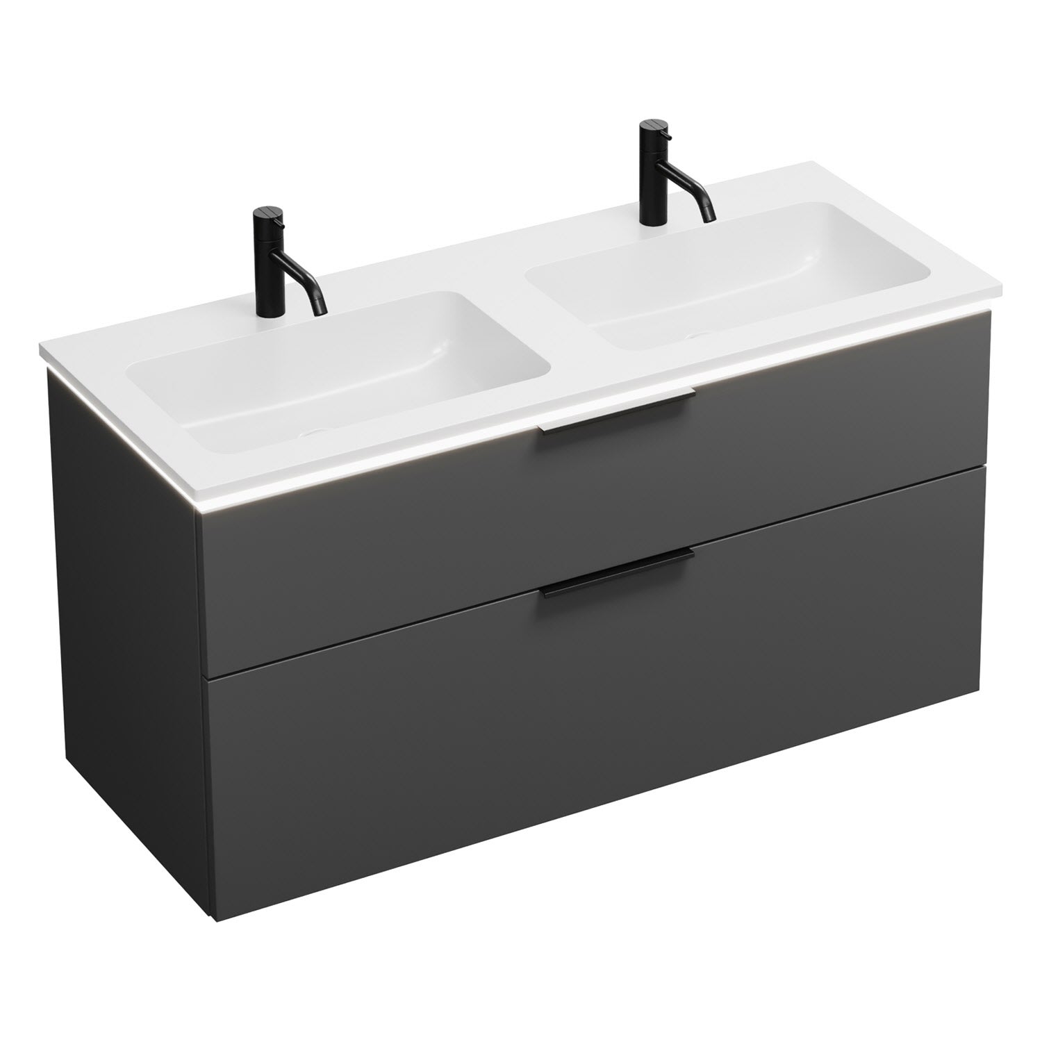 burgbad Eqio Waschtischkombination mit Mineralguss-Doppelwaschtisch und LED-Beleuchtung, 122 cm, mit Griff G0200