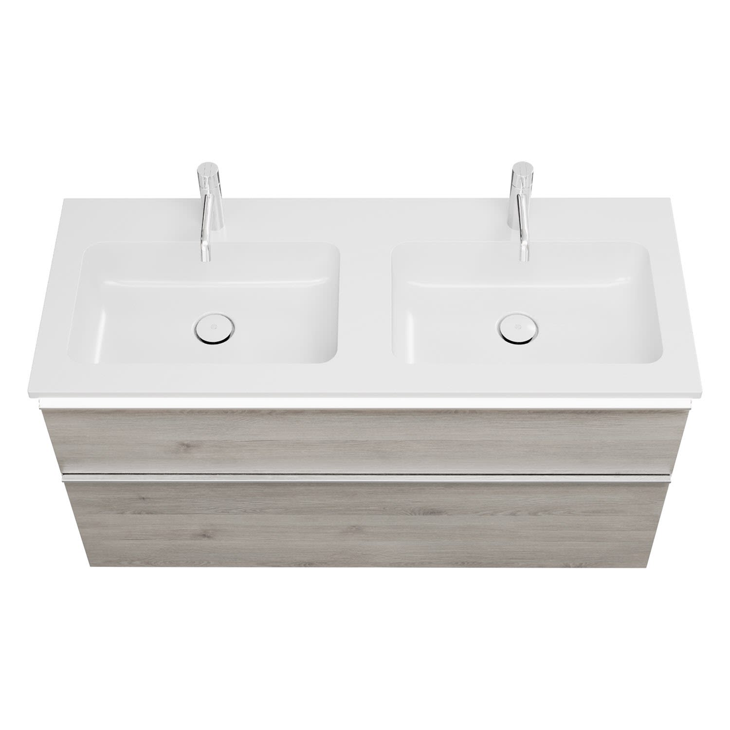 burgbad Eqio Waschtischkombination mit Mineralguss-Doppelwaschtisch und LED-Beleuchtung, 122 cm, mit Griffleiste G0251