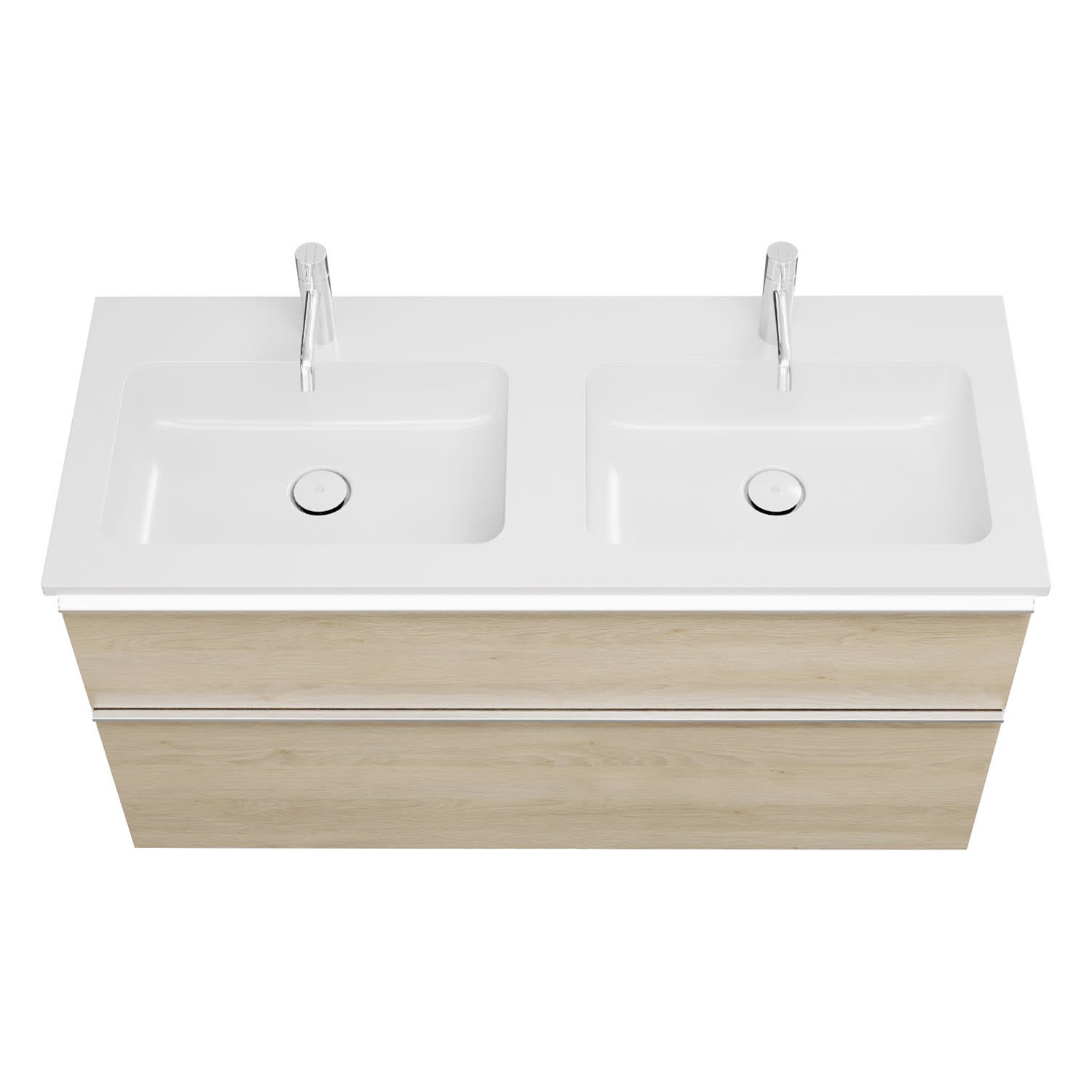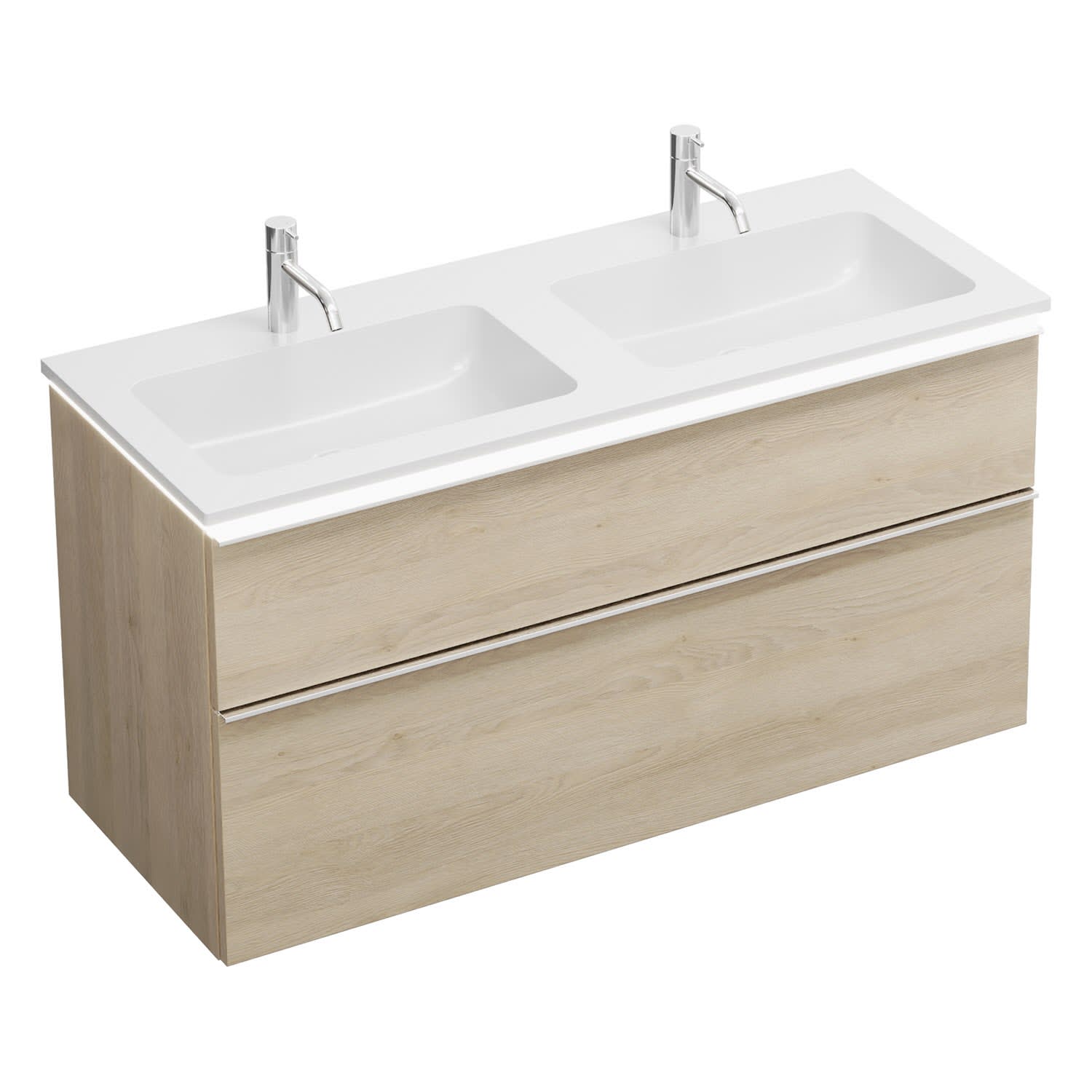 burgbad Eqio Waschtischkombination mit Mineralguss-Doppelwaschtisch und LED-Beleuchtung, 122 cm, mit Griffleiste G0251