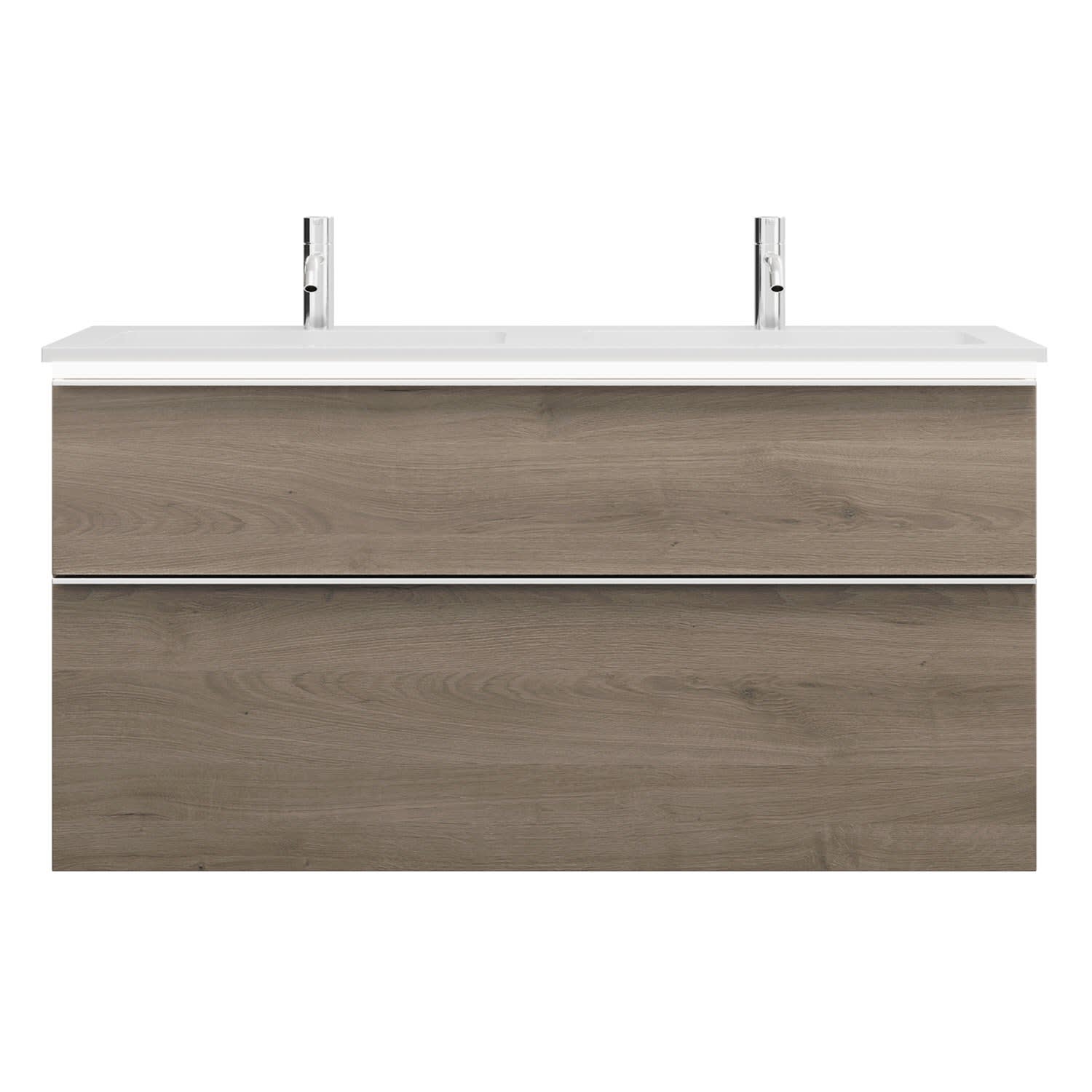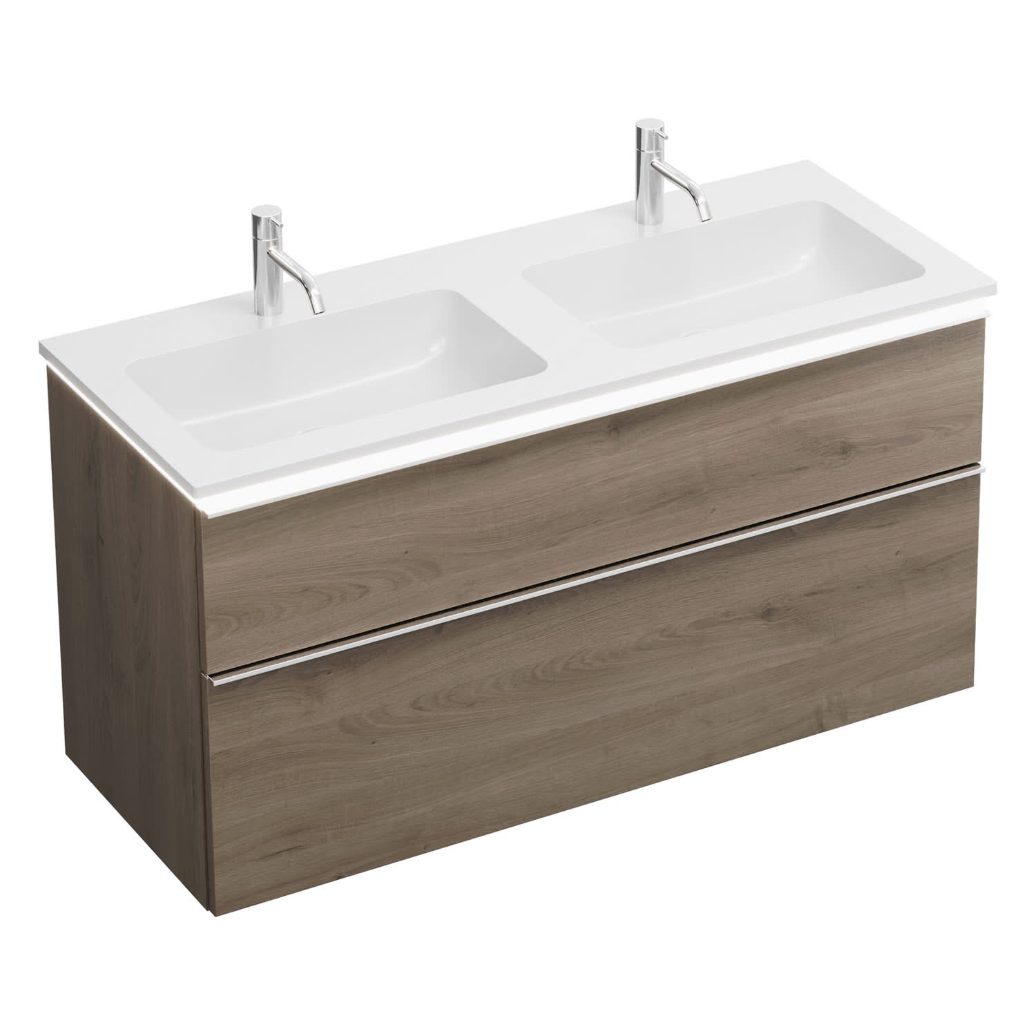 burgbad Eqio Waschtischkombination mit Mineralguss-Doppelwaschtisch und LED-Beleuchtung, 122 cm, mit Griffleiste G0251