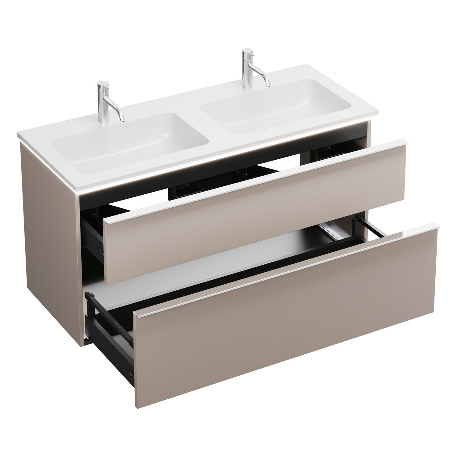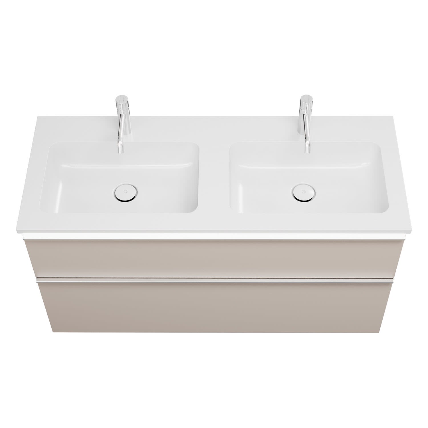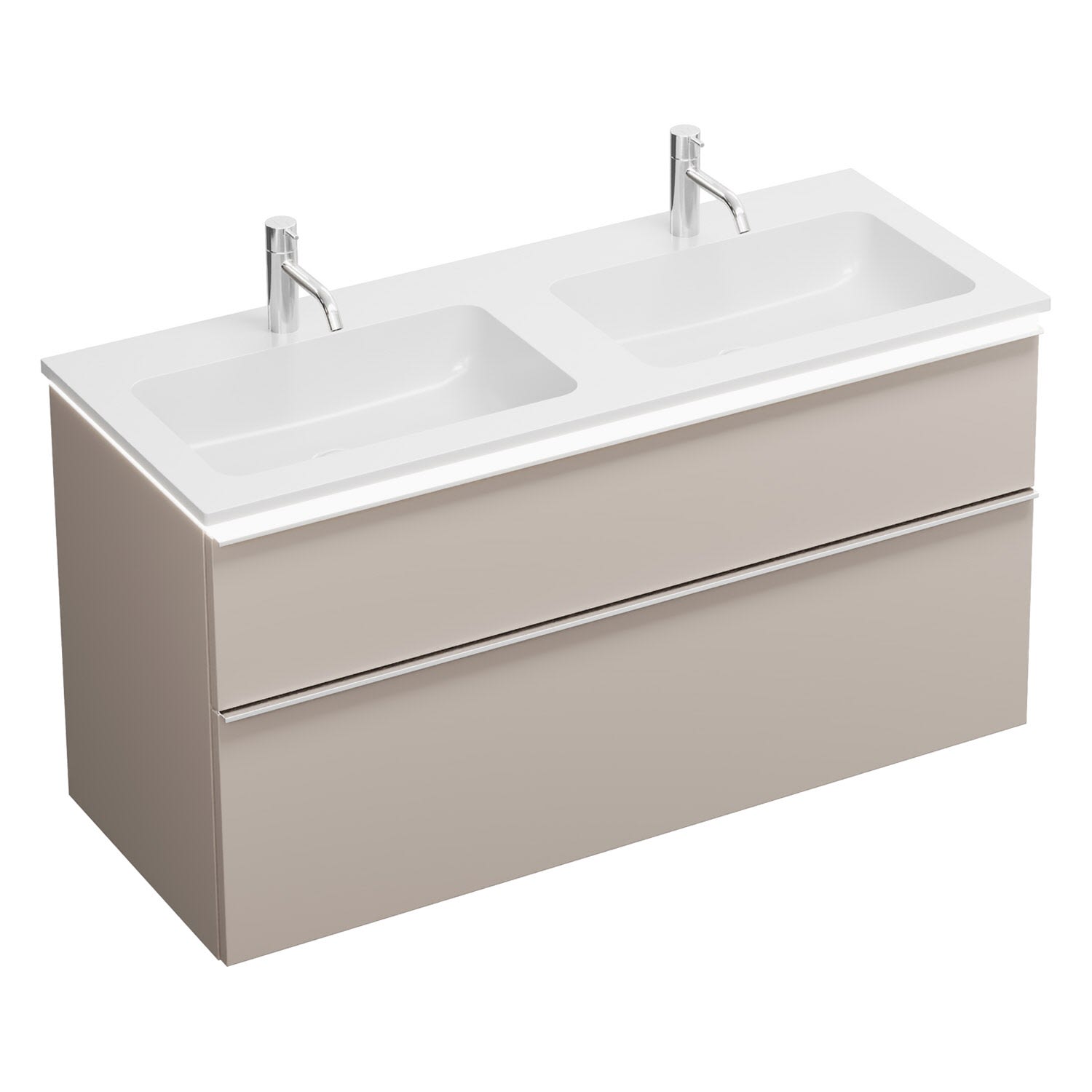 burgbad Eqio Waschtischkombination mit Mineralguss-Doppelwaschtisch und LED-Beleuchtung, 122 cm, mit Griffleiste G0251