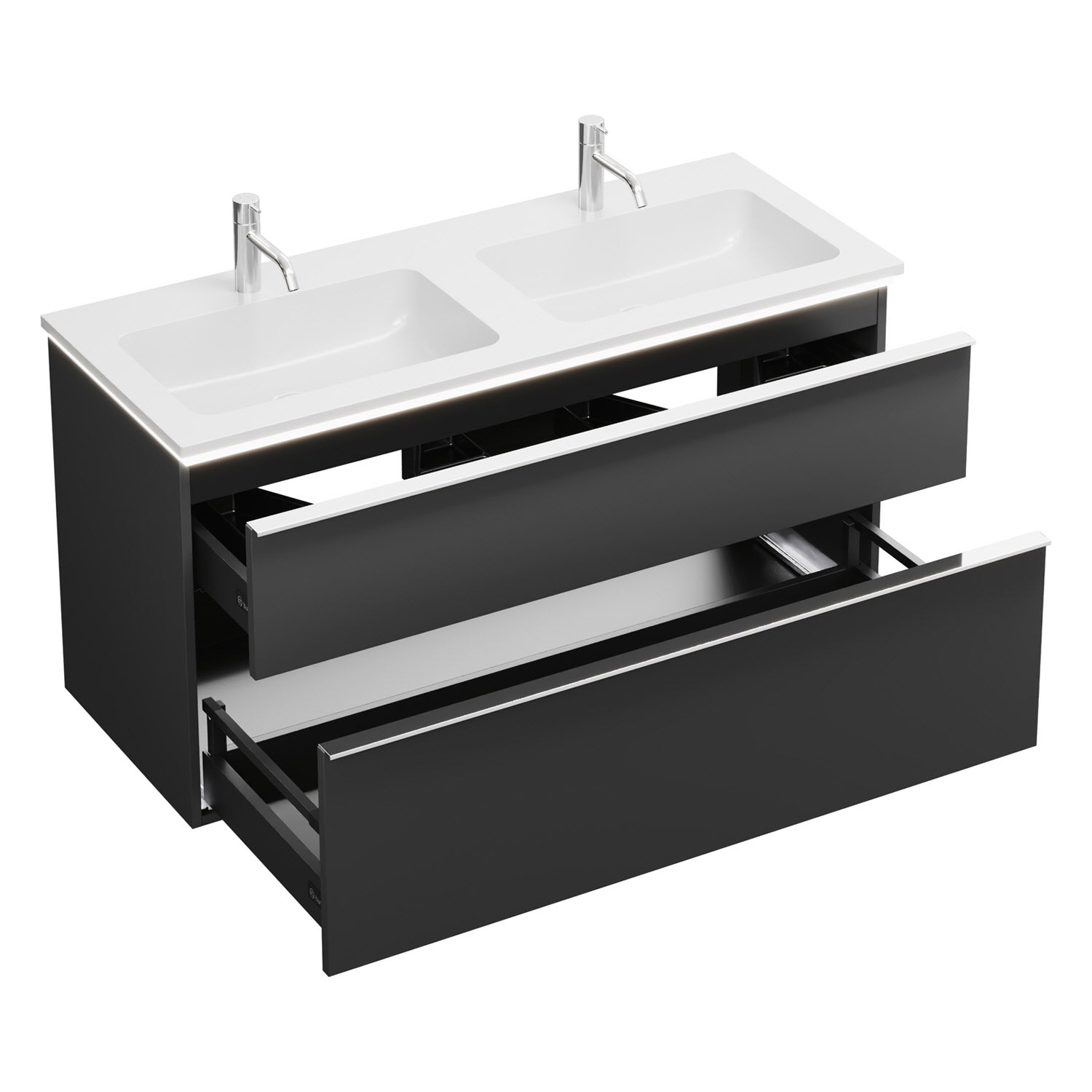 burgbad Eqio Waschtischkombination mit Mineralguss-Doppelwaschtisch und LED-Beleuchtung, 122 cm, mit Griffleiste G0251