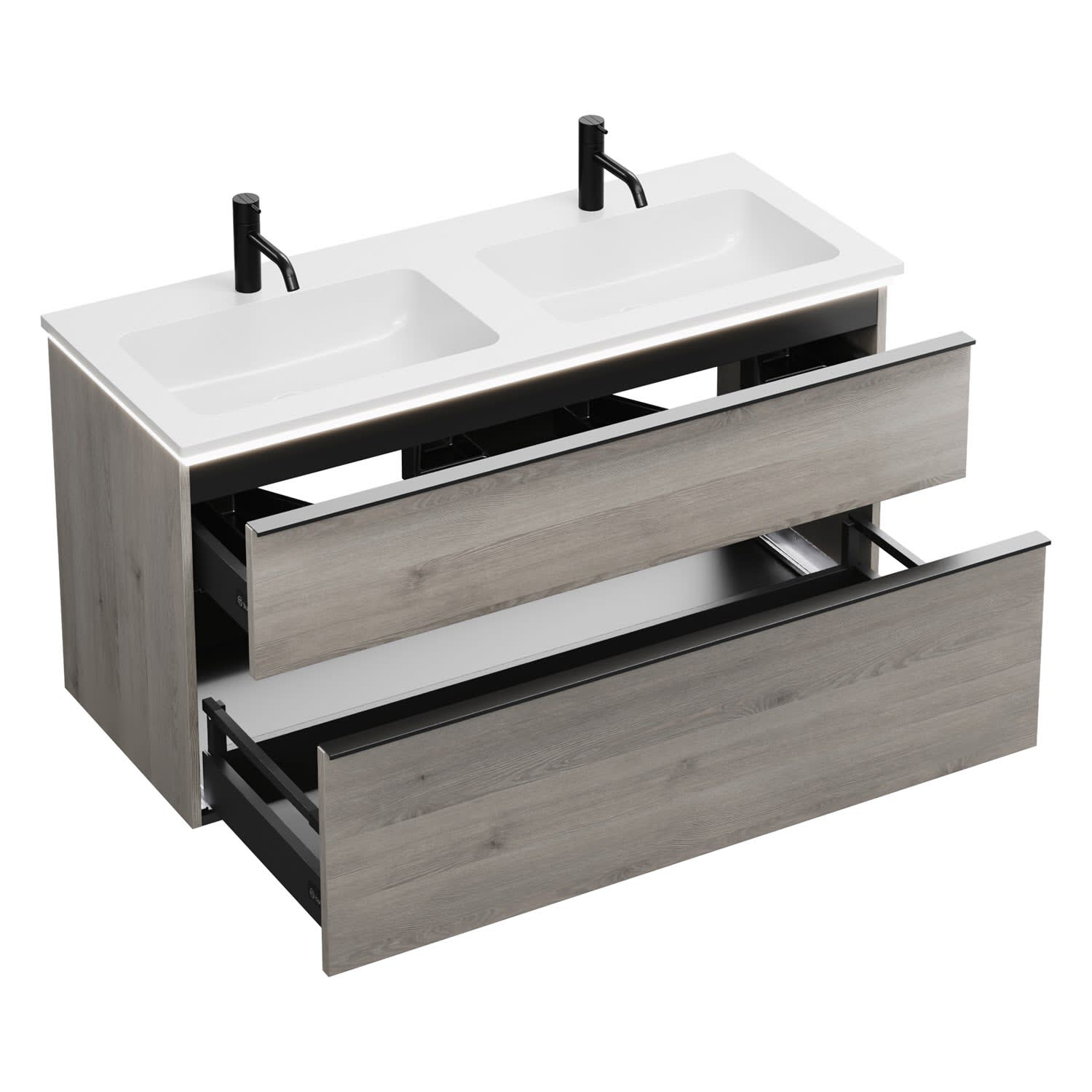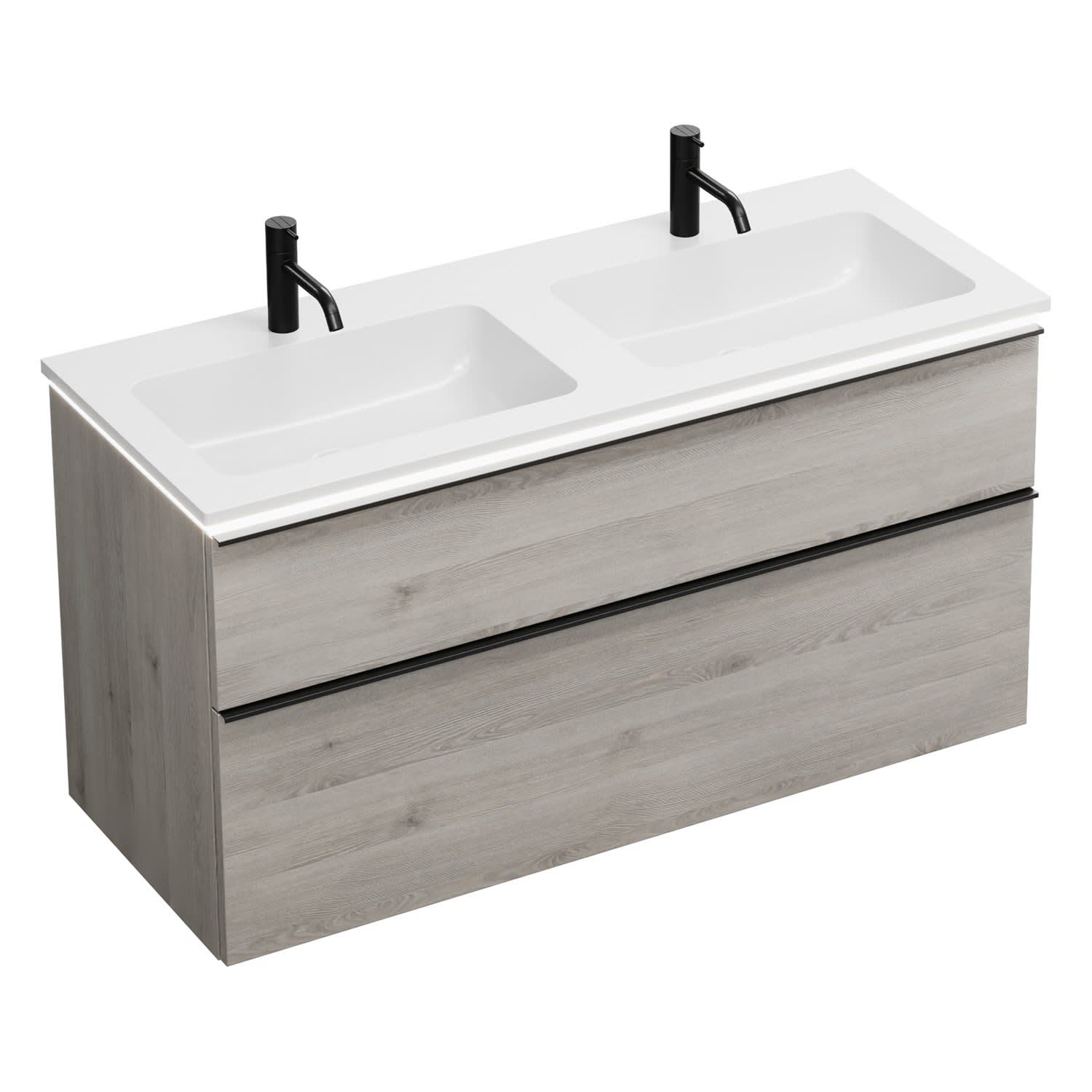 burgbad Eqio Waschtischkombination mit Mineralguss-Doppelwaschtisch und LED-Beleuchtung, 122 cm, mit Griffleiste G0252