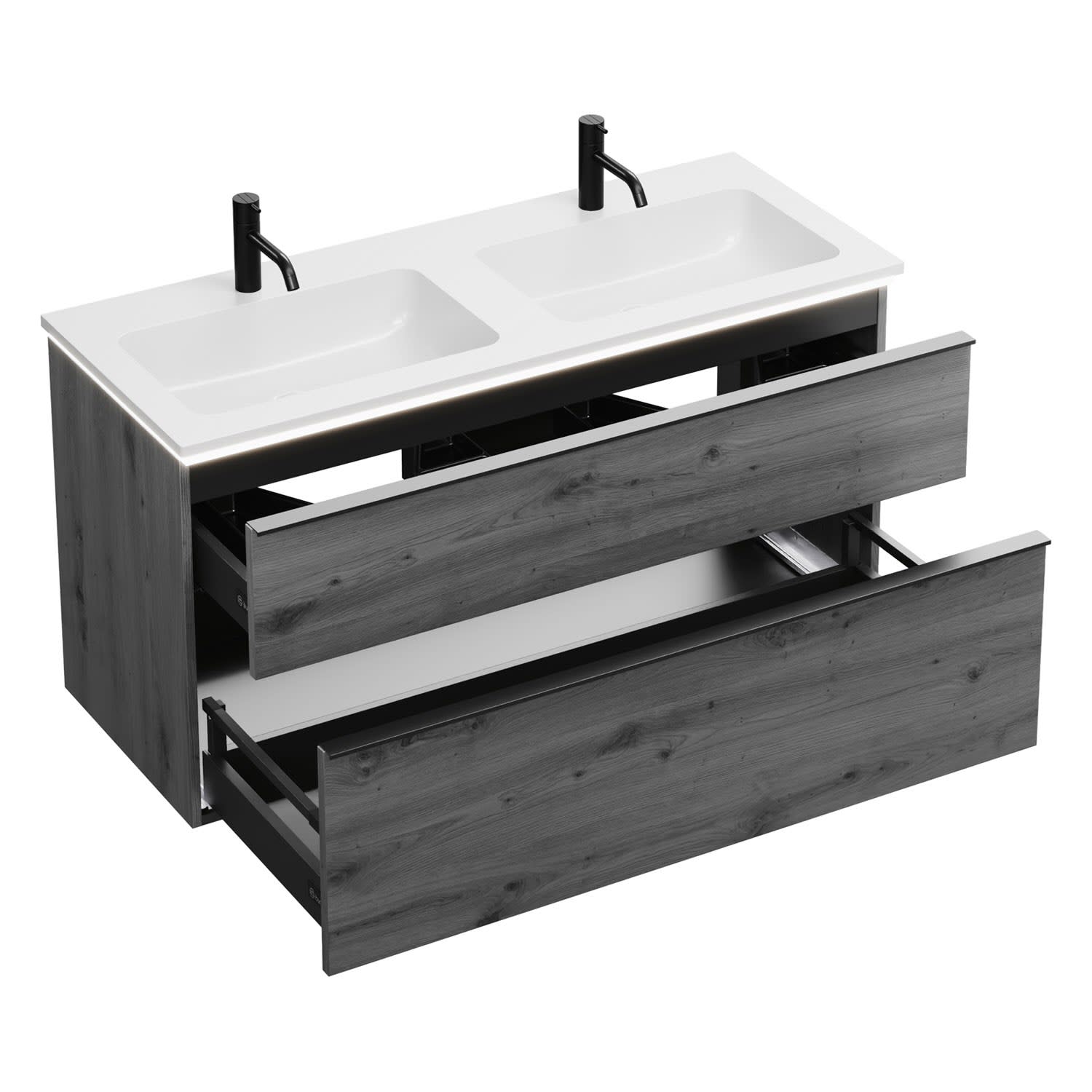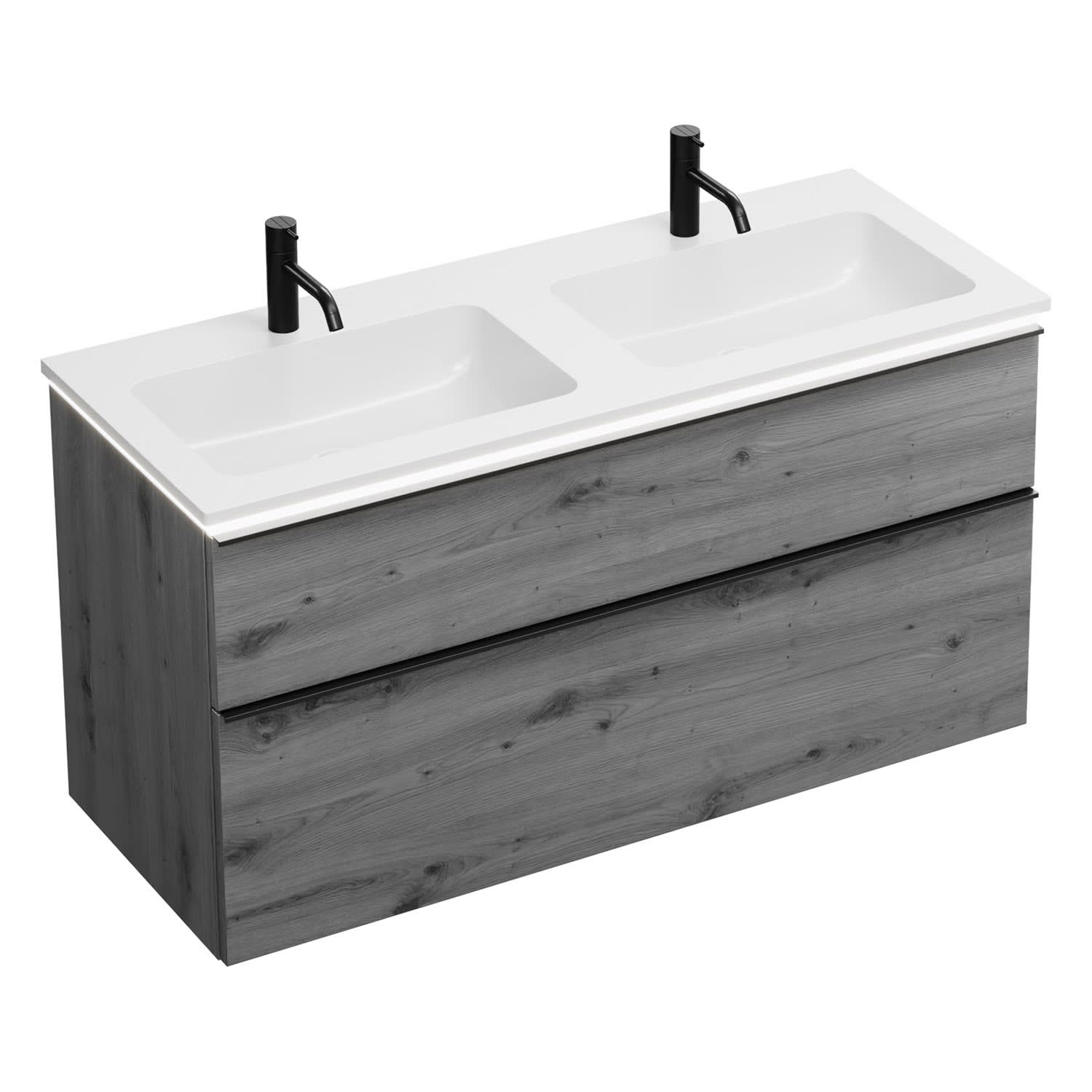 burgbad Eqio Waschtischkombination mit Mineralguss-Doppelwaschtisch und LED-Beleuchtung, 122 cm, mit Griffleiste G0252