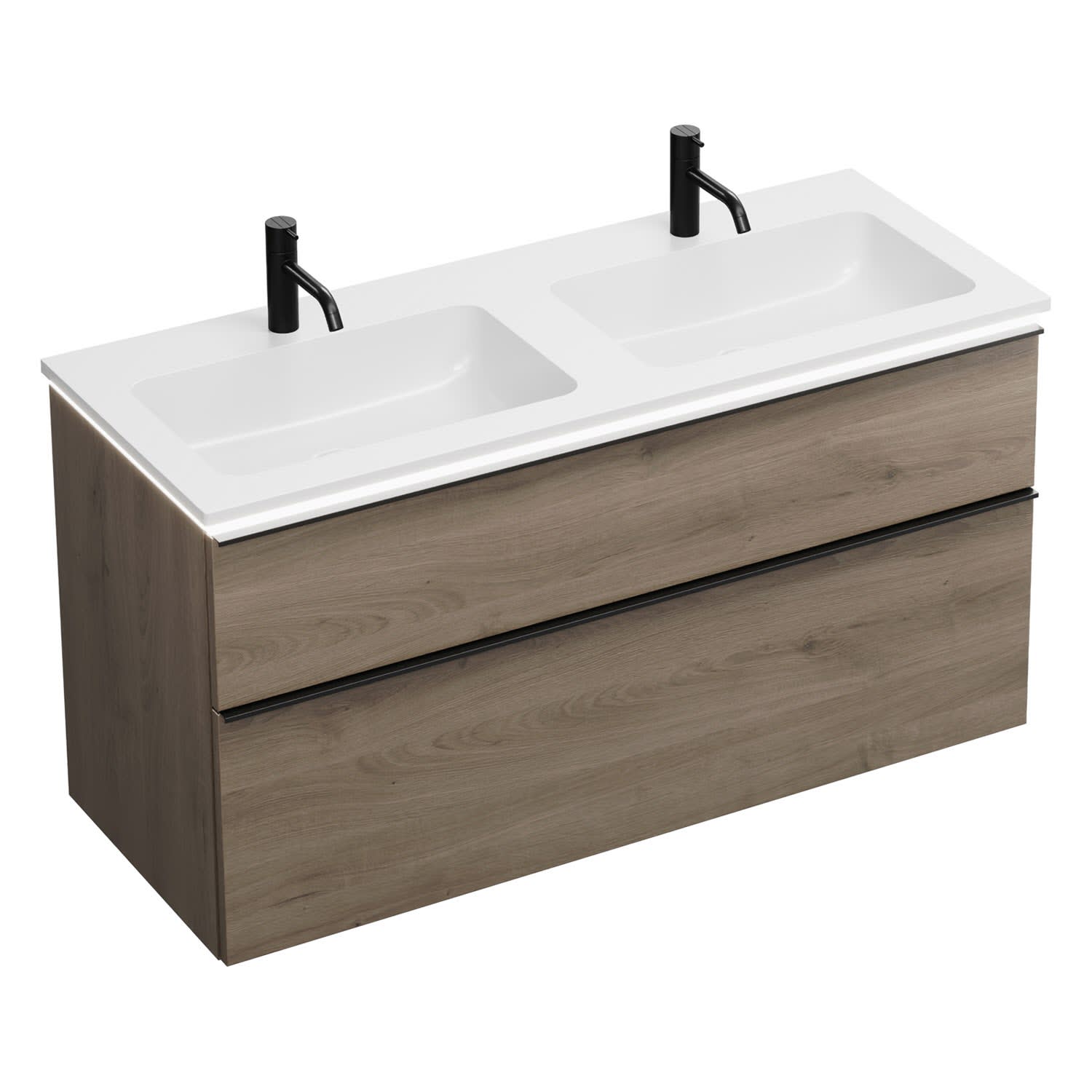 burgbad Eqio Waschtischkombination mit Mineralguss-Doppelwaschtisch und LED-Beleuchtung, 122 cm, mit Griffleiste G0252