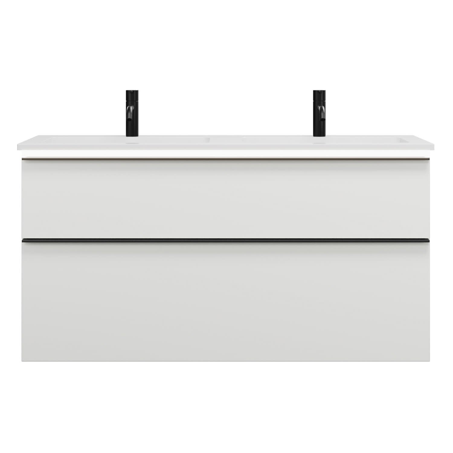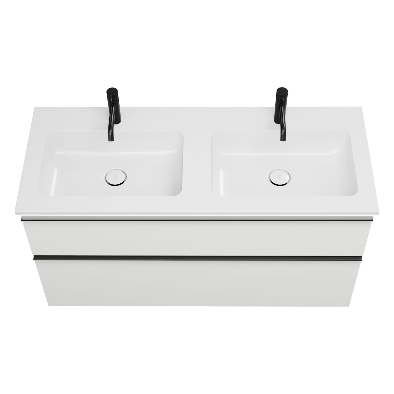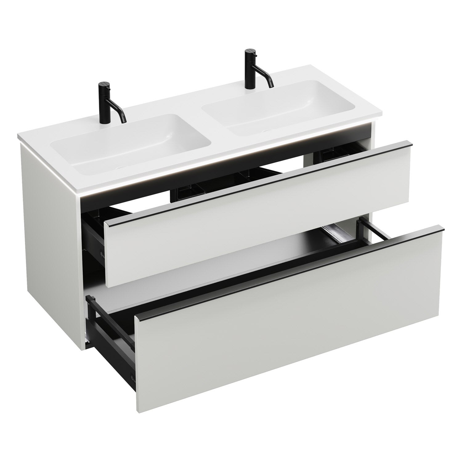 burgbad Eqio Waschtischkombination mit Mineralguss-Doppelwaschtisch und LED-Beleuchtung, 122 cm, mit Griffleiste G0252