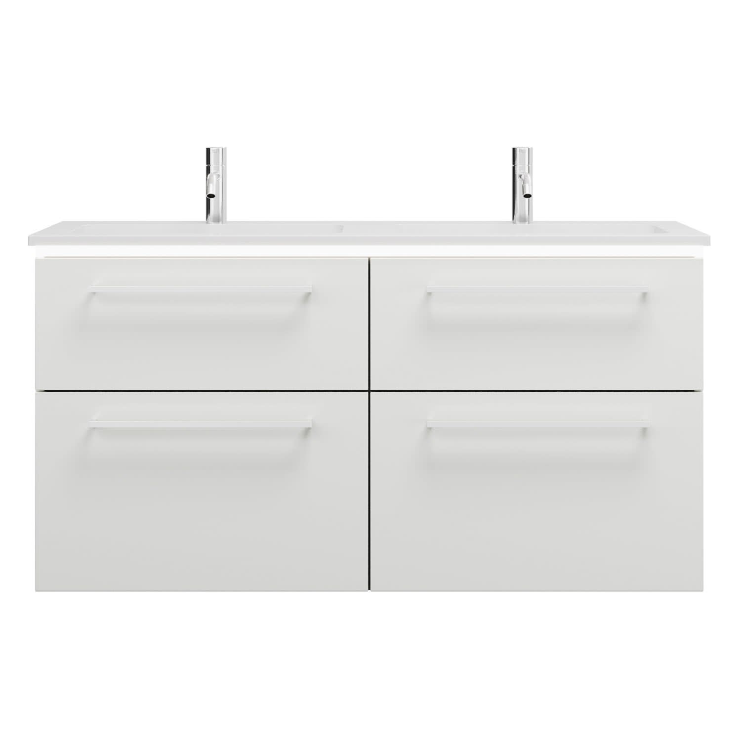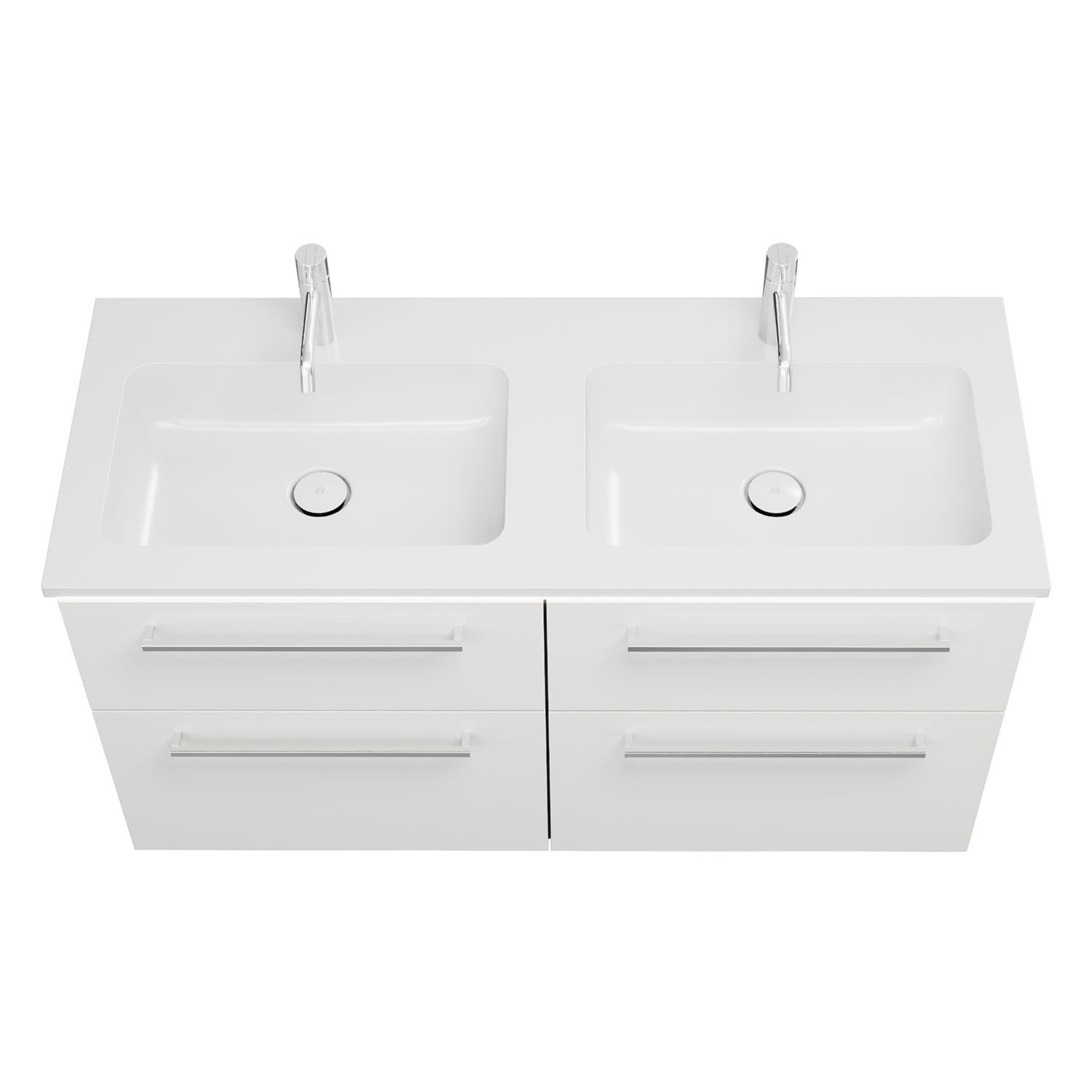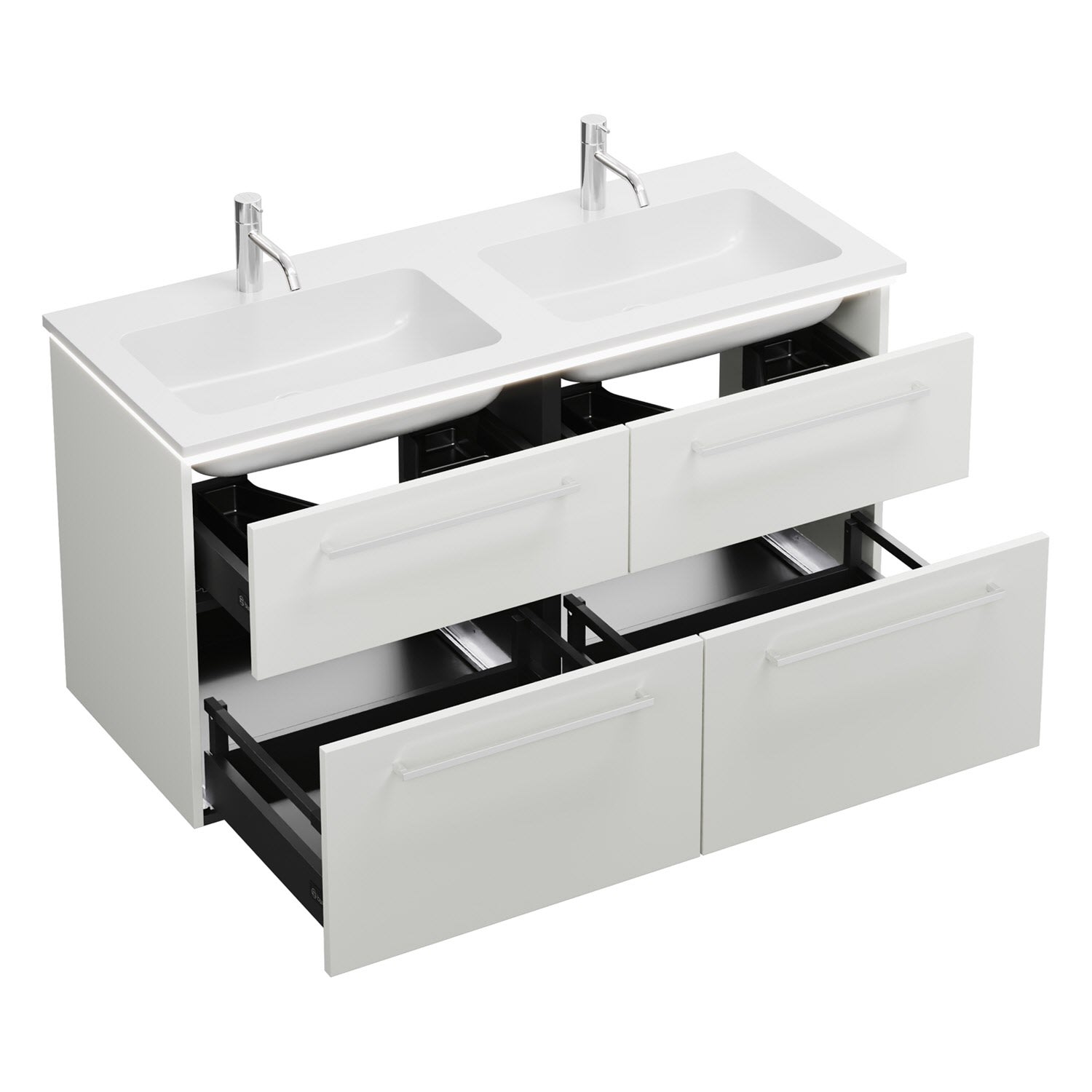 burgbad Eqio Waschtischkombination mit Mineralguss-Doppelwaschtisch und LED-Beleuchtung, 122 cm, mit Stangengriff P95